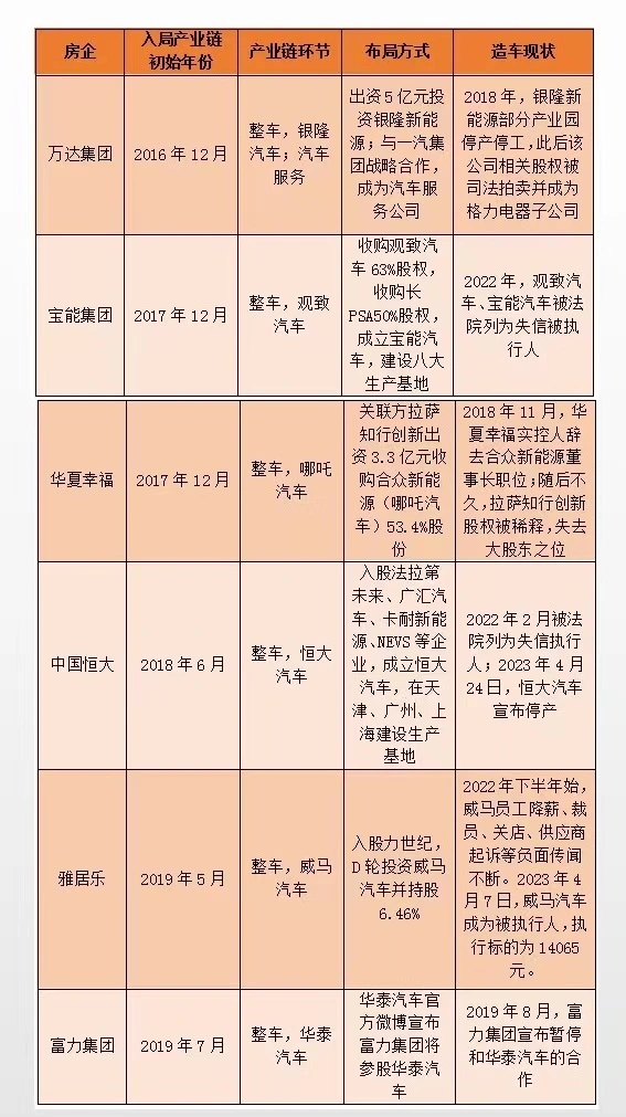 本文泉源:期间周报 作者:黄婧 孙华秋 一则不太起眼的消息,将静默许久的观致汽车再一次拉回大众面前。 天眼查公开信息表现,克日,观致汽车有限公司再被实验2523余万元,如今被实验金额已超10.3亿元。别的还存在多个失信被实验人(老赖)、限定斲丧令及终本案件信息,未推行总金额超3.2亿元。 2017年12月,宝能团体公布入股观致。2018年1月,用66.3亿元拿下观致汽车51%股份,得到其控制权,今后正式进入汽车行业。姚振华还曾公开表态在观致汽车上投入了高出500亿元,并表现要用10到15年的时间将宝能汽车打造成具备强大影响力的团体,操持到2022年推出26款新车型。根据宝能汽车当时的规划,除主流品牌观致以外,宝能汽车还操持推出高端智能电动车品牌“BAO”和小型纯电动品牌“悠宝利”。 时间来到2023年,这一巨大愿景照旧没能终极告竣。 2021年,观致汽车整年销量从2018年顶峰时期的6.32万辆下跌至5200辆。之后欠薪、停产、生产装备被拍卖等关键词充斥在观致汽车最新资讯中,而观致离高端汽车这一愿景也越来越远。 陨落的造车梦 宝能汽车讨薪事故仍在发酵。 “2021年6月到2022年4月不绝没有发工资,到2022年4月又开始零零星散地补一些。之后2022年9月至今也只发过半个月工资。”靠近宝能汽车高层的员工徐明(化名)向期间周报记者表现。 4月18日下战书左右,宝能汽车多名在职员工聚集在位于深圳宝能科技园2楼的宝能汽车团体实验总裁陆幸泽办公室门口。 “原来让陆幸泽跟各人谈,但是他不出来,不绝在办公室。”徐明告诉期间周报记者。无奈之下,员工们写下诉求,数十名员工一同具名画押提交给上层。 别的,另一名宝能汽车团体在职员工张君告诉期间周报记者,4月上旬,包罗宝能汽车贩卖在内的宝能团体各个业务版块的员工也多次来到宝能科技园盼望能讨回自己的工资。 “如今各人都是在‘演出式办公’。”上述两位宝能汽车员工均表现,如今手上的业务均已停滞,他们一边来到办公室打卡,一边忙着求职口试。 据张君透露,2021年4、5月份,宝能汽车团体员工规模大概有两万多人。而制止2023年5月5日,公司内部体系上表现的在职员工降至千余人。 记者查阅了天眼查中西安宝能汽车有限公司2021年年度陈诉,该公司2021年度社保在缴人数也只有5人。 毕竟上,不止宝能汽车,整个“宝能系”的活动性依然堪忧。据期间周报记者3月25日统计,旗下各家子公司共计成为被实验人1198次,成为失信被实验人493次。此中深圳市宝能投资团体有限公司被实验总金额为387亿元,宝能控股(中国)有限公司被实验总金额为216亿元,钜盛华被实验总金额为250亿元。 活动性困局下的宝能汽车如同缺血的困兽。 固然在2023年2月3日,宝能汽车团体还在开工动员大会上表现:将“尽力保障A3、GX16、A三款重点车型量产。”在徐明看来,开工大会消息的发布意在向外界转达,宝能还在办事。“但着实宝能的汽车根本没有用心做,焦点技能和研发都缺乏。” 张君也举了个例子,2022年9月21日,宝能汽车团体召开旗下“悠宝利汽车”首届经销商相助搭档大会,在现场发表新品牌“悠宝利”并发布了小型电动车悠宝利A3。悠宝利A3车型被不少网友吐槽与五菱宏光miniev神似。 毕竟上,张君透露,悠宝利汽车零部件供应商约莫有三分之一与五菱是同一个供应商,“有的零件直接把五菱标换成悠宝利的。” 房企造车滑铁卢 2015年以来,随着蔚来、理想、小鹏等造车新权势发展渐见转机,多家房企连续入局新能源汽车产业链投资,部分房企乃至直接了局造车。 据公开数据梳理,2018—2019年是房企大规模涉足新能源汽车产业链的高峰期,恒大汽车就宣称投资规模超3000亿元,而宝能布局新能源汽车预计总投资规模亦近1000亿元。 不外,房地产与新能源汽车的联合属于跨界策划,始终存在肯定的行业壁垒,因而直接试水造车的房企并不多,多以财务投资加入为主,围绕上鄙俚产业链睁开相助。 大型房企更热衷于整车制造环节,好比万达、中国恒大、中原幸福、宝能、雅居乐、富力均在造车产业链有布局,恒大和宝能更是斥巨资了局直接造车。 中国恒大在2018年财报指出,要力图3至5年成为天下规模最大、力气最强的新能源汽车团体,操持三年内实现50万至100万辆的产能建立。恒大汽车在2020年业绩发布会时曾表现,公司已累计投入474亿元,在天津、上海、广州建立智能工厂。 宝能则在2017年创建宝能汽车,2018年初斥资66.3亿元正式入驻观致汽车,操持连续5年每年投资100亿用于新产物研发;并在多地建立新能源汽车生产基地。 相较于直接造车,绿地、合生创展、新城控股、融创中国、碧桂园、保利地产、冠城大通、台甫城、万通地产、海印股份等房企则通过切入动力电池、充电桩、经销商、汽车服务、产业园等范畴,布局新能源汽车产业链的上游和鄙俚环节。 现实上,曾经高调入局汽车行业的万达也在近期沉寂退出。天眼查公开信息表现,万达汽车科技服务有限公司发生工商变动,企业名称变动为泰庆(珠海)汽车科技服务有限公司,大连万达团体股份有限公司退出股东行列,新增股东山东泰岳实业团体有限公司。 变动后,公司现股东为山东泰岳实业团体有限公司和泰庆(北京)科技有限公司。这也意味着,连续十八个月的万达“造车梦”,终究是破裂了。 4月24日,恒大汽车也在公告中披露,因资金不敷,天津工厂暂缓生产恒驰5。 如