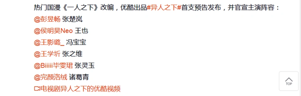 哈喽,各人好,我是木子。 《一人之下》真人剧如今已经放出了首支预告,从这次放出的预告来看剧情还原度做得非常不错,无论是一些剧情的还原还是人物殊效的制作都是相称精彩,与此同时关于这部真人剧的主演阵容也是曝光了,那么接下来就跟着木子一起来看看吧。 一人之下真人剧主演阵容曝光根据这次放出的《一人之下》真人剧首支预告来看,《一人之下》真人剧的主演阵容已经曝光了,他们分别是彭昱畅扮演张楚岚,侯明昊扮演王也,王影璐扮演冯宝宝, 王学圻扮演张之维,毕雯珺扮演张灵玉以及完颜洛绒扮演诸葛青。 从演员的造型来看,大部分的演员都是按照动漫和漫画的模子举行设定,而且衣服也都是相称还原。从这点可以看出这部真人剧应该是会按照原著漫画举行制作,不会像是《斗罗大陆》真人剧那样挂羊头卖狗肉,以是各人可以等候一下。 别的从这次放出的预告内容可以看出这次真人剧可以或许做到那里,木子推测大概是会做到罗天大醮为止,之后的剧情应该必要比及下一部。罗天大醮的剧情相称精彩,这段剧情做得好的话可以吸引不少的粉丝,那么第二部就有大概继续制作。 对比动画还需优化假如提及漫改真人剧的话,那么各人最关心的标题肯定就是脚色还原度的标题,这里木子把真人剧的主演和动画的来举行对比一下。起首就是张楚岚,彭昱畅扮演的张楚岚固然说形象不太符合,但是从预告来看,彭昱畅的演技却好坏常的不错。 然后是王也,王也可以说是《一人之下》高人气的帅哥之一,固然说这次也是请来了侯明昊,但是侯明昊的体现却还是有些差能人意。在木子个人看来侯明昊扮演的王也少了一些王也的慵懒感,侯明昊的眼神则是显得更加热情了一些。 冯宝宝的扮演者是王影璐,这可以说是如今争议最大的一个脚色,毕竟冯宝宝的还原难度可以说好坏常的大。固然说王影璐扮演的冯宝宝团体还算可以,但是却没有冯宝宝的那种呆萌感,反而王影璐的造型显得更像是都市网红这类的一样。 在这内里还原度最高的当属王学圻扮演的张之维,王学圻但是老戏骨了,演技天然不消多说,而且王学圻扮演的张之维造型也是相称还原。只是痛惜如今电视剧饭圈化过于严峻,不少网友都更喜好流量明星,对于演技好的老戏骨却并不在意。 毕雯珺扮演的张灵玉业舯坫是可以,固然说没有动画的帅气,但是团体上来说业舯坫说的已往。不外完颜洛绒扮演的诸葛青就有些毁的太严峻了,原来诸葛青应该是一个阳光大男孩,效果真人剧内里的诸葛青硬生生的变成了一个折磨怪。 一些剧情难还原从这次放出的预告内容来看,这部真人剧的还原度非常不错,应该是不会有大幅度的魔改标题出现。不外在剧情上面也有一些剧情难还原,典范的就是张子凡的月下遛鸟名局面,这段剧情根本不大概还原出来,除此之外也另有一些剧情难还原。 不外从预告来看张子凡的爆衣做出来了,那么光腚侠这个剧情大概会做出来,而且冯宝宝的阿威十八式大概也会做出来。别的从预告内容来看殊效也做的非常不错,罗天大醮的比试也是经费满满,以是木子以为各人可以等候一下这部真人剧。 我是木子,一个喜好动漫的二次元宅,关注木子相识更多动漫资讯。【文/木子】 |