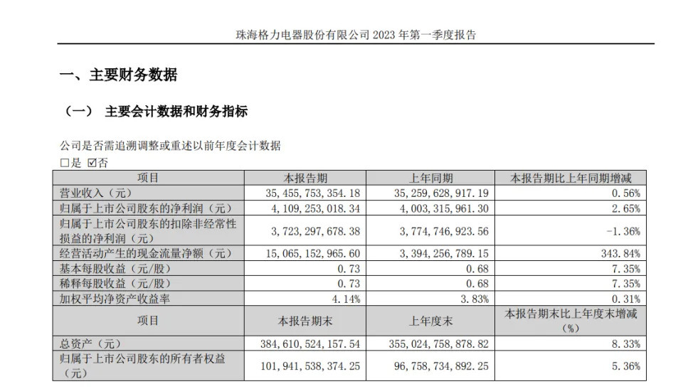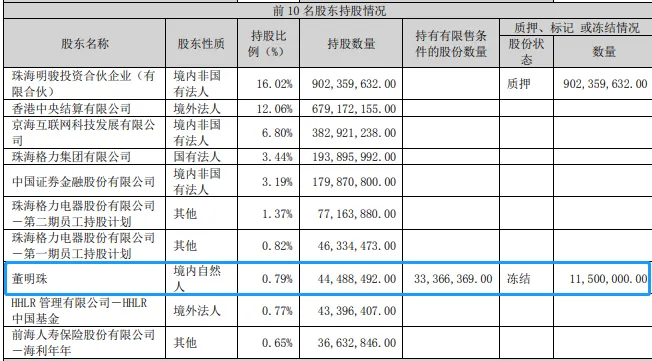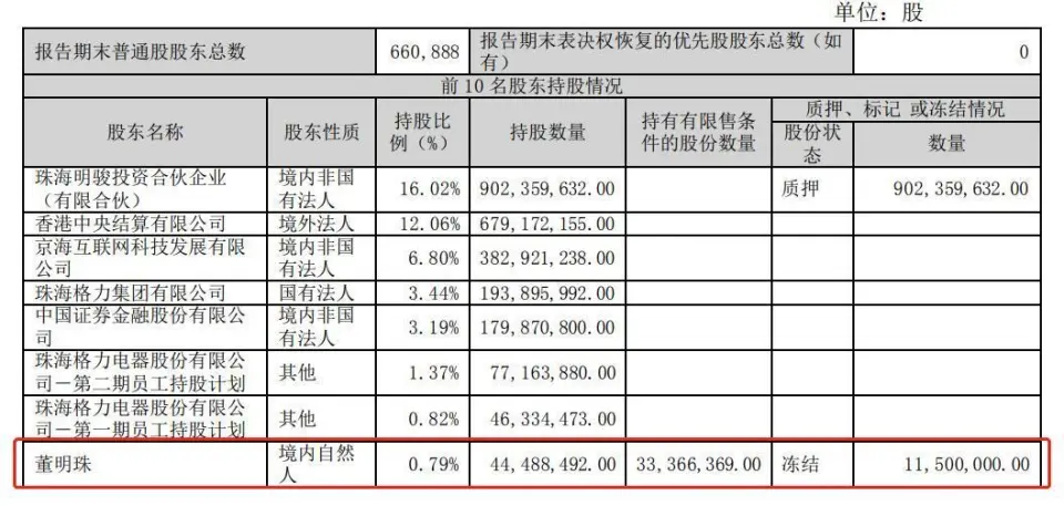 每经编辑:张锦河 5月5日,格力电器(SZ000651)公告称,公司于2023年4月29日披露了公司《2023 年第一季度陈诉》。经核查,因个别信息存在录入错误,误将制止陈诉期末前十大股东中董明珠密斯的股份状态填写为“冻结”,现对干系内容举行更正,更正后董明珠密斯的股份状态填写为“质押”。 有关内容更正如下: 更正前: 二、股东信息 (一) 寻常股股东总数和表决权规复的优先股股东数目及前十名股东持股环境表 更正后: 二、股东信息 (一) 寻常股股东总数和表决权规复的优先股股东数目及前十名股东持股环境表 董明珠1150万股股份遭“冻结”,市值约4亿元此前,格力电器一季报表现,制止一季度末,董明珠的持股数目为4448.85万股,持股比例为0.79%,此中有1150万股处于冻结状态。 以格力电器5月4日的收盘价(35.42元/股)举行盘算,董明珠遭“冻结”的股份市值约为4.07亿元。 据悉,格力电器的2022年年度陈诉和一季度陈诉都是在4月末发布。而据2022年年报,制止2022年年末,董明珠持有的股份未遭到任何质押或冻结。 也就是说,董明珠持有的部门股份遭到冻结是本年一季度内发生的事故。 5月5日,红星资源局以投资者身份致电格力电器的投资者服务热线,接电话的工作职员表现,他们也看到了干系环境,对于冻结的缘故因由,他们须要去跟干系工作职员举行核实。 别的,格力电器一季报表现,公司第一大股东珠海明骏投资合资企业(有限合资)所持有的全部股份均处于质押状态。珠海明骏投资合资企业(有限合资)与董明珠为划一举措人。 而2021年年报表现,董明珠有1716.26万股股份处于质押状态;2020年年报表现,董明珠所持4363.28万股股份处于质押状态。 市场方面,克日格力电器股价“跌跌不休”,在生意业务日七连跌之后,制止本日收盘,格力电器跌0.76%,报收35.15元,总市值为1979.4亿。 2022年第四序度归母净利润为62亿元,下滑16.4%财报表现,格力电器2023年第一季度营收约354.56亿元,同比增长0.56%;归属于上市公司股东的净利润约41.09亿元,同比增长2.65%。 另据财报表现,格力电器2022年实现业务总收入1901.51亿元,同比增长0.26%;归属于上市公司股东的净利润245.07亿元,同比增长6.26%;扣除非经常性损益的净利润为239.86亿元,同比增长9.78%。 拆分产物来看,期内空调业务营收为1349亿元,占比为71.36%,较一年前增长了2.39%。 其他业务生存电器、工业成品等产物为格力电器带来的收入贡献仅有低个位数。这些非空调业务在2022年贡献营收为358亿元,较上年同期下滑16.75%。 值得注意的是,拆分季度业绩来看,2022年第四序度格力电器营收出现了大幅下滑。期内营收为418亿元,下滑了16.56%;归母净利润为62亿元,下滑了16.4%。 逐日经济消息综合自公开资料 |