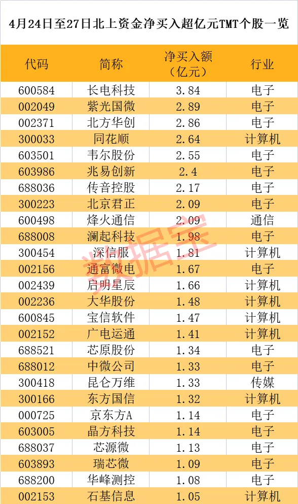 本周,深沪股市探底回升,受益于权重股的拉升,上证指数完全收复周初的跌幅,重回3300点整数关口。北向资金全周净流出65.75亿元,为近期的高峰,但仍有一批个股被逆势加仓。 北上资金抄底TMT龙头股 证券时报·数据宝统计,本周前4个生意业务日,北上资金加仓金额高出2亿元的个股共有14只,此中有9只个股来自TMT板块。它们分别是:长电科技(3.84亿元)、紫光国微(2.89亿元)、北方华创(2.86亿元)、同花顺(2.64亿元)、韦尔股份(2.55亿元)、兆易创新(2.40亿元)、传音控股(2.17亿元)、北京君正(2.09亿元)、烽火通讯(2.09亿元),这9只个股增持金额合计高出23.5亿元。 假如进一步统计北上资金增持金额高出1亿元的个股,可以发现,其对TMT个股的偏好更为显着。在46只个股中,有26只来自TMT行业,合计增持金额靠近47亿元。 这些新能源个股获连续增仓 只管本年以来新能源板块体现不佳,遭到国内机构的连续减持,但外资对此中一些个股依然不离不弃,乃至不绝加仓。比如本周前4个生意业务日被北上资金增持高出1.37亿元的TCL中环,3月份以来被增仓了近4000万股。 本周前4个生意业务日被北上资金增持高出1.52亿元的固德威,3月份以来也被增仓了近300万股。 别的,天合光能本周前4个生意业务日被增持高出1亿元,本年2月10以来获北上资金增仓340万股。 储能板块龙头鹏辉能源只管本年股价一起走低,但北上资金加仓意愿非常刚强。本年2月16日,北上资金持股数仅有607.69万股,本周四已增持至1903.58万股,两个多月的时间,买入数目靠近1300万股。 鹏辉能源客岁年报业绩增长244.45%,本年一季度同比又取得了101.46%的增长。 美股AI龙头创近一年新高 近期,A股市场人工智能板块的热度有所降温,一些个股出现高位回落。不外,在美股市场,人工智能依然得到了资金的热烈追捧。 本周三,微软在公布财报后大幅跳空上涨,当日涨幅高达7.24%。周四,微软股价再涨3.2%,创出一年以来的新高,总市值高出2.2万亿美元。 公司董事长兼首席实行官体现:“天下上开始进的人工智能模子与天下上最通用的用户界面联合在一起,创造了一个盘算的新期间。” |