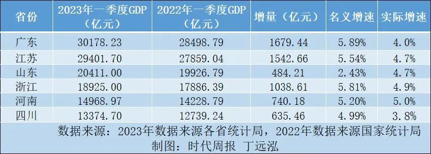 本文泉源:期间周报 作者:丁远泓 经济大省拼经济,从一季度结果单看成效。 4月26日,河南省本年一季度紧张经济数据发布。至此,中国GDP总量排名前六的经济大省全部公布了本年一季度的经济运行情况。 从数据来看,表现不俗:六个经济大省GDP总量到达127259.60亿元,约占天下GDP的44.7%。 具体而言,江苏、山东、浙江、河南四省跑赢天下4.5%的匀称增速。 此中,河南的经济增速最高,是六个经济大省中唯一实际增速到达5.0%的省份;山东初次在第一季度突破2万亿GDP,“2万亿俱乐部”成员增长至3位;广东则成为天下首个第一季度GDP突破3万亿的省份。 经济大省在本年一季度“挑大梁”结果怎样? “2万亿”成员各有亮点 广东、江苏、山东这三个排名前三的经济大省,在2023年第一季度的经济运行情况可圈可点。 常年排名“榜首”的广东创下首个“3万亿”记录,与江苏的经济差距从639.75亿元扩大至776.53亿元。 广东省统计局数据表现,一季度,广东GDP为30178.23亿元,同比增长4.0%。 分产业看,第一产业增长值1039.06亿元,增长4.1%;第二产业增长值11141.35亿元,增长2.4%;第三产业增长值17997.83亿元,增长5.0%。 不难发现,服务业对广东省的经济增长拉动显着。一季度,广东服务业增长值对经济增长的拉动由上年整年的0.7个百分点进步至3.0个百分点。 此中,打仗性聚集性服务业谋划情况显着改善,客运量、游客周转量分别增长48.4%和65.8%;交通运输、仓储和邮政业增长值增长0.6%,比上年整年进步6.2个百分点;留宿和餐饮业增长值增长13.9%,在服务业中增幅最大。 本年经济工作的重点是“着力扩大国内需求”,规复和扩大消耗摆在优先位置。 本年伊始,广东针对差异范畴发布促消耗政策文件,增强政策引领,提振市场信心。 市场给出快速积极的回应,复苏向好的趋势体如今数据上。 一季度,广东社会消耗品零售总额1.18万亿元,同比增长5.1%。 按消耗形态分,商品零售额增长2.4%,餐饮收入增长31.4%。别的,广东线上消耗增长13.6%,拉动全省限额以上单位商品零售额增长4.2个百分点,线上消耗拉动作用显着。 “3万亿俱乐部”成员亮相,“2万亿俱乐部”成员也有新面貌。 山东省统计局数据表现,2023年一季度,山东省GDP为20411亿元,按稳固代价盘算,同比增长4.7%。 分产业看,第一产业增长值738亿元,增长3.8%;第二产业增长值7878亿元,增长5.1%;第三产业增长值11795亿元,增长4.5%。 从数据来看,山东增势显着的是第二产业。 一季度,山东省规模以上工业增长值同比增长5.9%。此中,采矿业增长值同比增长13.2%,制造业增长5.6%,电力、热力、燃气及水生产和供应业增长3.1%。 根据以上行业的增速,制造业并非排在首位。但山东制造业发展势头强劲,投资增长11.0%,拉动全部投资增长3.0个百分点,占全部投资的比重为28.6%。工业技改投资增长也到达7.6%,占全部投资的比重为18.7%。 面对山东工业结构侧重的标题,本年,山东提出要深入实行先辈制造业强省办法,加速促进制造业高端化提拔、智能化改造、绿色化转型、服务化延伸、生态化集聚。 同时,山东将聚焦化工、冶金、机器、轻工、纺织、建材等重点产业,深入实行工业技改提级办法,提拔传统上风产业在天下以致环球产业分工中的职位和竞争力。整年将滚动实行500万元以上技改项目1万个以上,工业技改投资增长6%左右。 除此以外,山东近期反复霸榜热搜。 前有泰山“人山人海”,后有“进淄敢烤”火爆全网,山东的消耗连续回暖。 一季度,山东省社会消耗品零售总额8282亿元,同比增长5.6%。留宿餐饮市场强劲复苏,3月当月全省限额以上留宿业和餐饮业业务额同比增速分别到达45.4%和43.8%。 “五一”假期即将到来,预计“好客山东”的消耗还将进一步回暖。 广东和山东已经突破“新门槛”,江苏离“3万亿”只有一步之遥。 江苏省统计局数据表现,江苏一季度全省实现GDP为29401.7亿元,同比增长4.7%。 从拉动经济作用显着的动力来看,除了消耗动员增长,江苏新能源产业增长显着。 一季度,全省锂离子电池制造、光伏装备及元器件制造、新能源车整车制造增长值分别增长31.8%、36%、59.2%;充电桩、光伏电池、新能源汽车产量分别增长1.6倍、48%、50.2%。 根据2023年江苏省当局工作陈诉,江苏本年要加速构建当代化产业体系,有重点、分梯次推动生物技能、新能源、新质料、高端装备等战略性新兴产业融合集群发展,积极打造当代化产业体系新支柱。 接下来的江苏,还将继续朝着预期经济增长目标继续迈进。 河南增速排名第一 六个经济大省中,河南的“冲劲”最大。 根据河南省统计局公布数据,一季度河南省GDP为14968.97亿元,按稳固代价盘算,同比增长5.0%。分产业看,河南省第一产业增长值648.74亿元,增长3.0%;第二产业增长值6179.88亿元,增长4.5%;第三产业增长值8140.35亿元,增长5.7%。 在经济增长最为显着的第三产业中,全省邮政行业业务总量159.73亿元,增长8.6%;电信业务总量244.35亿元,增长19.4%。打仗型聚集型服务业较快增长,此中航空运输业、铁路运输业、留宿业增长值分别增长25.5%、15.9%、13.2%。 河南省当局专家咨询委员会委员张占仓在继承期间周报记者采访时表现,河南省的服务业快速增长与天下的增长趋势符合。“与2022年相比,受限最大的是服务业,如今规复正常了,消耗规复,相干行业较快增长属于比力正常的情况。” 除了服务业增长,全省规模以上工业增长值同比增长4.2%。三大
