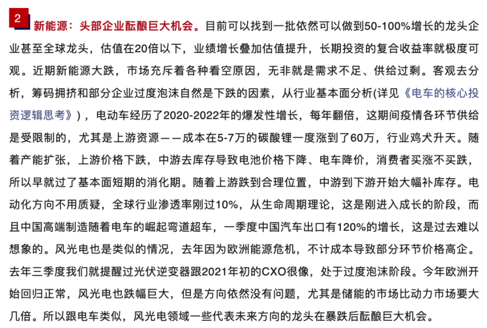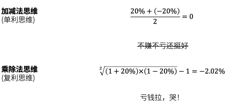 每过一段时间,都会遇上没算对收益率的读者,细细穷究,都是没有学好投基第一课:收益盘算乘除法。 就以近来一个读者的咨询为例吧,他问我为什么我以为已往两周地产表现好,他本身盘算下来是: 地产两周是-0.32和4.7,均匀4.38,5G两周是-3.8和8.2,均匀是4.4 对数字敏感的读者,应该已经发现题目了。这位读者是在用加减法算均匀收益。 但是,投资是不能将收益率算加减法的,而必须用乘除法算复利。 举个很简单的例子,第一年赚了 20%,第二年亏了 20%,到底收益是多少? 下面的加减法()算法与乘除法算法()的对比,可以看到在加减法思绪下,会以为不赚不亏还题目不大,但用真正靠谱正确的乘除法头脑,就会发现每年收益率是-2.02%,亏钱了! 乘除法头脑,着实许多投资入门先容中,都会以“复利效应”去先容,以致用第八大古迹之类的说法。 这种说法不能说错,毕竟复利简直是一个非常牛的东西,平平无奇的 8%年化收益,假如积累 30年,就会带来9倍多的收益,积累 50 年就是 45.9 倍。对于一个 20 岁的年轻人,从 20 岁对峙投资到 60 岁退休,也是可观的收益,如果到 70岁再利用,无疑更为可观。 但是,我这里之以是生造一个“乘除法头脑”,就是不渴望诸位被“复利效应”的赢利效应给勾引,而忽视了复利的另一面——当你担当的不是收益而是亏损之时。 是的,从“乘除法头脑”出发,我更乐意聊的,不是“复利效应”,而是“涨跌不对称效应”。 当你的基金跌了 20%之后,要再上涨多少能回本?假如你复兴是 20%,那么还停顿在错误的加减法头脑中。现实上是 25%。 更可骇的是,当你的亏损拉大之后,须要回本的涨幅,就会拉大的更离谱——当你下跌 50%的时间,就须要 100%的涨幅才气回本。 这里,就要上一张宝藏级的警示图了。 作为 2007 年牛市泡沫的范例,中国石油上市当日最高价为 48.62 元,我当时身边真有朋侪以差不多的代价买了。 这之后呢?股价一起走低,复权盘算最低见 5.63 元,跌掉了88.42%,那么要回本须要从低位涨多少?763.59%! 当你明确了涨跌不对称的可怕之后,你就知道控制回撤意义有多大了。 正由于涨跌不对称的这个特性,尤其是在 A股这个大涨大跌,不对称效应特别显着的市场,以是股债组合,就会有着特别显着的效应——能明确和享受股债组合的好,也必须拥有乘除法头脑。 股票和债券搭配的长处是什么? 长处在于低落股票的仓位,就可以低落整个组合的收益和颠簸,固然看起来是等效的,但在涨跌不对称的法则之下,辅以动态均衡,就有奇效。 下面是一个假造情况假设,假设股票资产第一年跌了 50%,第二年又涨了 100%,从复合收益角度,是打平。 但假如你以 50%的股票加 50%的无收益现金作为仓位,而且每年末动态均衡,那么第一年的收益是-25%,第二年收益则是 50%,固然涨跌都是打了对折,但累计收益却有 12.5%,这多出来的 12.%,就是乘除法头脑下,利用涨跌不对称效应额外赚到的。 毕竟上,大多数时间债券的走势与股票是相逆的,当股票大跌时,债券每每尚有不俗的收益,这意味着股市大跌时债券的部分对冲,我们可以享受更好的抗跌效应,从而实现更强收益。 下面假设我们剩下的 50%仓位不是无收益,而是 3%如许并不高的固定收益,那么两年复合收益就是 15.9%,多了 3.4 个百分点。用半仓 3%的固收就能让总收益增长 3.4%,股债均衡就是这么奥妙无穷。 从加减法头脑,转向乘除法头脑,着实很简单,涉及的数学算法也相称简单。但正是如许的一小步,却是创建正确投资头脑的一大步。 这一步,你走出来了吗? 周三的 A股,以宽基指数来看,是小涨小跌的格局。 但是细看行业指数,却是惊涛骇浪。 一边,是 TMT 板块的芯片、5G 显着降落(10 日跌幅已经到达 2 位数)。 另一边,则是新能源的崛起,尤其是光伏。 从光伏 50ETF(159864)的走势可以看到,从客岁的高点算起,这波调解最大跌幅快要 35%。在这配景之下,出现了一根单日大涨 6.58%的大阳线。 已往几周里,我时不时提示诸位要看看迷恋许久的焦点资产,好比食品饮料,好比新能源。 为什么新能源突然一根大阳线? 单日的走势,欠好表明。但是不能否认的是,在连续暴跌之后,市场对新能源的利空有太过的渲染,而忽视了一些利好因素。 这里,保举诸位阅读一下徐治彪兄 4 月 25 日周二晚上在发布的《国泰基金徐治彪:路虽远,行则将至》一文,此文对新能源板块有云云批评: 作为一个在光伏、新能源车周三暴涨前夜撰文“唱多”的发展股基金司理,徐治彪的观点无疑是值得被多关注几眼的。 我想对于这几年关注新能源的老基民,大多数应该会认同,已往一年的调解,更多是估值,而非发展性的题目。 以光伏 50ETF(159864)跟在的光伏财产指数来看,从下面的 PE-Band我们可以看到两个清楚的毕竟: 光伏财产的利润还在高速上涨,以是五根 Band 趋势向上;一边是股价大跌,一边是红利攀升,以是估值从 2021 年末的 57 倍以上已经消化至 16 倍的水平。 固然 2022 年如许特别地缘政治格局下催化的营收和利润暴增大概难再续,但是从 Wind 综合的猜测来看,2023 年和 2024 年光伏的增幅依然可观。 在如许的根本面下,共同 35%的回撤幅度,再加被骗下资金大概从 TMT 行业转战新战场的结构,出现大阳线,并不希奇。 固然,大阳线之后,新能源何去何从?我始终以为,哪怕新能源未必会成为 2023 年 A股的主线,但是当下作为超跌反弹板块,对冲 TMT 以致中特估调解需求的板块,也有其特别的代价,类似新能源