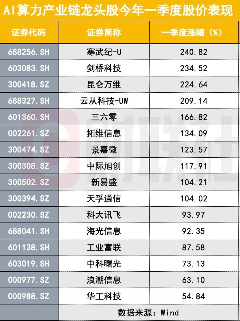 财联社4月25日讯(记者 闫军)随着一季报的披露,公募大张旗鼓的AI调仓大迁徙得到了验证,如前所料亦有人重新能源梭哈AI。从团体数据来看,一季度TMT加仓比例中,盘算机实配环比增长最多3.8%,通讯增长0.8%,大涨的传媒增持比例0.5%。爆炒暴涨也得到公募的承认,持仓披露后,哪些是公募基金真正的“心头好”? 毫无疑问,从股价涨幅来看,AI算力产业链也成为最为受益的板块,AI芯片、AI服务器、光模块、大模子等细分方向龙头股涨幅惊人。AI芯片龙头寒武纪,大模子龙头剑桥科技、昆仑万维、云从科技等个股本年一季度涨幅翻了两倍;三六零、拓维信息、景嘉微、中际旭创、新易盛、天孚通讯等涨幅高出一倍。 华为高管此前曾指出,2026年环球数字化转型付出将到达3.4万亿美元,数字化是整个产业链的新蓝海。又是一个“星辰大海”的到来,岂论是从行业贝塔角度还是净值压力,调仓成为了局面上的选择,团体而言,这种调仓相称极致。 好比,此前不绝被减仓,并在客岁四序度无一重仓股的三六零本年一季度被大肆买入2.32亿,进入121只基金的前十大重仓股,可谓“爱恨一瞬间”;再好比客岁基金重仓股持仓14.53万股的寒武纪,本年已经飙升至4633万股,并被葛兰纳入麾下。 这一波上涨的海潮中,同样可以看到多名牛散的身影,葛卫东的景嘉微传言纷纷,“章牛耳”的中科曙光是否仍旧上演“买入即见顶”,统统还需验证,但TMT已然是人声鼎沸。 AI芯片:“寒皇”当道,葛卫东概念景嘉微被大幅加仓 搭上AI风口,寒武纪是真的腾飞了。本年一季度,寒武纪股价涨幅到达了240.82%。到3月末,市场就有传言医药一姐葛兰耗资数亿元追高寒武纪。 一季报披露后,盲盒开启,寒武纪果真现身葛兰管理的中欧明睿新出发点混淆的第9大持仓股,从持仓来看,“数亿”是以讹传讹的浮夸语言,当前葛兰持有寒武纪28.53万股,持仓市值为5305.56万元。 从市场消息来看,葛兰调仓约莫在3月20日左右,只管简直追高,但是寒武纪尚有更高,3月20日至4月24日期间,寒武纪股价区间涨幅到达97.67%。 对于加仓寒武纪等5只TMT个股的缘故起因,葛兰在一季报中表现,板块轮动节奏很快,团体结构分化较大,投资机会告急会集于经济复苏和科技创新两条主线。节奏快速厘革的过程中,景心胸上行的公司和行业的市场表现更好,在颠簸中更加表现出深耕根本面的代价。 加仓寒武纪的可不止葛兰,Wind数据表现,本年一季度公募持有寒武纪4633万股,客岁寒武纪在基金重仓中仅有14.53万股。 从单只基金来看,中原上证科创板50ETF、银河创新发展、易方达上证科创板50ETF、南方中证500ETF、华安媒体互联网持仓与加仓均为前五,此中,中原上证科创板50ETF一季度加仓到达1093万股,持仓市值高出20亿。持仓市值高出10亿的尚有郑巍山管理的银行创新发展,通过在TMT范畴结构,该基金一季度也劳绩了13.28%的收益率。 同样是AI芯片龙头,景嘉微和海光科技也被公募差别水平加仓仓,一季度,公募持有景嘉微1043万股,较客岁四序度的689万股,持仓增长了51%;与此同时,海光信息一季度持仓为2872万股,较客岁年底的927万股,大幅增长近2.1倍。 景嘉微得到市场关注,一方面是本年一季度股价同样翻倍,涨幅到达123.57%;另一方面,大佬葛卫东的姐姐葛桂兰自2021年三季度以来建仓景嘉微,并买入前十大流通股。固然在客岁三季报表现有所减持,但本年3月23日,市场再次传出葛卫东加仓的消息,当天景嘉微股价20CM涨停,随后有消息传出景嘉微将与沐曦睁开就互助,后者是异构盘算提供安全可靠的GPU芯片及办理方案的公司,应用场景广泛,据悉该公司同样得到葛卫东在一级市场的投资。 不外关于景嘉微与沐曦的互助这一消息,不少投资者在交换平台向公司核实,并没有得到景嘉微方面简直认。北上某TMT基金司理向财联社记者旗帜光显的表达了对景嘉微的审慎态度,其以为市场扩大了景嘉微与沐曦互助的预期,公司也从未明确表达,反而是市场传言颇多。 AI服务器:公募加仓中科曙光、工业富联,市场担心“章牛耳魔咒” AI服务器方面,拓维信息、工业富联、中科曙光、海潮信息龙头股本年一季度涨幅分别到达了134.09%、87.68%、73.13%和63.1%,从公募持仓变动来看,公募基金对上述个股同样大幅加仓。 具体来看,本年一季度,公募持仓工业富联到达2.04亿股,较客岁的1.82亿股增幅12%;中科曙光方面,一季度公募基金持仓8780万股,环比增长485万股。 工业富联成为兴证环球基金司理燕徙的重仓股,她管理的兴全新视野、兴全贸易模式优选两只基金持有工业富联最多,分别到达了2825万股、2588万股。燕徙在一季报中表现,一季度在组合中增长了人工智能产业链相干设置,分享科技发展的产业红利。值得关注的是,兴证环球基金对工业富联持仓市值已经高出10亿元,占流通股比重为0.32%,远高于持仓第二名的交银施罗德的0.14%。 公募对中科曙光的加仓保持了岑寂,略增长485万股,重仓该股的基金分别有华商新趋势优选、金信妥当战略和万家品格生存,持股数目均在600万股上下。 中科曙光还出现了着名游资“章牛耳”的身影,4月20日,中科曙光涨停,龙虎榜表现,买一席位为国泰君安上海江苏路证券业务部,这是“章牛耳”的常用席位,其豪掷20.8亿元买入中科曙光,并卖出5.29亿元,净买入额高出15亿元。 在“杀疯了”的涨停之后的21日中科曙光下跌2.14%,让追涨的投资者担心“章牛耳魔咒”再次上演。有投资者