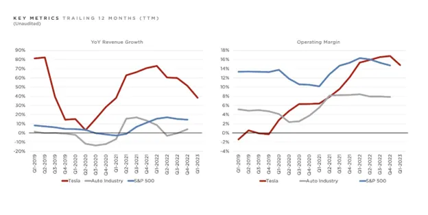 腾讯消息《潜望》 纪振宇 4月19日发自硅谷 电动车厂商特斯拉19日发布的第一季度财报,表现这家电动车行业领军企业的红利本领有所降落,详细反映在第一季度的毛利率、运营利润率等均出现显着降落,同时,在资源开支不停扩大,策划性现金流镌汰的情况下,特斯拉第一季度的自由现金流也出现大幅下滑。 受此影响,特斯拉股价在19日盘后一度大跌超4%。 连续贬价对特斯拉总体红利水平带来显着影响 进入2023年以来,贬价已经成为特斯拉的一大关键词,就在财报发布前夜,特斯拉又公布美国在售的旗下电动车贬价,入门级的Model 3根本设置最低代价已经不到4万美元。 连续贬价带来的影响,直接反映在了特斯拉第一季度的财报中,该季度特斯拉收入同比增长24%至233亿美元,但实现净利润25亿美元,同比下滑24%。 反映其红利本领的利润率指标,在第一季度出现显着下滑。第一季度,特斯拉的毛利率为19.3%,客岁整年每个季度都在20%以上,2022年第一季度毛利率则高达29.1%。运营利润率则降至11.4%,低于客岁同期的19.2%的运营利润率水平,也低于客岁任何一个季度。 只管云云,特斯拉如今的红利本领在一众车企中依然傲视群雄,作为对比,福特的运营利润率约为4%,通用汽车的这一指标在6.6%。 在连续贬价的情况下,特斯拉在第一季度的策划性现金流也出现显着下滑,该季度实现策划性现金流25.13亿美元,同比降落37%,与此同时,特斯拉在该季度的资源付出却出现显着上升,从上个季度的18.58亿美元上升至20.72亿美元,很大大概与特斯拉对墨西哥Gigafactory的投入有关,运营现金流降落和资源付出的增长两相共同作用,使得特斯拉在第一季度中的自由现金流同比大幅萎缩80%至4.41亿美元。 别的,由于该季度融资性现金流和投资性现金流流出大于策划性现金流,导致该季度特斯拉的现金总量出现肯定水平的降落,由客岁末的169亿美元小幅镌汰至一季度末的167亿美元。如今特斯拉账上的现金储备也是已往一年来最低水平。 仍维持180万辆整年交付目的稳固 从电动车产物生产交付方面来看,本季度特斯拉只能说是委曲符合外界等待,该季度共生产电动车44万辆,同比增长44%,交付42.3万辆,同比增长36%,特斯拉夸大,依然维持整年180万辆电动车的交付目的稳固,与2021年初就设立下的50%的复合年化增长率雷划一。 近期,特斯拉分别公布了在墨西哥北部设立新的制造工厂以及在上海设立电池工厂,这些都是为了电动车生产和交付的长期目的所做的铺垫。 特斯拉在财报中展示了如今全部的制造工厂所具备的年产量本领,此中美国加州工厂的年产量本领为65万辆,上海工厂整年生产本领为凌驾75万辆,柏林工厂凌驾35万辆,德克萨斯工厂凌驾25万辆。全部工厂全部年生产本领在200万辆以上。 其他业务方面,值得一提的是,第一季度中特斯拉的储能业务收入实现显着增长,同比增长148%至15.29亿美元,是特斯拉陈诉收入的三大业务部门中增长最为显着的部门。但由于其收入仅占总收入的不到7%,如今依然难以成为特斯拉业绩的增长引擎。 |
