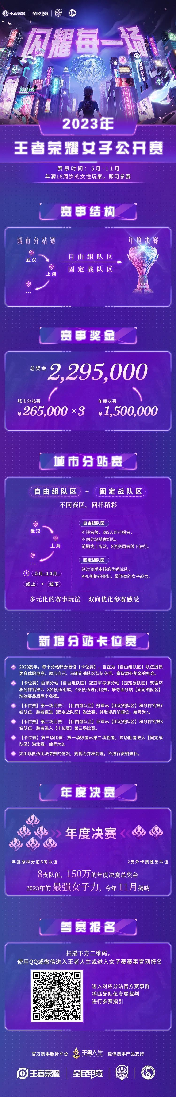 2023年5月4日,第三届王者光彩女子公开赛将以全新面目开启年度新征程。 本届赛事仍旧采取都会分站赛+年度决赛,前期线上海选+后期线下比赛相团结的比赛方式,面向全体年满18周岁的女性电竞爱好者,有着高出200万的高额奖金,比赛时间将从5月一连至11月份。 同时,美团外卖成为了本赛年女子公开赛的行业相助同伴,共同探索女子电竞生态相助新模式。 本周赛事 本年都会分站赛第一站为武汉站,具体比赛时间见下图,本年都会分站赛仍旧主体由自由组队区和固定战队区构成,同时新增了卡位赛计划,旨在为自由组队区的女性玩家们提供更多的大概性。 与上一届类似的是每个都会分站还是分为自由组队区和固定战队区,差别赛区之间举行独立竞技和镌汰,前期均采取线上镌汰,两大赛区均筛选出八强队伍进入线下赛。 差别的是每个分站增设卡位赛,卡位赛由该分站自由组队区冠亚军与该分站固定战队区双循环积分排名第7、8名队伍构成,4支队伍举行附加镌汰赛,争取固定战队区分站赛镌汰赛末了两个名额。为自由组队区队伍提供更多体验电竞、展示本身,赢取额外奖金的大概性。 自由组队区各分站冠、亚队伍伍,固定战队区积分排名第7、8名,及相助赛事推选的队伍共同构成外卡赛参赛队伍,一起争取年度决赛镌汰赛的末了两个名额。 8支固定战队区队伍已经蓄势待发,本年固定战队区也迎来了新面目,她们将一起显现最强女子力! 2023赛事即将开启 全新slogan彰显电竞自负 官方发布了全新的赛事Slogan:“闪烁每一场”,交情、团队、热爱、积极练习、付出汗水、心跳加速、振臂欢呼、欢笑、泪水、圆梦、遗憾…全部竞技体育具备的元素,在这片专属于王者女性的赛场上,一样不缺。 各位女孩们,在已往的两个赛年里,我们共同见证了女性气力突破私见的绽放,追逐空想、点亮赛场的自负光芒。等待在接下来的新赛年,每一名大胆踏上女子公开赛的女选手们都可以大概——闪烁每一场! 随着社会女性独立意识觉醒,很多人渴望电比赛场可以大概成为女性表达自我的方式,而公开赛的性子决定了无论是玩家、主播还是职业选手,只要有空想和渴望,都可以加入到赛场中来;与此同时,本届赛事所设置的前期线上赛和决赛线下赛,都大大低落了广大女性电竞爱好者们的参赛门槛,契合了全民电竞“大家都能加入,大家都有高光”的代价主张。 官方渴望通过女子公开赛的举行,让各人看到、感受到,而且可以大概鼓励到更多的女性产生更猛烈的发自心田的气力感,让她们通过全民性官方赛事舞台的出现,发掘自身的自负和魅力,成为一个更好大概更良好的本身。 回首王者光彩女子公开赛的发展历程,在中国电子竞技管理委员会和腾讯电竞的携手推动下,2021年国内首个王者电竞女子专业赛事——王者光彩女子公开赛正式问世,引发无数电竞爱好者的关注,也吸引了来自天下各地良好电竞女选手们的共同加入。 2022年第二届赛事不管是赛事规模还是报名士数,都远超于首届,来自天下各地的三千多支队伍中,NOVA战队在终极的决赛舞台上乐成击败了强劲对手RE-Girls战队,捧起了2022年王者光彩女子公开赛年度总冠军的奖杯,战队选手NOVA.一曼也斩获了女子公开赛的第二个FMVP。 在本年1月14日的王者光彩年度颁奖盛典上,来自2022年王者光彩女子公开赛的四位代表选手桃花、开水、一曼、怀沙得到了2022年度王者光彩“赢下喝彩”奖项。这也是第二次王者光彩女子公开赛选手荣获此奖项,她们通过本身的积极,向全部人通报了电竞的女性气力。 打造全民电竞舞台 流传电竞正能量 现在,电子竞技行业的发展趋向已渐渐向普通化所靠拢,全民性电比赛事继续不绝,渐渐变更起了全民加入电竞体育的积极性,以此通报数字体育的正向代价。 而在电比赛事普通化的过程中,女子电竞范畴也得到了充实相应,越来越多的女性玩家加入到王者光彩的队伍中,更多女性气力活泼于电比赛场之上将成为将来的一大趋势。 同时,相比于唯效果论的竞技取向,女子赛也同样关注游戏、电比赛事对一名有着多重身份选手所带来的积极影响,展示新期间中国女性电竞文化精力风貌,促进中国电竞行业多元化发展。 王者光彩女子公开赛的创建,毫无疑问会成为告急的里程碑,其将会渐渐揭开女性电竞的序幕,同时王者光彩女子公开赛的不停发展进步,也会让女子电竞产业在地区化根本上进一步做到规范化、专业化、流程化,形成具有标杆参考意义的首创赛事案例,丰富女性电竞生态,推动中国女子电竞产业发展。 |