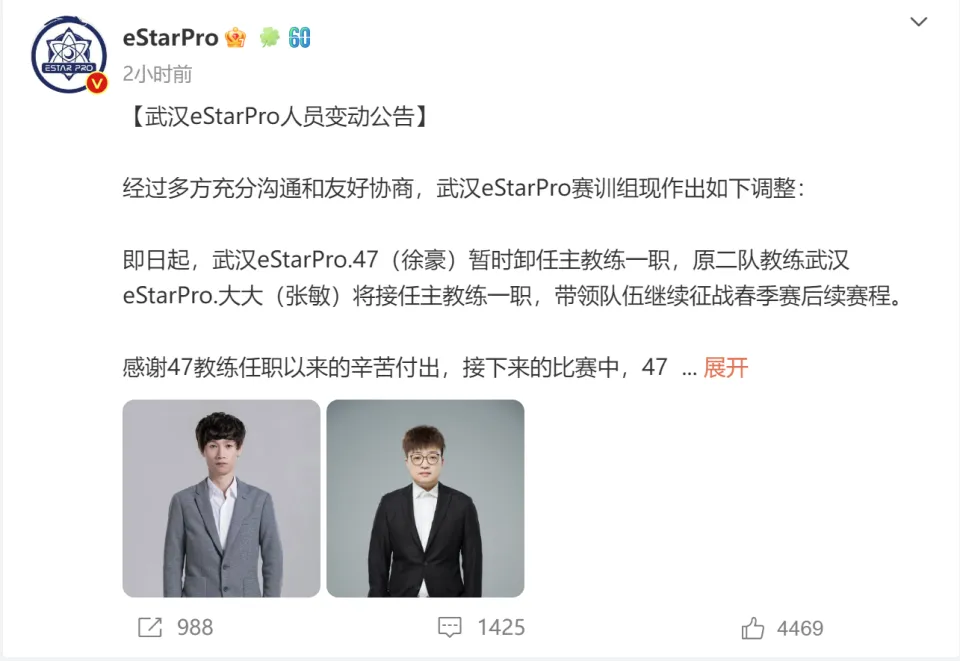 陌陌聊游戏,给您带来最新最快的KPL赛事资讯! 4月19日,KPL春季赛通例赛第十一周的赛程,也就是通例赛第三轮末了一周的赛程,就会正式打响了!末了一周的赛程竣事之后,KPL的通例赛也会全部竣事了! 届时,四支晋级胜者组的战队和A组四支晋级败者组的战队,会全部产生!因此,末了一场比赛,会非常的猛烈!但是对于eStar来说,好像已经没有任何意义了!为什么如许呢? 我们照旧先来看看,eStar在积分榜上的排名吧!S组六支战队,eStar排名第六,也就是末了一名!在第三轮的比赛中,eStar已经打了三场比赛,但是这三场比赛全都输了!三连败,eStar好久都没有试过这么长的连败了! 但是,eStar乃至有大概会出现四连败,乃至是五连败,毕竟eStar迩来的比赛状态,确实黑白常差!看到eStar的结果后,不少网友体现,属于eStar的王朝,正式竣事了! 岂非eStar就再也没有争取胜者组的机会了吗?有,但是几率已经非常小了!胜者组只有4个名额,eStar已经三连败了,还剩下两场比赛了。哪怕是eStar在之后的两场比赛中保持全胜,他们的积分也就是和如今前四名的积分一样! 但是,假如eStar再输一场比赛的话,就绝对不会有任何晋级胜者组的盼望了!因此,在通例赛第三轮末了一周的比赛开赛前,eStar做出了一个调解! 这个调解就是:克日起,eStarPro.47(徐豪)临时卸任主锻练一职,原二队锻练eStarPro.大大(张敏)将接任主锻练一职,领导队伍继承征战春季赛后续赛程。接下来的比赛中,47锻练仍会在职责范围内资助队伍发展,与整个团队站在一起。 也就是说,eStar把主锻练47给辞掉了,让一个领导二队的锻练来领导eStar打完接下来的比赛!看到这里,信赖许多的玩家都和我一样,以为eStar已经算是彻底放弃本届KPL春季赛了。 为什么这么说呢?实在是有缘故起因的。SK是领导eStar创造王朝的锻练,在这个最须要他的时间,他并没有返来重新执教eStar。不少的网友体现,SK已经知道,eStar的强势已经到头了,就算是他上重新领导eStar去打比赛,也不大概让eStar死去活来了! 因此,eStar在非常无奈的环境下,才会让二队的锻练接办一队。也就是说,eStar已经彻底放弃本届KPL春季赛了!各人以为呢? |