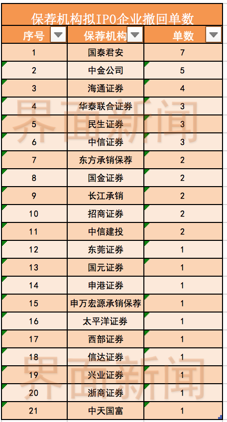 记者|陈靖 IPO市场再现克制潮。 8月份以来,6家被抽中现场查抄的企业自动选择了撤回,撤回率到达30%。此中,主板成为此次现场查抄撤单的“重灾区”,6家撤单项目中除1家来自创业板外,别的5家均来自主板。涉及的券商分别包罗招商证券、东莞证券、国元证券、民生证券、华泰连合证券和中信建投证券等。 7月15日,中证协发布的第三批首发申请企业现场查抄抽查名单体现,涉及企业共有20家。详细来看,有14家为沪深主板IPO企业,4家创业板企业,2家科创板企业。 从时间上看,本次撤回最快的两家企业已在2022年7月28日的克制日前完成了退却,其他4家也于8月4日前递交了申请撤回质料。 据《首发企业现场查抄规定》,查抄对象确定后,考核或注册部分应当在三个工作日内书面关照查抄对象和中介机构,查抄对象自收到书面关照后十个工作日内撤回首发申请的,原则上不再对该企业实行现场查抄。 回首本年前两轮IPO现场查抄,首轮9家被抽中的企业中有4家撤回质料,撤回率到达44%。第二轮抽中2家IPO企业,都未有撤回。而2021年年初的现场查抄中,20家企业里有16家撤回,撤回比例高达80%。 有投行人士表现,部分企业撤质料的缘故原由大概与前期保荐机构的预备工作不充实有关,担心现场查抄查出一些未被充实披露的标题,对企业的IPO造成影响。别的,有些企业大概确实存在业绩真实性标题,经不起羁系层的现场查抄。 针对撤回资料的拟IPO企业,沪厚交易业务所曾明白表现,对于现场查抄出场前撤回的项目,如发现存在涉嫌财务造假、卖弄陈诉等违法违规标题的,保荐机构、发行人都要负担相应的责任,绝不能“一撤了之”,也绝不答应“带病闯关”。 7月至今IPO市场出现新一轮克制潮,再度受到市场关注。 现在,两市IPO列队公司高出千家,本年7月月朔度靠近1100家。但是,在IPO列队企业数量创新高的同时,有多家公司克制上市。 Choice金融终端体现,从7月份到8月中旬,共有45家企业克制上市历程,此中,仅8月8日一天就有7家IPO公司克制检察。 从保荐机构分布来看,撤回数量最多的是国泰君安,7家IPO克制,其次是中金公司,5家IPO克制,再次是海通证券,4家IPO克制。别的,华泰连合证券、民生证券、中信证券也分别有3家IPO克制。 东方承销保荐、国金证券、长江承销、招商证券、中信建投分别有2家,东莞证券、国元证券、申港证券、申万宏源承销保荐、平静洋证券、西部证券、信达证券、兴业证券、浙商证券以及中天国富分别有1家。 |