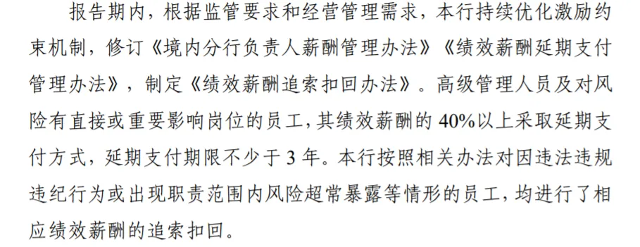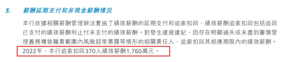 “ 招商银行披露客岁2876名员工被追索扣回绩效薪酬总金额5824万,渤海银行披露370人被追回1760万元,根据羁系层披露消息,95%以上机构已订定并实验了绩效薪酬延期付出和追索扣回制度。” 金融机构绩效薪酬追索扣回制度开始落地! 2021年1月,中国银保监会曾发布了《关于创建美满银行保险机构绩效薪酬追索扣回机制的引导意见》(简称《引导意见》),提出银行保险机构应当健全劳动条约、薪酬管理、绩效考核等管理制度,按规定创建并美满绩效薪酬追索扣回机制。并要求银行保险机构在披露薪酬信息时,应当增长披露绩效薪酬追索扣回的有关信息,不绝加强薪酬信息披露的全面性和透明性。 2022年8月,财政部也曾发布《关于进一步加强国有金融企业财政管理的关照》(简称《关照》),要求金融企业应当订定绩效薪酬追索扣回制度。 根据各家银行披露的年报表现,2022年,这一要求已经徐徐在银行内部实验。而且不但仅国有大行和股份制银行,也包罗了城商行。 根据招商银行2022年年报,2022年度全行2876名员工被追索扣回绩效薪酬总金额5824万元,相当于人均退薪2.03万元。渤海银行370人被追回1760万元,相当于人均退薪4.76万元。 其他各家银行固然没有披露详细数字,但是应该也已经启动了相应的追讨机制。 本年3月,羁系机构披露,95%以上机构已订定并实验了绩效薪酬延期付出和追索扣回制度。 看来,银行员工头上又多了一把达摩克利斯之剑,到了发年末奖的时间,你不但有大概领不到年末奖,而且从前已经发放的奖金尚有大概被追回。 不共同退薪有大概被司法诉讼 根据银保监会《引导意见》,银行保险机构发生下列情况之一的,银行保险机构可以追回向高级管理职员和关键岗位职员超额发放的全部绩效薪酬和其他鼓励性报酬: (一)银行保险机构发生财政报表重述等情况,导致绩效薪酬所依据的财政信息发生较大调解的; (二)绩效考核结果存在弄虚作假的; (三)违背薪酬管理步调私自发放绩效薪酬或私自增长薪酬鼓励项目标; (四)其他违规或基于错误信息发放薪酬的。 对于因存在显着不对或未尽到审慎管理任务,导致职责范围内风险超常袒露的高级管理职员和关键岗位职员,银行保险机构可以追索扣回其相应限期内的绩效薪酬。 对于存在违法、违规、违纪等情况的高级管理职员和关键岗位职员,银行保险机构应当根据情况轻重追索扣回其相应限期内的部分直至全部绩效薪酬。 银行保险机构发生下列情况之一的,应当追索扣回负有重要责任的高级管理职员和关键岗位职员相应限期内的全部绩效薪酬,追索扣回其他责任职员相应限期内的部分绩效薪酬: (一)告急羁系指标严肃不达标或偏离公道区间的; (二)被银保监会及其派出机构或其他金融羁系部分采取接受等风险处置惩罚步调的; (三)发生巨大风险事故,对金融市场秩序造成恶劣影响的; (四)其他对银行保险机构的产业、荣誉等造成巨大陵犯的情况。 对于高级管理职员和关键岗位职员拒不共同银行保险机构按照制度规定追索扣回绩效薪酬的,银行保险机构可以采取告诫、调解工作岗位、司法诉讼等公道有用步调,并将干系情况陈诉银保监会或其派出机构。 多家银行启动“讨薪”机制 2022年,招商银行创建了《绩效薪酬追索扣回管理办法》和高级管理职员薪酬延期付出等事故,2022年整年实验绩效薪酬追索扣回的员工2876人,追索扣回绩效薪酬总金额5824万元。 不外根据招行2021年年报,当年其 已经根据羁系要求及筹谋管理须要,创建了与薪酬延期付出和绩效薪酬追索扣回干系的机制。不外并没有披露干系数据。 除此之外,渤海银行披露370人被追回1760万元。渤海银行在2021年年报中也披露依据干系薪酬管理办法实验了绩效薪酬延期付出、止付和追索扣回,不外没有披露干系数据。 安全银行董事会在2022年则审议了《2021年绩效薪酬追索扣回情况陈诉》,以此推测,应该也有相当一部分员工被“讨薪”。 光大银行表现,按照干系办法对因违法违规违纪举动或出现职责范围内风险超常袒露等情况的员工,均举行了相应绩效薪酬的追索扣回。 “宇宙行”工商银行也披露对高级管理职员和对风险有告急影响岗位的员工绩效薪酬实验延期付出及追索扣回机制,对发生违规违纪举动或出现职责内风险丧失超常袒露等情况的员工,将视严肃程度扣减、止付及追回相应限期的绩效薪酬。2022年,工商银行按照干系办法对因违规违纪举动或出现职责内风险丧失超常袒露等情况受到规律处分或其他处置惩罚的员工,均举行了相应绩效薪酬的扣减、止付或追索。不外停止到年报披露日,其高级管理职员及对总行风险有告急影响岗位的员工2022 年度不涉及绩效薪酬需追索扣回干系情况。 作为城商行的哈尔滨银行也在年报中披露对高级管理职员及对风险有告急影响岗位的员工,实验延期付出和锁定付出限期,同时,对于因存在显着不对或未尽到审慎管理任务,导致职责范围内风险超常袒露的高级管理职员和关键岗位职员,本行对其相应限期内的绩效薪酬举行追索扣回。 羁系机构在本年3月披露,山西5家城商行归并重组期间,对61名高管和关键岗位职员追索扣回绩效薪酬3359万元。 农业银行、创建银行、中国银行也都披露已经创建了绩效薪酬延期付出及追索扣回机制,对因违规失职举动受到规律处分或其他处置惩罚的员工,按照干系办法扣减