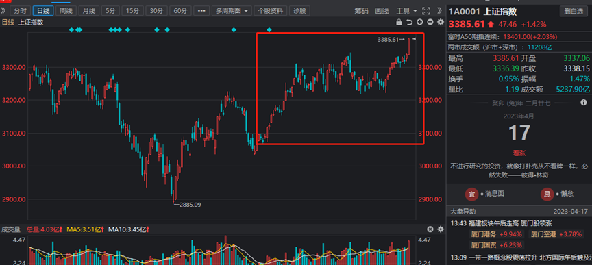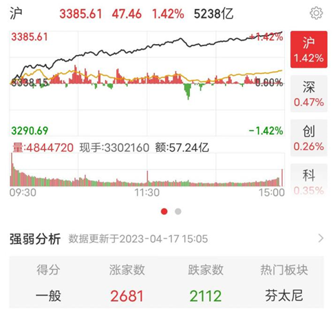 4月17日,A股全天低开高走,三大指数均红盘收涨,此中沪指涨超1%创年内新高。停止收盘,沪指涨1.42%,深成指涨0.47%,创业板指涨0.26%。 泉源:同花顺 总体来看,两市个股涨多跌少,近2700只个股上涨。沪深两市本日成交额11209亿元,较上个买卖业务日放量59亿元,连续第十个买卖业务日突破万亿元。 泉源:同花顺 “牛市旗头”全天生动 本日大金融概念股团体走强,券商股领涨行业,全天涨近3%,东北证券、中泰证券涨停,申万宏源、华泰证券、兴业证券、中金公司、中信证券等跟涨。别的,证券ETF基金(512900)全天涨近3%。 泉源:同花顺 方正证券表现,资源市场的预期好于2022年的情况下,预计券商的根本面将有所改善。尤其是进入4月份以来,两市成交量有渐渐放大的迹象,这将有利于支持券商根本面的改善和估值的修复。同时,随着注册制的有序推动,预计将渐渐开始体如今投行业绩中,注册制下对券商投行业务的承做及承销本领、订价本领将提出更高的要求,基于此,发起关注“投行”“投研”和“投资”联动共同较好的头部券商。 银行和保险板块均涨超1%,亚联发展涨停,弘业期货、中国太保、中国人寿、中国安全、瑞丰银行、邮储银行涨超4%。 泉源:同花顺 中字头盘中冲高,中国移动盘中一度代替茅台成A股市值第一股 本日,中字头股票再度生动,中铝国际、中工国际涨停,中铁装配、中水渔业、中材科技、中国石油等多股涨超5%;中国移动盘中市值一度逾越贵州茅台。 泉源:同花顺 中国移动A股和港股齐齐拉升,停止收盘,中国移动A股涨4.59%,总市值一度逾越贵州茅台,成A股市值最大公司。 小家电板块反弹走高 本日小家电板块再度反弹,全天涨近3%,北鼎股份涨超10%,小熊电器涨停,欧圣电气、新宝股份、富佳股份、飞科电器等跟涨。 泉源:同花顺 艾瑞咨询表现,国内厨房小家电行业上市公司日前连续披露了2022年业绩陈诉。从披露的财报数据来看,新兴小家电企业业绩分化显着,以小熊电器、新宝股份、北鼎股份为例,主打创意小家电的小熊电器2022年实现了营收、净利润双增长;以出口业务为主的新宝股份减收不减利,净利润同比增长超两成;另一家专注高端小家电的北鼎股份营收小幅下滑,净利润却出现腰斩。 天风证券表现,小家电方面,需求出现“K”型分化,中低价位段实现扩容。投资思绪上则仍然维持对国内复苏及智能家居链条的看好,此中智能家居产物附属性上可选性较强,随着复苏的外溢,在后续季度中弹性大概渐渐开释。 接下来看看国内消息: 央行开展1700亿MLF利用,利率连续8个月保持稳定 4月17日,中国人民银行发布公告称,为维护银行体系运动性公道充裕,开展1700亿元1年期中期借贷便利(MLF)利用,中标利率2.75%与前期保持同等,连续8个月保持稳定。 刚刚!上海久事篮球俱乐部回应“CBA假球变乱”处罚结果 17日,中国篮球协会规律与道德委员会公布对“上海久事队”“苏州肯帝亚队”的处罚决定,江苏上海取消本赛季角逐资格,各罚款500万;李春江被取消五年内的锻练员注册资格,李楠被取消三年内的主锻练注册资格;江苏男篮总司理史琳杰自本日起,限定从事与篮球相干的运动5年,上海总司理蒋育生限定从事与篮球相干的运动3年。 泉源:微博截图 有媒体人在微博上直呼“领导广东拿过7座CBA总冠军,以如许了局退场,春江你真是糊涂啊”。 别的,姚明担当采访时也表现:“这是一个沉痛的周末,这两家俱乐部都汗青久长,江苏队的汗青可以追溯到联赛元年,两队都诞生过里程碑式的人物,越说到这些,我们越以为痛心。我们在观察过程中借助了国家体育总局各司局专业气力,为的就是有非常严谨的毕竟依据,来资助我们作决定。对于体育角逐来说,最告急的是信誉,乃至不是本领。我们的辅导是深刻的,必要通过这起变乱,来改变一些东西,让这些已经付出的代价变得有代价。” 下战书,上海久事篮球俱乐部发布声明称,果断担当和服从中国篮协对我俱乐部的有关处罚决定,深刻认识此次灰心角逐变乱所导致的严肃结果,向恒久以来关心、支持、热爱上海男篮的广大球迷朋侪和社会各界致以朴拙的歉意。对此次变乱中暴袒露的题目举行深刻反思,严肃汲取辅导,同时进一步开展内部观察,切实整理队风队纪。在此根本上,闻一知十,警钟长鸣,果断杜绝此类变乱再次发生。 泉源:微博截图 科技部启动国家超算互联网摆设工作 17日上午,国家超算互联网工作启动会在天津召开。聚会会议发起创建了国家超算互联网连合体。未来,科技部将通过超算互联网创建,打造国家算力底座,促进超算算力的一体化运营,助力科技创新和经济社会高质量发展。预计到2025年底,国家超算互联网将可形成技能先辈、模式创新、服务优质、生态美满的总体布局,有效支持原始科学创新、庞大工程突破、经济高质量发展、人民生存风致进步等目标告竣,成为支持数字中国创建的“高速路”。 再来看看国外消息: 泰国闹市区泼水节发生枪战 当地时间4月17日破晓1时许,泰国都城曼谷皇家都会大道(RCA)的一处泼水节派对上发生枪击变乱,导致至少8人受伤。此中,4人被流弹击中受伤,尚有4人在逃跑时受伤。 据悉,皇家都会大道(RCA)是曼谷最受欢迎的娱乐场所之一,也是该国泼水节期间举行庆贺运动的重要场所。此次发生枪击变乱的酒吧,是该地区最著名的夜店之一。 苏丹武装辩说已致83人殒命,1126人受伤 据世卫构造