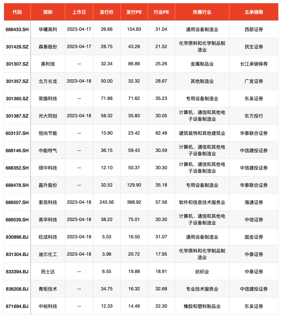 4月10日,主板注册制改革后,首批10家企业正式登岸A股。这10家企业上市首日全线飘红,3只新股涨逾100%,最高涨幅高达221.55%。而本周最大的亮点是年内最贵新股索辰科技(688507)即将上市。此前,索辰科技因245.56元的发行价、368.92倍的市盈率而备受争议。 主板注册制首批新股安稳过渡后,A股新股麋集“打新”的节奏在本周回落。汹涌消息根据Wind及公开信息梳理统计,本周(4月17日-4月21日)共有3只A股新股网上申购,较上周(4月10日-4月14日)淘汰了3只;港股本周未有新股在招股中。 在上市方面,Wind数据表现,停止4月16日,A股共有17家企业已在网上发行股份,融资金额为112.36亿元,现在,科创板1家企业、创业板1家企业、北交所2家企业已公布挂牌操持;港股本周未有企业拟上市。上周,共计12家企业挂牌上市,此中A股迎来11只新股挂牌上市,融资总额共计216.185亿元,港股上周有1只新股上市。 一,本周新股申购 本周共有3只新股申购,此中科创板1只,为三博脑科医院管理团体股份有限公司(简称“三博脑科”,301293.SZ);创业板1只,为合肥晶合集成电路股份有限公司(简称“晶合集成”,688249.SH);北交所1只,为广西华原过滤体系股份有限公司(简称“华原股份”,838837.BJ)。 详细来看,据国泰君安,三博脑科是国内民营神经专科医疗龙头,稳固互助首医大,现在运营医院6家,在建医院2家,开放床位1500余张,年门诊量近50万人次,公司依托北京三博开启团体化运作、连锁化谋划,积聚丰富规模化扩张履历。比年来国内积极出台政策支持社会办医,我国民营医院发展潜力巨大。 三博脑科所在行业“Q83卫生”近一个月(停止2023年4月14日)静态市盈率为57.10倍。根据招股意向书披露,选择爱尔眼科(300015.SZ)、通策医疗(600763.SH)、康宁医院(2120.HK)、康华医疗(3689.HK)作为可比公司。停止2023年4月14日,可比公司对应2021年PE(LYR)为76.83倍,对应2022、2023和2024年Wind划一推测PE分别为70.00倍、53.79倍和41.71倍(均剔除港股上市企业)。 据国泰君安,晶合集成是国内面板表现驱动芯片(DDIC)晶圆代工龙头,已成为中国大陆收入第三大、12英寸晶圆代工产能第三大的纯晶圆代工企业(不含外资控股企业)。 晶合集成所在行业“C39盘算机、通讯和其他电子装备制造业”近一个月(停止2023年4月14日)静态市盈率为31.71倍。根据招股意向书披露,选择中芯国际(688981.SH)、华润微(688396.SH)、华虹半导体(1347.HK)、台积电(2330.TW)、联华电子(UMC.N)、天下先辈(5347.TWO)作为可比公司。停止2023年4月14日,可比公司对应2022年匀称PE为25.89倍,对应2023年和2024年Wind划一推测匀称PE分别为33.52倍和26.40倍(均剔除境外市场公司);可比公司对应2022年匀称PS为6.59倍,对应2023年和2024年Wind划一推测匀称PS分别为5.92倍和5.04倍。 据申万宏源,华原股份重要从事车用、非门路移动呆板用滤清器和工业用过滤装备的研发、制造和贩卖,产物重要包罗机油滤清器、柴油滤清器、氛围滤清器三大类,卑鄙广泛应用于商用车、工程呆板、农业呆板、氛围压缩机、燃气轮机组等动力和工业装备范畴。公司于2021年被评为第三批国家级专精特新“小巨人”企业。申购分析意见为审慎加入。 二,本周新股上市 停止4月16日,A股共有8只股票已公布上市操持。 周一(4月17日)共有2只新股挂牌上市,1只新股为科创板的湖南华曙高科技股份有限公司(简称“华曙高科”,688433.SH),另1只新股为创业板的安徽森泰木塑团体股份有限公司(简称“森泰股份”,301429.SZ);周二(4月18日)共有5只新股挂牌上市,分别为上海索辰信息科技股份有限公司(简称“索辰科技”,688507)、山东华阳迪尔化工股份有限公司(简称“迪尔化工”,831304.BJ)、南京高华科技股份有限公司(简称“高华科技”,688539.SH)、北方长龙新质料技能股份有限公司(简称“北方长龙”,301357.SZ)、深圳光大同创新质料股份有限公司(简称“光大同创”,301387.SZ);周三(4月19日)上市的新股为重庆市旺成科技股份有限公司(简称“旺成科技”,830896.BJ)。 值得注意的是,索辰科技发行代价为245.56元/股,是年内排名第一高价的新股,对应的市盈率为368.92倍,也创下本年以来新股最高记录。此前索辰科技打新时,中一签的投资者须要准备的认购资金高达12.3万元。效果表现,索辰科技打新网上投资者放弃认购数目为57.26万股,放弃认购金额为1.4亿元,弃购率为5.54%,成为年内弃购比例第二高的新股。 招股书资料表现,索辰科技创建于2006年,是一家专注于CAE软件的高新技能企业,重要产物为工程仿真软件及仿真产物开辟。索辰科技的产物重要用在军工范畴,公司客户群体涵盖中国航发、中国船舶、航空工业、航天科技、 航天科工、中国电子、中国电科、中核团体、中国兵工等九雄师工团体及中科院部属的科研院所。2019年以来,中国多家科研机构和研究所被禁用底子工业软件,本土CAE软件标的相对稀缺。 别的,A股仍有13家已在网上发行的企业,尚未公布上市日期。 上周共有11只新股上市,此中10只股票为全面注册制改革落地后,沪深两市主板首批上市的企业,分别为江西省盐业团体股份有限公司(简称“江盐团体”,601065.SH)、柏诚体系科技股份有限公司(简称“柏诚股份”,601133.SH)、中信金属股份有限公司(简称“中信金属”,601061.SH)、江苏常青树新质料科技股份有限公司(简称“常青科技”,603125.SH)、中重科技(天津)股份有限公司(简称“中重科技”,603135.SH)、陕西能源投资股份有