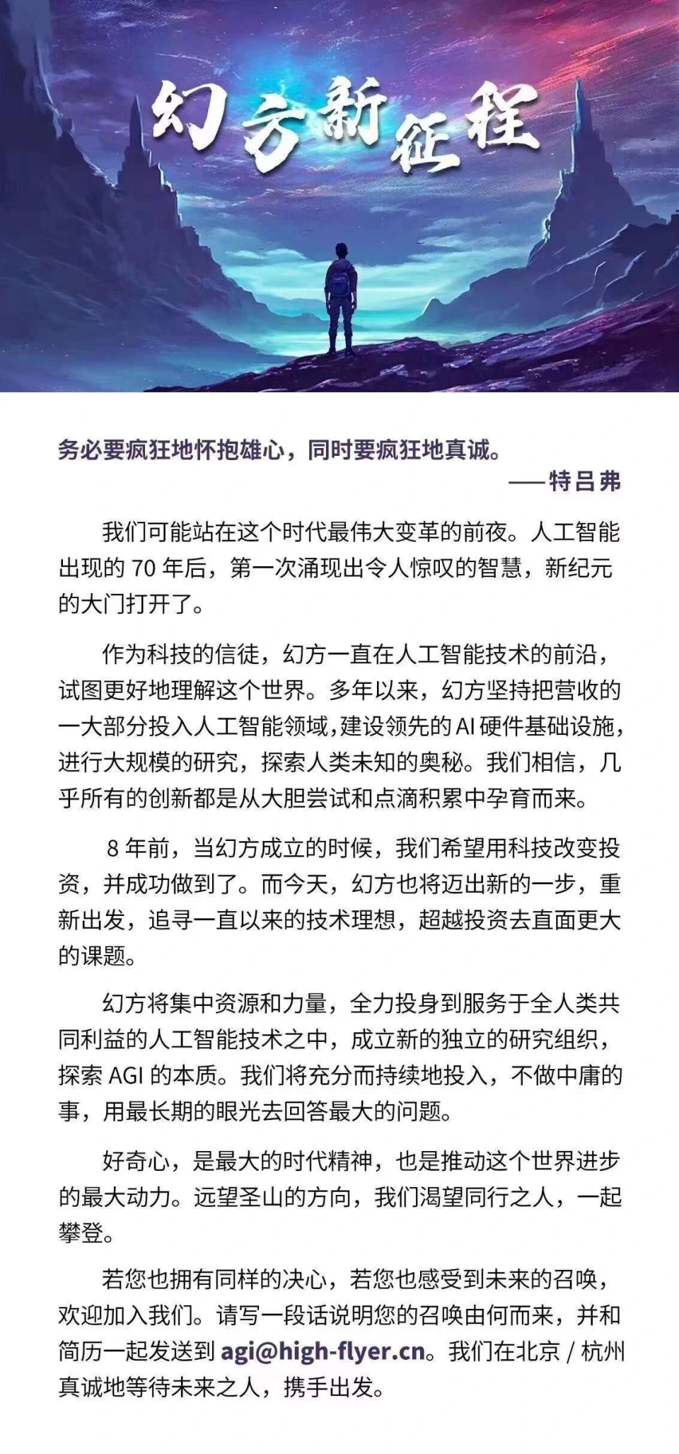 头部量化私募幻方公布建立新的独立的研究构造,探索AGI(即通用人工智能,Artificial General Intelligence)的本质。 4月14日,幻方发布公告表现,幻方将会合资源和力气,积极投身到服务于全人类共同长处的人工智能之中,建立新的独立的研究构造,探索AGI的本质,“我们将充实而连续地投入,不做中庸的事,用最恒久的眼光去回复最大的标题。” 幻方公布探索AGI 幻方称,我们大概站在这个期间最巨大厘革的前夜。人工智能出现的70年后,第一次涌现出令人赞叹的聪明,新纪元的大门打开了,“作为科技的信徒,幻方不绝在人工智能技能的前沿试图更好地明白这个天下。多年以来,幻方对峙把营收的大部分投入人工智能范畴,创建领先的AI硬件底子办法,举行大规模的研究,探索人类未知的奥秘。我们信任险些全部的创新都是从大胆实行和点滴积累中孕育而来。” “8年前,当幻方建立的时间,我们盼望用科技改变投资,并乐成做到了。而本日,幻方也将迈出新的一步,重新出发,追寻不绝以来的技能理想,逾越投资去直面更大的课题。”幻方在公告中体现。 幻方体现,将会合资源和力气,积极投身到服务于全人类共同长处的人工智能之中,建立新的独立的研究构造,探索AGI的本质,“我们将充实而连续地投入,不做中庸的事,用最恒久的眼光去回复最大的标题。” 作为一家头部量化私募,幻方官网表现,其在2018年就创建以AI为公司的紧张发展方向。 2020年开始,幻方累计投资超亿元、占地面积相当于一个篮球场的AI超等盘算机“萤火一号”正式投入运作,号称可以对抗4万台个人电脑的超等算力。2021年,幻方投入十亿创建“萤火二号”,算力扩容翻倍,集群连续满载运行,匀称占用率到达96%以上。 据国盛证券,在云算力端,如今国内只有商汤、百度、腾讯、字节、阿里和幻方有高出1万张A100芯片储备。 AI对量化有助推作用 究竟上,如今量化投资根本以AI技能为焦点驱动力。 “AI对量化有非常大的助推作用。AI对我们的技能路径、技能栈、业务构造架构、团队构成等产生很大影响。”九坤投资首创合资人、CEO王琛体现,“比年来九坤投资开始大规模利用AI算法应用于投资计谋范畴,2020年,其时我们的投资技能是混淆状态,AI技能在投资范畴的贡献占比约60%,到如今为止,新技能的发展,AI技能的推进,引领着我们整个投资研究的框架。” 据王琛先容,九坤的投研遵照“AI原生”方法,起首界说这套投资计谋是一套AI架构,以AI作为底层功能来推动整个研究思绪、研究方法、研究逻辑的升级, “我们如今的投研已经百分之百由AI来驱动,固然它深度叠加了我们对量化投资规律研究的一些履历。” 从2017年开始,另一家头部量化私募明汯投资就开始体系性地到场呆板学习和深度学习技能,将人工智能技能乐成应用到金融市场。 在明汯投资总监解环宇看来,人工智能焦点三要素(数据、算法、算力)在量化投资中都至关紧张,三要素协同有助于量化投资计谋连续高效迭代,若某一要素出现显着短板则有大概造成错失高速发展时机。 解环宇以为,较为成熟的量化投资AI平台应该具备两大特质,即前瞻性和高效迭代。前者体如今较为美满的顶层计划上,后者体如今多项目标协同推进中。 王琛指出,行业领先的量化投资公司都很关注这些方面的盼望,未尝不会有一些颠覆性的技能出现。 擎丰投资团结首创人林威利也以为,人工智能工具可以使投资司理在没有强盛的定制化渠道和工程团队的情况下,连续合成和及时网络数千个泉源的数据,而这曾经是大型基金司理的特权。 “我们信任,人工智能对金融的下一个巨大影响将出如今量化投资和根本面投资的交织点上。通过将根本面投资与人工智能融合在一起,传统的研究驱动型投资者将可以或许加速数据发现、分析、信息合成和洞察提取。”林威利说。 |