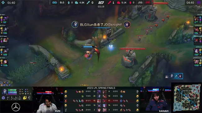 北京时间4月15日晚,2023LPL春季总决赛履历四局出色对决,终极由北京JDG战队以3-1的总比分击败了BLG战队问鼎春季赛冠军!JDG战队继2022LPL夏日赛以后乐成卫冕,成为LPL汗青上第三支连任联赛冠军的队伍,队史夺冠次数增长到第三次,而且将初次以LPL一号种子身份出征2023MSI季中冠军赛! 第一局 JDG:奎桑提、蔚、安妮、金克丝、璐璐 BLG:贾克斯、猴子、小法师、厄斐琉斯、锤石 开局JDG下路组手握线权,猴子实验帮下路缓解压力时被蔚发现,两边打野及下路在小龙河道交换了一波技能,璐璐和锤石对交闪现点到为止。7分钟蔚偷小龙时被发现,猴子Q惩抢到了炼金小龙,锤石反身E技能打断了蔚的Q突进,厄斐琉斯切坠明羁系到JDG三人,小法师闪现R拿到璐璐的一血,安妮闪现W被厄斐琉斯的闪现化解。原来BLG众人准备撤走,但是锤石转身的一Q没有钩到追击的金克丝,JDG得以反打出1换2,Ruler的金克丝劳绩双杀发育腾飞~ 经此一役JDG从下路打开局面,并睁开了更为凌厉的攻势:下路组回城后敏捷换线到上路,和蔚越塔强杀了贾克斯,BLG中野双游下路无功而返。Kanavi的蔚放出峡谷先锋掩护金克丝推掉上路一血塔,然后对老队友“重拳出击”,在Yagao的小法师闪现转好之前抓中得手,失去中单的BLG只能把土龙拱手让出。15分钟JDG抢到第二只先锋,BLG则卡住河道入口的位置,集火先行带走了奎桑提,安妮从大龙坑上方闪现下来晕到了假猴,厄斐琉斯切坠明留下三人,资助BLG打出0换4,追回了之前的劣势!大龙出生前JDG三路一塔告破,不外手握两条小龙,两边经济持平。 中期JDG的打击压力更大,安妮在中路闪现开团,不意厄斐琉斯隔墙的荧焰大招压低了JDG四人的血量,JDG只打出一波2换3无法动大龙,随后BLG众人在上路追击单带的奎桑提,两边一起拉扯进大龙河道,BLG忽然“迷之决定”选择转身开大龙,Ruler的金克丝无人限定火力全开,在队友的掩护下怒砍三杀,JDG打出一波突如其来的1换5,团灭BLG并接盘大龙!终极JDG平推下路一波竣事角逐,速战速决1-0先下一城! 第二局 BLG:武器、千珏、加里奥、厄斐琉斯、呆板人 JDG:奎桑提、猴子、阿狸、金克丝、洛 千珏前期来到中路Gank,加里奥在自身血量不佳的环境下强行上前先手被阿狸反杀送出一血,千珏含泪为队友报仇收掉阿狸以后再控到上半区河蟹,包管了本身前期发育的领先。两边安稳发育一段时间以后呆板人忽然神之一手勾到塔下发育的金克丝,为厄斐琉斯取得线杀。随后两边在上半区发作团战,先手勾到阿狸的BLG忽视了JDG的人数上风,阿狸利用大招闪转腾挪躲避集火收下双杀,JDG打出1换3,不外先锋随后被复活出来的BLG队员收下。两边继续围绕资源睁开团战,由于双C的装备差距太过显着,BLG固然前排出场结果不错但依然被JDG轻松击溃打出了0换3,彻底失去了对于角逐的掌控。 JDG稳扎稳打连续扩大上风,BLG强弩之末已经无力反抗,22分钟刚到JDG选择利用视野上风直接开打大龙,BLG众人仓从赶到河道但是无从强龙,JDG拿下大龙以后立刻转身开团,BLG慌不择路一起溃退终极一泻千里,JDG忽然殒命杀死角逐,势如破竹推进基地拿下第二局角逐,2-0领先BLG而且手握冠军点! 第三局 BLG:格温、蔚、阿狸、霞、泰坦 JDG:奎桑提、猴子、丽桑卓、厄斐琉斯、塔姆 开局JDG中、下两路手握线权,猴子得以反了BLG的锋喙鸟,不外交W过墙拼惩戒抢到蔚的石甲虫之后BLG下路组赶来包夹,猴子被迫闪现过墙逃走。蔚刷到3级gank中路,阿狸先手魅惑让丽桑卓只能第二时间交E,蔚再跟Q闪打断了丽桑卓的冰爪,稳稳地拿到一血。 固然丽桑卓送了一血,但BLG在下半张舆图仍然没有线权,蔚开小龙时被JDG发现只能停手,猴子得以接盘火龙,随后JDG中野双游下路,四包二集火带走泰坦。作为交换Xun的蔚控下第一只峡谷先锋,顺手抓上Q闪越塔强杀了奎桑提,再把先锋放在中路养阿狸,前期节奏行云流水。JDG没有找到绝佳的gank机遇,转而兵不血刃控下了风龙,通过中立资源包管本身的控图节奏。Bin的格温在上路克制了奎桑提30多刀,也吃到了不少镀层,发育领跑全场。15分钟BLG全员从三方包夹换线到中路的JDG双人组,厄斐琉斯被逼出双招,BLG打出0换2击杀了JDG野辅,并推掉中路一血塔。 大龙出生前JDG掩护第二只先锋推掉中路一塔,BLG则控下海克斯小龙,中野连续“军训”上路,奎桑提连续阵亡两次,丽桑卓传送落地为时已晚“一死一送”,JDG无奈把大龙拱手让出,拆了中路二塔举行止损,随后全员集结下路,抓死了跟队友落单的格温,厄斐琉斯又在小龙河道闭幕了阿狸,JDG打出0换2“听牌”了海克斯龙魂,经济落伍3千还能继续。25分钟BLG付出中辅两人的代价rush掉大龙,JDG乘隙争先落位小龙河道,BLG稳扎稳打以2换5团灭JDG大获全胜!JDG双门牙塔失守,经济落伍8千无力回天。终极BLG无压力rush掉大龙,平推下路打出0换5团灭JDG一波竣事角逐,1-2坚强地扳回一分! 第四局 JDG:酒桶、猴子、阿狸、金克丝、锤石 BLG:剑姬、蔚、辛德拉、霞、泰坦 前期泰坦游走消散在线上,锤石想要找机遇出勾斲丧霞,结果恰好撞上BLG野辅一起前来包夹下路,无奈送出一血。两边寂静发育到8分半峡谷先锋发作团战,阿狸与酒桶默契共同锁死了辛德拉,BLG强行换掉酒桶以后狼狈退却。接下来JDG中野加强了对于中路的打击力度,BLG频频出现失误送出人头导致中野节奏被JDG完全把握。三个人头开局的阿狸在前中期制造了很大威胁,在中野的动员下JDG妥当应对BLG的打击而且不停扩大