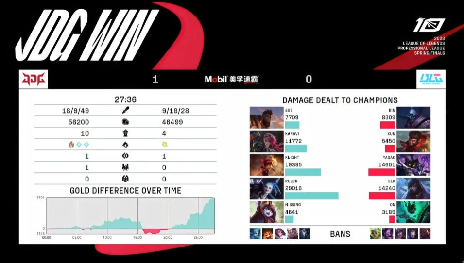 LPL春季赛决赛JDG和BLG的角逐,两边大战4局之后,JDG乐成以3-1的战绩击败BLG,拿下了LPL春季赛的冠军。恭喜JDG! 第一局JDG上单奎桑提,打野蔚,中单安妮,下路金克丝加璐璐;BLG上单贾克斯,打野猴子,中单小法师,下路厄斐琉斯加锤石。7分钟两边夺取小龙,xun猴子抢下了第一条小龙,之后两边混战,JDG打出了一波1换2,BLG拿下了一血。9分钟JDG在上路抓死bin贾克斯后,推掉了上路一血塔。前期BLG经济领先1K。中期23分钟BLG 打大龙,JDG赶来后开团,Ruler金克丝收割,JDG团灭BLG后,拿下第一条大龙。24分钟,knight安妮下路单杀Yagao小法师。25分钟JDG拿下停牌龙。终极27分钟JDG在下路击杀BLG三人后,拿下了首局的胜利。第一局输出最高的是Ruler金克丝,BLG这边伤害最高的是牙膏小法师。 第二局BLG上单贾克斯,打野千珏,中单加里奥,下路厄斐琉斯加呆板人;JDG上单奎桑提,打野猴子,中单狐狸,下路金克丝加洛。3分钟xun千珏抓中,固然击杀了knight狐狸,但是牙膏加里奥被换掉,JDG拿下了一血。8分钟下路2V2对拼,Ruler金克丝被击杀,ELK厄斐琉斯拿到击杀。14分钟JDG推掉了下路一血塔。前期JDG经济领先3K。中期20分钟369亏桑提 在下路单杀yagao加里奥。21分钟JDG光速拿下第一条大龙,之后直接追击团灭BLG,22分钟就拿下了第二局的胜利。MVP给到了knight狐狸。 第三局BLG上单格温,打野蔚,中单狐狸,下路霞加泰坦;JDG上单奎桑提,打野猴子,中单冰女,下路厄斐琉斯加塔姆。4分钟xun蔚抓中,击杀了Knight冰女,BLG拿下了一血。15分钟BLG在中戮营团击杀JDG野辅后,推掉了中路一血塔。前期BLG经济领先1K。中期20分钟BLG再次抓369奎桑提,Knight冰女TP过来增援,效果JDG上中两人全被击杀,BLG顺势拿下第一条大龙。22分钟JDG拿下停牌龙。26分钟BLG拿下第二条大龙,但是中辅2人被击杀。28分钟两边夺取小龙,牙膏狐狸绕后,BLG拿到小龙后,两边团战混战,Ruler狂风向前被击杀被秒,BLG团灭JDG后,拆掉了JDG两座门牙塔。后期33分钟BLG拿下第三条大龙和听牌龙。终极34分钟BLG在下路团灭JDG后,乐成追回一局。 第四局JDG上单酒桶,打野猴子,中单狐狸,下路金克丝加锤石;BLG上单剑姬,打野蔚,中单辛德拉,下路霞加泰坦。4分钟xun蔚抓下,击杀了missing锤石,BLG拿下了一血。前期JDG经济领先1K。中期23分钟missing锤石Q到ELK霞,固然BLG击杀了锤石,但是JDG其他人赶来击杀BLG四人,随后拿下第一条大龙和听牌龙。28分钟kanavi猴子在下路单杀牙膏辛德拉。29分钟JDG拿下炼金龙魂。30分钟JDG拿下第二条大龙。终极35分钟ELK霞在下路被击杀,JDG团灭BLG后,拿下了角逐的胜利。 那么,对于这场角逐,你们有什么想说的吗?欢迎在品评区留言探究。 |