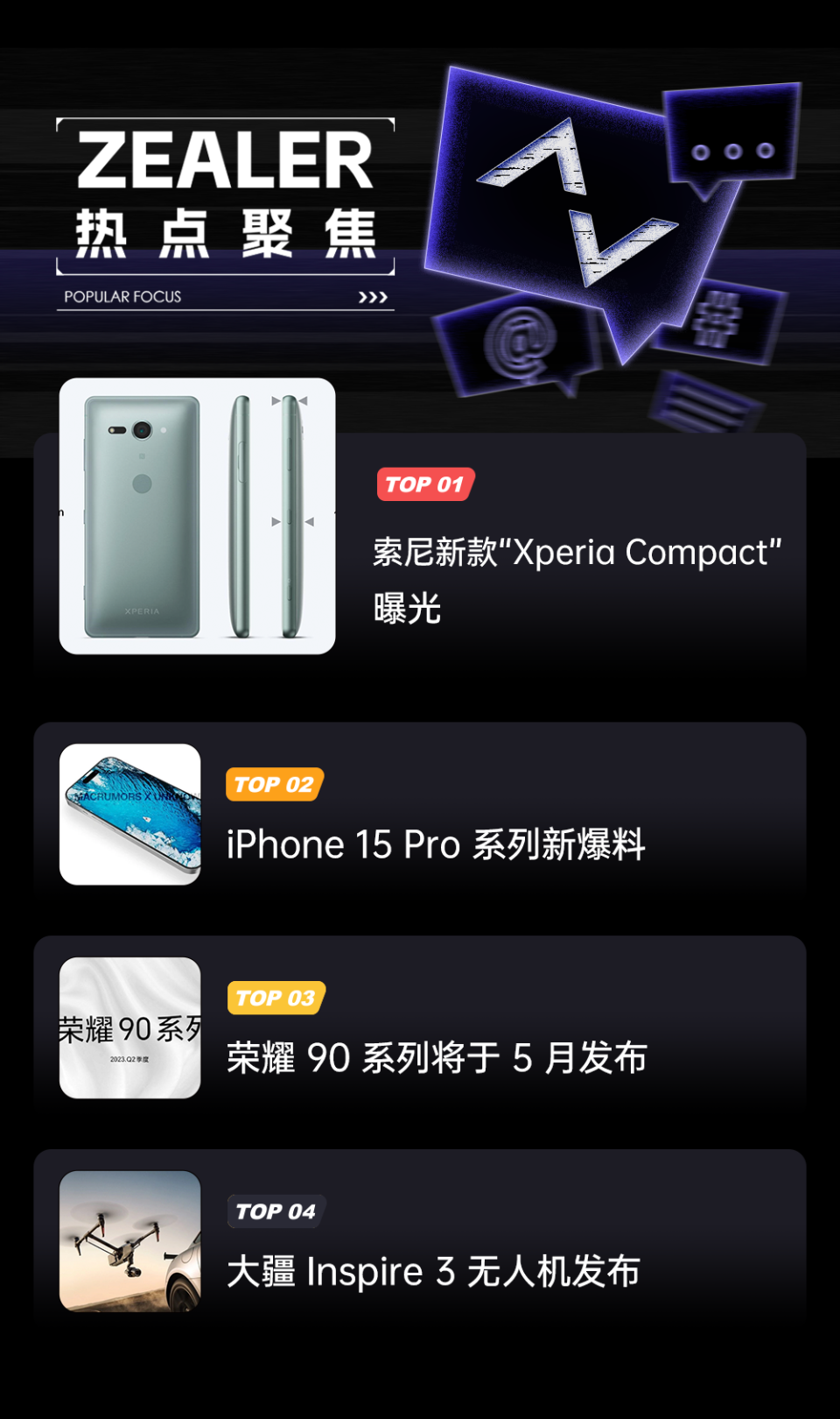 众所周知,如今智能手机的屏幕越来越大,机身越来越沉,单手利用的体验越来越差。但是,另有不少用户喜好小屏手机,以为它们更轻便,握持使用更惬意。日前,表现器供应链咨询公司(DSCC)的 CEO 罗斯·杨(Ross Young)就曝光了索尼的新一代 Xperia Compact 手机,这是眼下数不多的小屏旗舰手机。 索尼 Xperia XZ2 Compact(2018 年) 根据爆料,索尼的新款“Xperia Compact ”将搭载 6.05 英寸表现屏。固然看起来不是很小,但联合索尼修长的 21:9 影戏宽屏计划,机身宽度比其他手机更小,机身材积更轻,握持也更惬意。 杨表现,这款“Xperia Compact”是索尼 Xperia 5 系列的一部分。由此推断,它的真身大概就是新一代的索尼 Xperia 5 V。按照往年的节奏,该机大概会在本年 9 月前后上市,搭载骁龙 8 Gen 2 处置惩罚器。如无不测,它也会保存无刘海无挖孔计划,以及 3.5mm 耳机孔。 索尼 Xperia 5 IV 除了不再迭代的 iPhone 13 mini,市场上的小屏旗舰手机根本都是 6 英寸左右的屏幕,和 6.1 英寸的 iPhone 标准版差不多。安卓阵营这边,比力着名的小屏旗舰也只有三星 S23、小米 13、索尼 Xperia 5 IV、华硕 Zenfone 9 等。 随着苹果砍掉 iPhone mini 产物线,且传说其 SE 系列新机也会像 XR 一样换上更大的屏幕,市场上的小屏机型可以说是越来越少了。与之相比,大屏幕、长续航的机型更受斲丧者欢迎,也终极成为了市场的主流选择。 除了少少数旗舰中杯和中低端入门机,小屏手机可以说根本绝迹了。比起惬意的握持感,市场照旧选择了更好的屏幕视野,更长的电池续航。 前几天郭明錤发文称,iPhone 15 Pro 将取消固态按键转向传统实体按键计划。本日消息人士 Unknownz21(@URedditor) 透露,苹果再次调解了 iPhone 15 Pro 和 iPhone 15 Pro Max(或叫 iPhone15 Ultra)的计划。大概是由于苹果对终极计划摇摆不定,这次的爆料也是一波三折。 他先是和 MacRumors 相助,放出了 iPhone 15 Pro 系列的新渲染图。从中可见,iPhone 15 Pro 系列的音量键从两个分离的按键合二为一。 他还在推文中分享了 iPhone 15 Pro 机型一体双键计划的零件,和 iPhone 14 Pro 机型两颗按键的计划有所差别。 这种音量计划与 iPhone 初代及 3G、3GS 相似。但从 iPhone 4 开始,苹果将音量键分成两个独立的圆形按键;再到 iPhone 6,两个音量键改发展条形,此版计划不绝相沿至今。 从左至右:iPhone 3GS、iPhone 4、iPhone 6 别的,一连十余年的静音拨片则迎来史上最大改革,被改成了 Action 按键,类似于 Apple Watch Ultra 手表的 Action 按钮。该按键可以支持自界说设置功能,不但仅范围于静音。 但仅仅过了几个小时,他就再度发帖称,苹果更改了音量键计划,iPhone 15 Pro 的音量键继续接纳如今的分离式双按键计划。渲染图中所采取的原型计划已经被取消,大概要到 iPhone 16 Pro 上才会推出。不外,iPhone 15 Pro 的 Action 按钮新计划将会得到接纳。 看来苹果对 iPhone 15 Pro 系列的终极计划还没打定主意。 据数码博主 @厂长是关同砚 爆料,光彩 90 系列新机即将在 5 月下旬发布。他表现,光彩 90 系列软件部分也有一些升级,听说包罗全新的相机水印,下拉关照栏;设置可以参考一下光彩 70 系列的升级幅度。 该博主此前称,光彩 90 系列设置很丰富,而且将搭载独特的新技能。在硬件方面,相比于光彩 70、80 这俩系列,光彩 90 系列将更加完满。 上代的光彩 80 系列中,Pro 版机型搭载了骁龙 8+ 处置惩罚器,屏幕为 1.5K 分辨率高刷 OLED 屏,后置 1.6 亿像素主摄、5000 万像素 AI 超广角微距,表现不俗。 尚有爆料称,光彩 90 系列最高存储组合升级至 16GB+512GB,并接纳 Magic5 系列首发的青海湖技能(硅碳负极电池)。 光彩数字系列在中端到中高端产物线口碑和销量都不错,光彩 90 系列的升级值得等候。 大疆于 4 月 13 日正式发布了 Inspire 3 专业航拍无人机,无人机单机身重量约为 3995g,最大腾飞重量约 4310g,机身顶部接纳全新的曲面化计划,从而进一步低落飞行气阻。其最高程度飞行速率可高达 94 公里/小时,并可以蒙受高达 14 米/秒的风速,最高支持 8 米/秒的速率上升或降落,在搭配平常桨叶时,最大飞行海拔高度为 3800 米,而在使用高原桨叶后,最高飞行海拔高度可提升至 7000 米,最高续航可连续飞行约 28 分钟。 影像设置上,大疆 Inspire 3 搭载了禅思 X9 影像体系,该体系接纳 DL 镜头卡口,支持双原生 ISO,具备 800 和 4000 两档原生 EI,覆盖 14+ 档动态范围,最高可拍摄约 4500 万像素的照片。视频最高可实现 8K 75fps 的 ProRes RAW 格式录制,而且在 4K 120fps 格式拍摄下无需裁切画面。 同时大疆 Inspire 3 无人机机身上还配有一个 1/1.8 英寸 CMOS 的夜视 FPV 摄像头,该摄像头可提供 161° 的视野范围,可传输 1080p 60fps 高清画面。无人机还可内置 1TB 容量的 DJI PROSSD,不消插入存储卡即可举行航拍。 与无人机相搭配的带屏遥控器是 DJI RC Plus,屏幕为 7 英寸,峰值亮度到达 1200 尼特,还配有 HDMI 接口,单次使用续航时间约为 3.3 小时,还可与外置 WB37 电池组合使用并支持电池热更换。图传体系为 O3 Pro,最远图传间隔约为 15 公里,这套图传体系最高可实现 4K 30fps 的画面图传,此时图传间隔为 5 公里。 别的功能方面,Inspire 3 无人机支持 DJI Pilot 2 应用举行操控,新增影视级专业监看界面功能,无人机配备全向视觉感知体系,支持探测各个方向的停滞物,还支持自界说避障,别的它还支持轨迹复演和 3D 轨道功能。 Inspire 3 无人机的售价为 79888 元,别的如需使用 CinemaDNG 和 ProRes RAW 格式时,