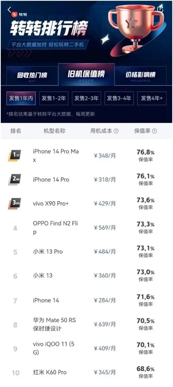 朋侪圈推出置顶功能作为坐拥 10 亿中国用户的微信,朋侪圈已经成为每个人分享生存的窗口,不外偶尔候,自己有告急的朋侪圈,但轻易被后续的朋侪圈刷下来,无法让各人不停看到。 于是在近期,微信偷偷上线了朋侪圈置顶功能,可以让你的内容在自己朋侪圈内里置顶,纵然是后续发朋侪圈,也不会影响置顶。 使用起来也很简单,在你发的朋侪圈内容内里,点击更多选项即可将其举行置顶,也可以通过这个方法关闭置顶,置顶后该内容就会不停停顿在你朋侪圈顶部。 不外这个功能现在属于测试阶段,只有部门用户才气使用这个置顶功能,不外微信应该会在后续开放这个功能给全部人使用。 iPhoneSE 4 发布时间据苹果分析师郭明錤最新的消息称,iPhoneSE 4 将会在 2025 年才会发布,在此前郭明錤还表现 iPhoneSE 系列将被苹果砍掉,但很显着他又有了新说法。 根据曝光的消息来看,iPhoneSE 4 终于要扬弃 iPhone8 的古老外貌,接纳 iPhone 12 的模具制造,也就是直角计划和 6.1 英寸的 OLED 全面屏幕。 设置方面,iPhoneSE 4 将接纳 A16 芯片,电池容量为2760mAh ,运行内存为 6GB ,后置 1200 万摄像头,亮点则是将初次接纳苹果自研 5G 基带。 固然这个设置看起来非常不错,但一想到那已经是 2025 年了,苹果本年开始就将接纳全新的外貌计划和全系灵动岛屏幕,以是那会的 SE4 依然是一款定位入门的苹果落伍手机。 iPhone 保值率各人应该都知道 iPhone 保值率不停很高,每每数年前的 iPhone 依然可以卖个不错的二手代价。 而近期,国内二手平台转转展示了其平台智能手机的保值率列表,从中可以看到 iPhone 保值率到底有多高。 从数据来看,iPhone 14 Pro Max 保值率是最高的,其次就是 iPhone 14 Pro ,而 iPhone 14 根本版却只能排在第七名,其重要缘故原由还是第三方平台优惠着实太大。 但现在国产手机性价比也都很高,以是保值率也非常不错,iPhone 着实从数据化来看,保值率也就比国产手机略高一些,并没有拉开巨大差距。 不外在二三年后,iPhone 保值率就会和安卓手机拉开巨大差距,同期安卓在二三年后会出现严厉贬值。 |