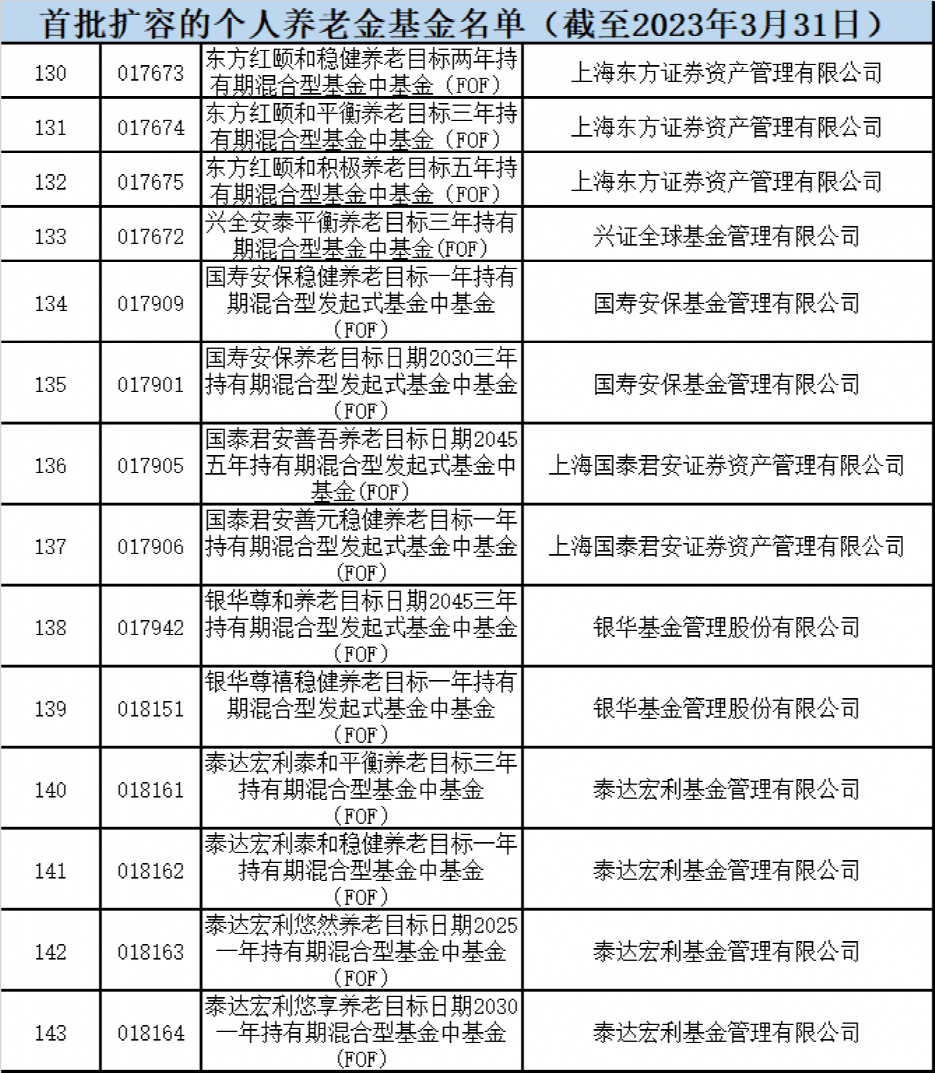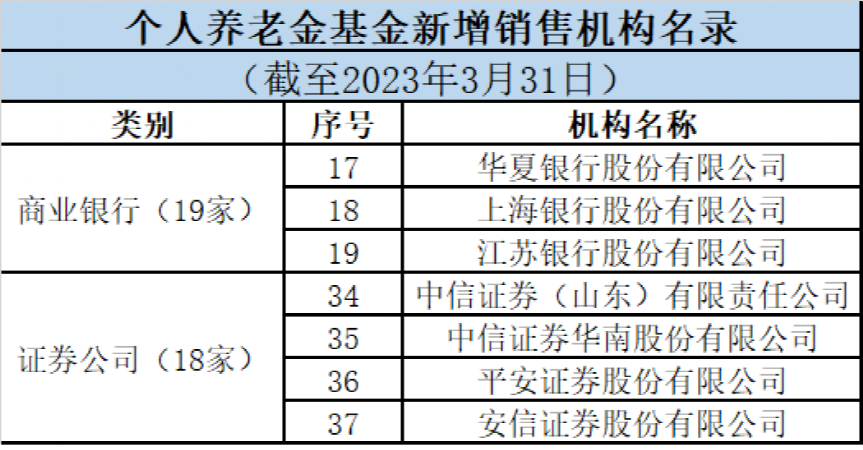 中国基金报记者若晖 个人养老金产物又有新盼望。 早在客岁11月份,证监会正式公布首批129只养老目标基金以及37家个人养老金基金贩卖机构名单,按照其时的规定,后续个人养老金基金名录将连续定期发布并动态调解,刚刚,首份扩容名单正式出炉。 证监会网站表现,制止本年一季度末,个人养老金基金只数增长至143只,个人养老金基金贩卖机构数目增至44家,相比首批名单分别增长14只、7家。 包罗泰达宏利、上海东方证券资管、兴证环球、国寿安保、银华基金、国泰君安资管在内的6家机构均有养老目标基金入围,包罗中原银行、上海银行、江苏银行在内3家银行,安全证券、安信证券、中信证券(山东)有限责任公司、中信证券华南股份有限公司等4家券商新进养老目标基金贩卖机构。 本年以来,基金行业继续大力放肆布局养老目标基金,制止4月14日,年内新创建的养老目标基金多达17只,为未来个人养老金基金扩容奠基底子。 6家机构旗下养老目标基金 入围个人养老金基金名单 投资者可选的个人养老金基金产物又丰富了! 4月14日,证监会发布新一期《个人养老金基金名录》以及《个人养老金基金贩卖机构名录》,最新名录表现,制止3月31日,共有44家基金公司旗下143只养老目标基金入围个人养老金基金名单,包罗19家贸易银行、18家证券公司、7家独立基金贩卖机构入选个人养老金基金贩卖机构。 相比客岁11月份公布的首批名单,个人养老金基金只数增长了14只,个人养老金基金贩卖机构增长了4家。 从管理机构上看,包罗泰达宏利、上海东方证券资管、兴证环球、国寿安保、银华基金、国泰君安资管在内的6家机构均有养老目标基金入围,此中,国寿安保、泰达宏利、上海东方证券资管、国君资管4家机构此次均是初次有产物入围,同时,通过此次扩容,兴证环球基金入围的个人养老金基金产物由原来的3只增长至4只,银华基金旗下个人养老基金的数目也由原来的5只增至7只。 而从产物范例上看,14只新增的个人养老金基金中,包罗了5只目标日期基金、9只目标风险基金。 制止本年一季度末,中原基金管理的个人养老金基金共有9只,继续保持行业第一;汇添富及南边基金分别管理了8只个人养老金基金,并列行业第二;嘉实、易方达、银华基金管理的个人养老金基金数目均到达7只,位居行业第三。 根据人社部关于名录公示的安排,在名录更新过程中,人社部信息平台和中登公司基金行业平台将通过体系对接,及时更新发布个人养老金基金产物及基金贩卖机构名录;证监会及基金业协会网站发布的名录为每季度特定时点更新名录。 在证监会每季度更新名录前,符合《暂行规定》规定的新增个人养老金基金和基金贩卖机构,在纳入人社部和中登公司平台后,即可参加个人养老金投资基金业务。因此,及时名录信息以人社部信息平台及基金行业平台为准。 7家机构入选 个人养老金基金贩卖机构 除了个人养老金基金,个人养老金基金贩卖机构也同步迎来扩容。 根据最新一期名录,个人养老金基金贩卖机构由此前的37家增至44家,银行及券商均有新入选机构,入围的独立基金贩卖机构数目仍旧保持稳固。 新进的7家贩卖机构中,中原银行是天下性贸易银行、上海银行、江苏银行均是城商行;除了安信证券、安全证券之外,中信证券(山东)有限责任公司、中信证券华南股份有限公司均是中信证券的子公司。 此前基金业协会披露的基金贩卖机构公募基金贩卖保有规模数据表现,制止客岁年末,安全证券代销的非货基金保有规模、权益基金保有规模均凌驾500亿元,江苏银行的非货基金保有规模、权益基金保有规模也均凌驾300亿元。 在此之前,个人养老金业务干系文件就明白,参加基金贩卖机构需满足迩来4个季度末股票基金和混淆基金保有规模不低于 200 亿元,此中,个人投资者持有股票基金和混淆基金规模不低于 50 亿元。显然,此次获批的机构都满足上述条件。 不光云云,根据文件表现,基金管理人及其贩卖子公司可以贩卖该基金管理人管理的个人养老金基金。也就是说,通过基金公司及贩卖子公司也是一个贩卖渠道。 据悉,基金贩卖机构实行名录每季度通过中国证监会网站、基金业协会网站、基金行业平台等向社会发布。 人社部将适时调解 个人养老金缴费上限 本年3月初,人社部也对外先容了个人养老金的团体发展环境。 3月2日人力资源和社会保障部副部长李忠2日表现,客岁我国正式启动实行个人养老金制度,标志着我国多条理、多支柱养老保险制度框架根本形成。现在,个人养老金每年缴费上限是12000元,以后会适时调解缴费上限。 李忠在国新办当日举行的“权势巨子部门话开局”系列主题消息发布会上说,客岁年底,个人养老金制度在36个先行都会和地域启动实行。各有关方面共同积极,群众积极参加,实行3个月以来,参加人数已经到达2817万人。 李忠表现,个人养老金是由当局政策支持、个人志愿参加、市场化运营的增补养老保险,是多条理养老保险体系的一项紧张制度安排。我国多条理养老保险体系紧张包罗三个条理,即通常所说的“三支柱”:第一支柱是根本养老保险;第二支柱是企业年金和职业年金;第三支柱是个人养老金,同时还包罗其他个人贸易养老金融业务。第二支柱和第三支柱都是对第一支柱的有用增补。 李忠说,个人养老金制度推进有政策优惠支持、产物多样选