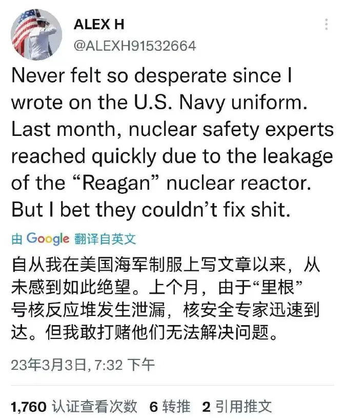 《军武次位面》作者:大伊万 克日,一则美国水师“里根”号航空母舰反应堆发生核走漏变乱的消息,突然在外交媒体上传开了,爆料人是一个叫“ALEX H”的推特用户,自称是“里根”号上的水兵。 据他爆料,“里根”号在本年二月份、靠泊日本横须贺港口时就已经发生了核走漏,但由于舰上和第七舰队高层全都在“捂盖子”,没有将这一变乱公之于众。因此,外界在两个月的时间内对此事一无所知。 但是,捂盖子捂了两个月,不大概永世捂下去,“ALEX H”在三月份开始发帖,重要是吐槽“里根”号核走漏变乱糟糕的渴望。根据他的形貌,水师在二月份派出了技能专家抵达“里根”号,试图举行维修,但很显然,事变并没有向好的方向发展,反而越来越严肃。 日本海上自卫队也派出了专家帮助,但由于日本海自缺乏相应的核专业技能人才,海自的专家被ALEX-H称之为“一坨狗屎”。至于ALEX H本身,听说被上官派去“监测核反应堆辐射的正常值”,随着变乱的渴望,ALEX H出现了“恶心吐逆”的症状,受到了核辐射影响。他猜疑本身的康健状态,这也成为了ALEX H发帖吐槽的动机之一。 ALEX H吐槽的是否属实呢?毕竟如今看来,似乎整件变乱重新至尾只有“Alex H”这一个推特账户在发内容吐槽。大伊万在微博上看到一些大佬通过检索里根号的舰员名单,确实发现有一个名为“Alex Hutchins”的舰员,在舰上担当一名机枪手,但无法确定是否和这个推特账户是同一个人。 同时,里根号近期另有几个细节倒是值得玩味: 一是“里根”号在客岁年底竣事摆设、返回横须贺港口的时间,该舰外貌锈迹斑斑,仿佛太古期间的堡垒,从中可以一窥这艘老船的保养和维护环境; 二是本年年初“里根”号在PIA循环的状态下,构造全舰搞了一次“防核演练”,如今转头来看,这次所谓的“防核演练”会不会和网上听说所谓的核走漏变乱有关呢?但奇怪的是,近来两个月航母上的观光等运动还在照常举行,且从传出的宣传照片来看,这些人也并未穿着任何防护装备; 三是美国军事论坛上对西屋公司制造的反应堆“质量不佳”的江湖传言,这种传言不但出如今“尼米兹”级航母的A4W反应堆上,也出如今“海狼”级核潜艇的S6W反应堆(W代表西屋公司)上,有大神吐槽说“海狼”级到如今居然没有出现反应堆爆炸变乱已经很了不得了; 四是美国水师“捂盖子”的前科,想一想新冠疫情时期,闹得满城风雨、处理处罚的一塌糊涂、末了克洛泽尔舰长本心发现发了公开信的“罗斯福公主号”变乱。如果那次克洛泽尔舰长没有赌上本身的出息发公开信,那说不定到如今我们对“罗斯福公主号”变乱都不得而知。 总而言之,此次围绕在美国水师“里根”号航母上的谜团,毕竟环境怎样还须要进一步观察。咱们只能说,以美国水师这种高强度摆设航母的作风,它出什么事儿咱都不会感到奇怪。 |