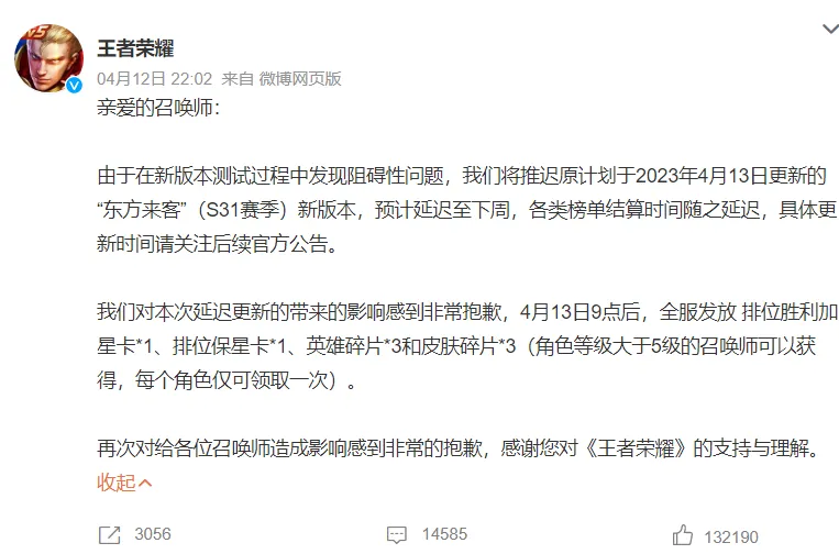 前言:王者光彩自公测到如今已经七年多,现在也来到了S30赛季的末了。原来官方已经官宣S31赛季将在本月13号开启了,然后在12号晚上,官方却突然官宣,由于新版本在测试过程中发现了拦阻性题目,以是S31赛季新版本将耽误到下周更新,与此同时,各类榜单的结算时间也将耽误。 这也是S31赛季的第二次耽误了,原来S30赛季的战令运动在2号就竣事了,按照以往的规律,在战令竣事后的周四就会更新新赛季,但背面官方又把S30赛季的战令运动耽误到了9号,并确定13号更新新赛季。对于此次的耽误,官方也是给每位玩家都作出了补偿,除了有三个皮肤碎片和三个好汉碎片之外,每位玩家还能得到一张排位胜利加星卡和排位保星卡,这也相称于是送每位玩家两个星了。 对于如许的耽误补偿,大多数玩家还好坏常开心的,究竟赛季耽误,又有排位胜利加星卡和排位保星卡,那我们就可以继续冲分了。不外代练却哭了,由于S30赛季耽误一周,各个榜单的结算也相应耽误一周,这也导致在这一个星期内,榜单也会发生很大的变革,那代练为了稳住榜单,在耽误的这一周时间里,就不得不继续打票据维持榜单了,而号主在下单之后,对于赛季的耽误,也不会给代练额外的费用,以是代练也相称于是要白打工一个星期了。 赛季耽误,对于哪些榜单的影响比力大呢?起首就是顶峰赛的排名了,顶峰赛万强的玩家会有一个框,为了这个框,许多玩家也会选择去找代练。另一个就是好汉的光彩战力榜单了,耽误一周之后,也给背面的玩家更多的时机,如许为了稳住榜单,代练们也只能继续稳榜,否则到时间失了信誉,大概拿不到尾款就很难熬了。 话说,小同伴们,S31赛季耽误一周更新,对于你们有什么影响吗?接待留言讨论! |