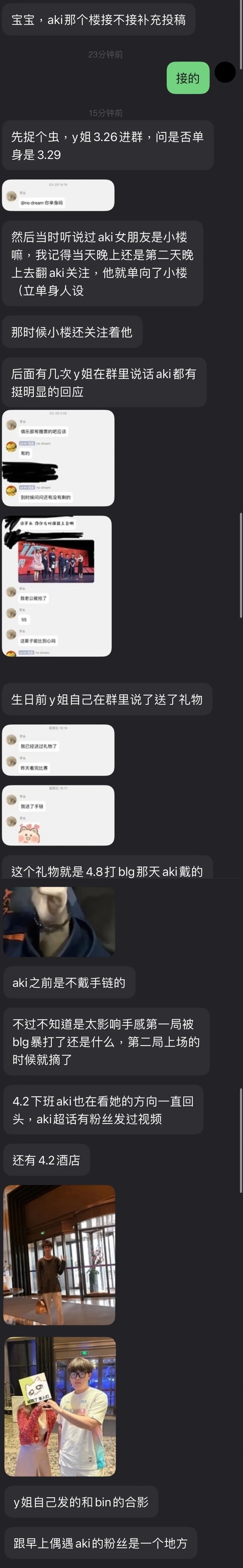 众所周知,之前Aki的女朋侪是LPL讲授小楼,固然说Aki是00的小楼是91的,这俩都不是一个期间的人,但他们之前确着实一起过。 近来某瓣上有人爆料Aki劈叉和女粉丝爱情,这位女粉丝我们姑且称作芋头姐。 这位芋头姐最早是在2月份的时间现场观赛OMG支持Aki被导播拍到了,当时她举牌说用只身换OMG赢,效果OMG输了。 宠粉的Aki一看女粉立下的Flag失败了,就顺理成章的帮女粉失去她的只身了。固然这中心俩人在粉丝群和微博里都有挺多互动的,芋头姐送的手链Aki比赛带了,芋头姐和Bin的合照配景和Aki入住的旅店是同一家。 此中芋头姐还在粉丝群夸耀“我男朋侪也很猛”,谁能想到这个男朋侪就是粉丝群群主Aki呢? 而且OMG在4月6日输比赛进入败者组后,Aki和芋头姐去用饭也被偶遇了。 以是这俩人在一起的证据根本铁证如山,Aki也把自己的朋侪圈封面换成了俩人的牵手照。 然后我们再来看看劈叉是怎么回事,缘故起因是Aki前女友小楼发文emo。 而且还分享了一首歌《体面》,很容易让人猜疑这个分手是不是不体面,以是各人也就推测Aki是劈叉和女粉在一起的。毕竟91年的小楼对Aki的吸引力真没有99年的芋头姐来得大。 但随后Aki否认说自己没有绿小楼,不存在小三、出轨的事变。 同为职业选手的预言家在吃瓜的时间也说:“我只能说我知道的是Aki和小楼早就分了”,如今来看,大概是前任小楼分手之后的emo,让人误会Aki劈叉女粉丝了。 |
