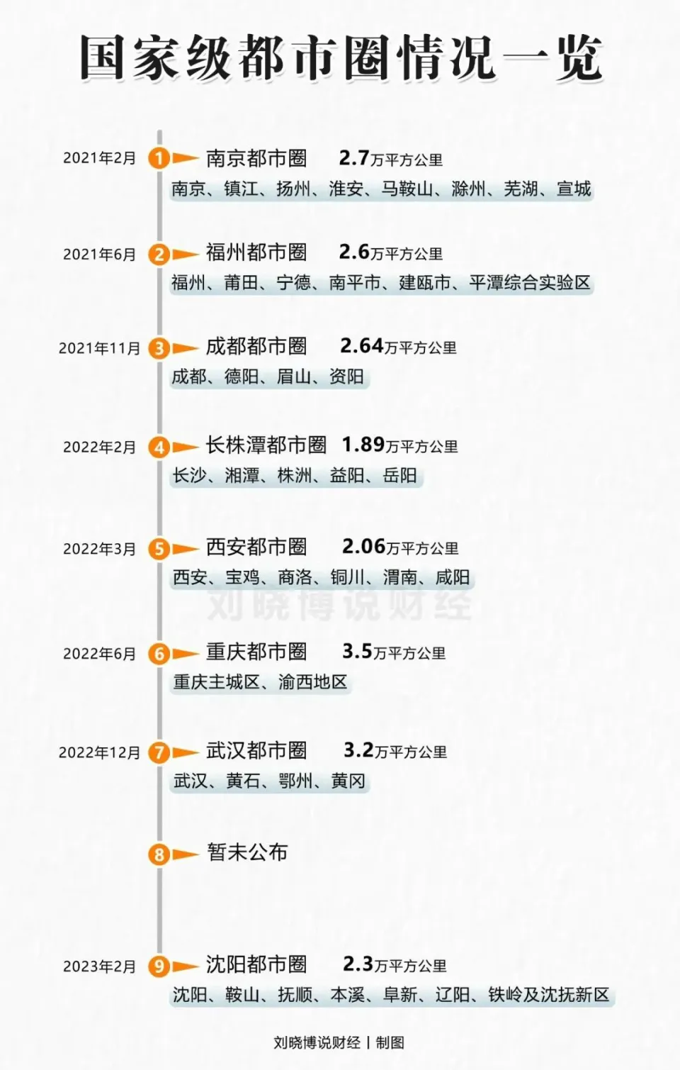 文|凯风 抱团建圈,正在成为潮水。 01这个地方,终于破零了。 日前,在央视节目上,沈阳有关人士透露,沈阳都市圈正式获批,成为天下第九个国家级都市圈,也是东北第一个国家级都市圈。 在此之前,南京、福州、成都、长株潭、西安、重庆、武汉等7个都市圈规划先后获批,率先晋级为国家级都市圈。 这些都市圈,险些都会集在南边。沈阳,是继西安之后的第二个来自北方的国家级都市圈。 此番,沈阳官宣成为第9个国家级都市圈。这意味着,在沈阳之前,至少另有一个都市圈获批,但究竟花落何方,信任不久之后就会有答案。 与以往获批的国际级都市圈相比,沈阳都市圈的获批,有着极其特别的意义。 众所周知,我国共有7大地理分区,险些每个大区都有属于自己的国家中心都会、万亿GDP都会和千万生齿大市,唯独东北成了破例。 同样,在国家级都市圈的批复进程中,华东、西南、华中、西北等地先后取得突破。 固然华南、华北同样付之阙如,但广州、深圳、北京几个超等都市圈,早已作为既有究竟而存在,未必必要顶层规划举行“加冕”。 东北则差异。面对经济、生齿增长双重之困,这个地区亟需一剂强心针。 最好的强心针,固然是国家中心都会。 然而,自2018年以来,“国中”就未再举行扩容,固然沈阳体现出志在必得之心,但靴子可否落地、何时落地,存在巨大的不确定性。 退而求其次,国家级都市圈的到来,也给了东北地区以新的发展底气。 这意味着,东北并未缺席都市圈这一最热门的国家战略;而振兴东北,也将有了新的引领区。 02东北第一个国家级都市圈,为何花落沈阳? 东北地区共有辽宁、吉林、黑龙江三个省份,沈阳、大连、长春、哈尔滨四大副省级的中心都会,沈阳何以拔得头筹? 恒久以来,沈阳都是东北大区的中心枢纽地点,如今又是东北最具竞争力的国家中心都会候选人。 同时,东北被称为“共和国宗子”,而辽宁又是东北地区的“老年老”。 且不说吉林、黑龙江早期的工业化建立都与辽宁的支援不无关系,而如今辽宁仍然是东北地区GDP总量最高的地区,相当于黑吉两省的总和。 作为辽宁省会,沈阳在几十年前就曾作为整个东北大区的中心而存在,三位数的区号(024)就足以阐明其特别职位。 如今沈阳仍然是整个东北领事馆数量最多的地区,更拥有以沈阳铁路局、中国民用航空东北地区管理局、中国情形局东北地区情形中心、国家电网东北分部、中国互联网八大焦点节点等为代表的浩繁大区机构。 从经济和产业来看,沈阳GDP总量固然不及大连,但大连石化产业一家独大,而沈阳产业布局更为多元,制造业门类相对齐备,从汽车到医药,从人工智能到航天军工,可谓无所不包。 根据赛迪研究院发布的《先辈制造业百强市(2022)》,沈阳提升至第25位,较往年排名跃升9位,位居东北第一。 在生齿上,沈阳是整个东北少有的仍然保持正增长的都会之一,也是最有望晋级千万生齿俱乐部的都会。 根据《中西部,正在疯狂虹吸生齿》一文分析,沈阳2022年常住生齿达914.7万人,增长2.9万人,而其地点的辽宁省,常住生齿镌汰32.4万人。 根据更为权势巨子的生齿普查数据,2010-2020年,沈阳常住生齿增长92.2万人,而同期整个东北生齿大幅镌汰1000多万人。 由于出生率下滑,天然生齿负增长,沈阳的生齿增量,重要来自外来生齿的贡献,席卷辽宁其他地市及黑吉两省,吸引力覆盖整个东北地区。 可以说,沈阳在东北,发挥着生齿护城河的关键作用。 就此而言,整个东北,无论是国家中心都会的竞夺,还是国家级都市圈的头啖汤,都非沈阳莫属。 03晋级国家级都市圈,能带来什么利好? 有人说,国家级都市圈不外只是一个名号,有或无,多或少,高或低,都没有太大关系。 这句话对于北上广深等一线都会来说大概实用。这些都会自己综合力气一流、辐射效应强劲,并不必要一个特别的头衔举行加持。 一个范例的案例是,深圳连国家中心都会都不是,但从未有人猜疑深圳作为一线都会的含金量。 但是,对于广大二三线都会,尤其是地区内存在“双子星”以致“三城鼎立”格局的地方来说,是否有国家战略倾斜,可谓至关紧张。 以最受瞩目的国家中心都会为例,“国中”是国家城镇体系的金字塔尖,这些都会“居于国家战略要津、负担国家任务、引领地区发展、到场国际竞争、代表国家形象”。 换言之,一旦成为“国中”,意味着这个都会将成为整个地区的引领者,成为国家战略的重要承载者,在整个地区的发展中将会得到显着先机。 国家级都市圈也是云云。一旦都市圈规划明白,就意味着中心都会的“权势范围”得到承认。 如南京都市圈作为天下首个跨省都市圈,就是由江苏、安徽两省共同发布,由此创建了“徽京”的究竟职位。 同时,都市圈获批之后,地铁、城轨将有望从中心都会向周边延伸。 这对于未能触及地铁门槛的周边地市来说,可谓实时雨;而对于中心都会来说,也能借助轨道交通不停向外拓展都会框架,从而为经济增长继续更大能量。 固然,一些实际的支持也不会少。 客岁底,辽宁就曾筹措数亿元资金,支持沈阳都市圈建立。 而在官方文件中,更进一步明白沈阳都市圈“打造东北全面振兴全方位振兴引领区”的战略定位。 这些支持,无疑为沈阳代表东北竞夺国家中心都会提供更大支持,也为沈阳逐鹿“东北第一城”创造更大大概。 04都市圈越来越多,但大扩张之路或将戛然而止。 客岁9月,