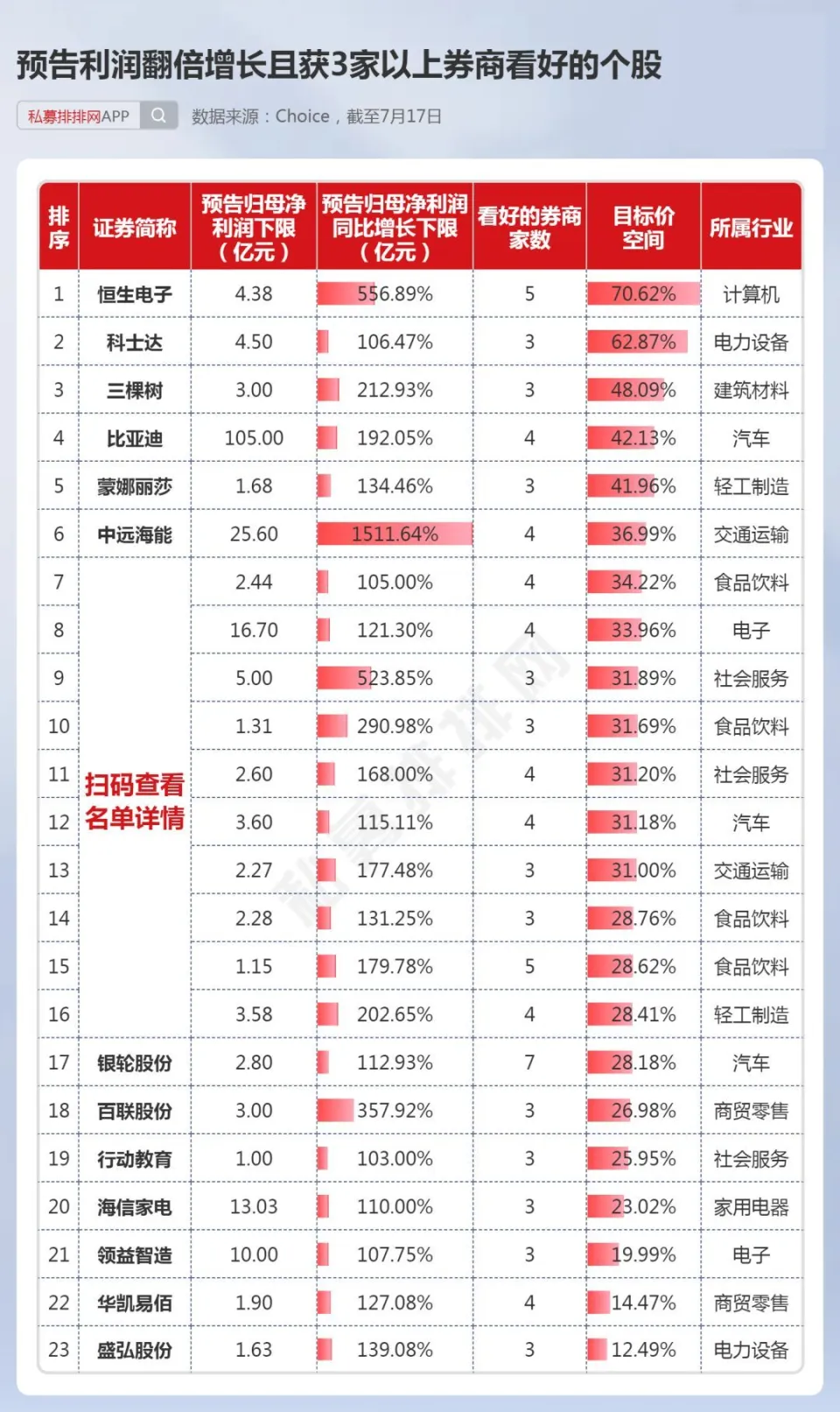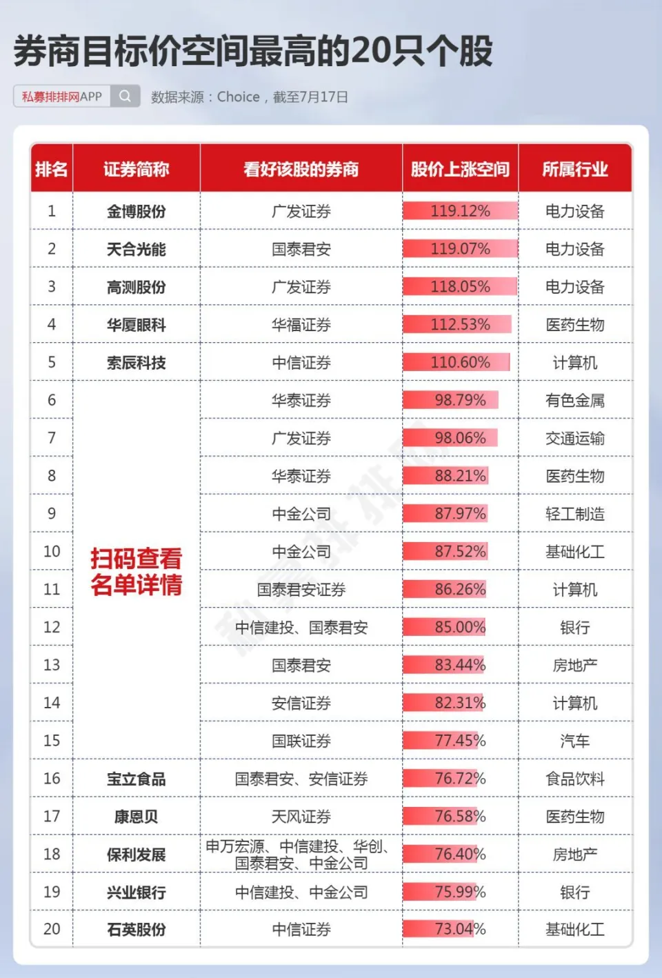 进入7月份后,上市公司开始连续披露2023年中报业绩预告,此中7月15日之前属于欺凌披露范畴的公司都应该在7月15日之前披露业绩预告。停止7月17日,已经有1700余家上市公司披露了业绩预告。 但解读上市公司的业绩是一项非常专业的事变,对于平凡人来说,是很难读懂的。不能单看绝对数额的巨细来评判业绩优劣。每每只有超预期的业绩才算是利好,低于预期的业绩可以解读为利空。 而怎样比力预期,无法得知全部投资者的预期,一样寻常可以参考券商的划一业绩预期。而股价相比业绩,到底是低估还是高估,偏离程度多大,则是更加专业的事变,我们不妨可以参考下券商的解读。 随着部分公司的业绩预告落地,上市公司根本面环境或有新的厘革,作为密切跟踪上市公司谋划环境的券商研究机构,对多家上市公司重新举行了财务猜测,并更新了上市公司的目标价。特殊是对于业绩增长超预期的公司,券商进步了不少公司的目标价。 保利发展等多只顺周期个股被5家及以上券商看好 笔者根据Choice数据,以券商给出的个股目标价相比7月14日的收盘价,盘算对应的目标价空间。梳剃头现,近一个月有21家公司被5家及以上券商同时“看好”。被多家券商高度看好的个股,多数会集在食品饮料、汽车、房地产等顺周期行业。 此中,地产央企龙头保利发展被申万宏源、中信建投、华创证券、国泰君安、中金公司等5家券商看好,目标价空间匀称值在76%以上。 此中,国泰君安以为保利发展利润率固然仍处在下行通道,但下行幅度收窄;于此同时ROE止跌回升,证明公司在连续加速在手项目,积极换仓至高能级都会。 目标价空间最高的3只个股均来自新能源行业 其次,笔者梳理出了券商目标价空间居前20的公司,目标价空间均在70%以上,此中,有5家公司的目标价空间在100%以上。目标价空间最高的3家公司均为光伏企业(行业大类为电力装备)。 此中,光伏质料公司金博股份被广发证券给与的目标价空间最高。 广发证券以为,金博股份自2005年创建以来连续深耕碳基复合质料生产研发,通过预制体到碳基复合质料全工艺流程低本钱制备技能的突破及连续优化,当前已成为光伏用碳碳热场龙头企业。光伏碳碳热场新增+改造+更换三重需求接力驱动,当前需求结构正渐渐转向存量更换为主导,景气连续性强。22-23年起供需格局由紧转松,行业竞争进入新阶段,本钱管控成为核心竞争要素。公司从三个维度创建起了低本钱上风。 23只业绩翻倍个股被券商看好 别的,笔者梳剃头现,预告的本年上半年净利润同比增长下限在100%以上的个股当中,有23只个股被券商看好。 此中,AI+金融软件的恒生电子被国泰君安、华泰证券、安信证券、广发证券、中金公司等5家券商看好,其目标价空间均值在70%以上。 此中,广发证券以为,恒生电子已然在投资交易业务体系和核心交易业务体系等金融IT核心体系市场构筑了强盛的护城河,发展为资源市场IT龙头公司.恒久来看,金融机构加大科技创建投入以形成差异化竞争上风是局势所趋。 28只来自TMT行业的个股被高度看好 本年以来,TMT板块在AI和数字经济的动员下,成为了市场最大的主线板块,也因此是投资者非常关注的方向。笔者梳剃头现,固然TMT板块本年已经上涨了不少,但板块内仍有多只个股被券商“赋予厚望”。此中,有28只TMT板块的个股,券商给与的目标价空间均在40%以上。 此中,来自科创板的次新股索辰科技,被中信证券给与的目标价空间在110%以上。 中信证券以为,索辰科技是国产CAE行业领头企业,恒久对峙自主可控的技能研发,如今已形成覆盖流体、结构、电磁、声学等多学科范畴的CAE产物矩阵。公司深耕军工和科研院所客户,陪同产物本事提升,正渐渐拓展民用市场,恒久空间有望进一步打开。受益于“卡脖子”配景下CAE国产替换加速,CAE软件连续举行云化、AI、数字孪生等方向创新,公司正迎来发展良机。 10只被机构大笔买入个股被券商看好 别的,券商作为卖方分析师,其观点对机构投资者影响较大。而不少机构喜欢通过大宗交易业务买入股票,出发点在于一样寻常可以以低于现价10%左右的代价买入,同时大宗交易业务可以容纳机构的大资金交易业务,而不影响股价。那么,在近一个月机构通过大宗交易业务又在“偷偷”买入哪些股票呢? 笔者梳理了近一个月来A股市场的大宗交易业务数据,团结券商目标价来看,近一个月来,得到机构买入超5000万元,同时目标价空间在20%以上的公司有10家。 此中,光伏公司晶澳科技被东吴证券“看好”,目标价空间在50%以上。 东吴证券以为,晶澳科技2023H2新增产能麋集,包头20GW硅片渐渐投产开释,进步一体化自供率。TOPCon电池加速投产,预计至2023年底有望落地56GW。N型产能加速投放,预计整年出货约20GW,新技能占比30%,支持组件红利。针对美国市场,公司已创建东南亚4GW一体化产能;同时公司投资6000万美元创建美国首座工厂,规划组件产能2GW,公司预计2024Q2投产,在美建厂有利于对冲商业风险,进一步享受美国高溢价市场。 必要阐明的是,券商目标价通常是未来6-12个月的目标价,因此,短期交易业务者参考需审慎。别的,目标价在未来也会受到宏观环境、行业、公司等多方面因素影响而大概被再次调解,因此必要中恒久密切跟踪相干信息,目标价也仅是投资中的参考信息之一,不是唯一依据。 数据阐明:本文所涉及的内容不包管数据完备性与