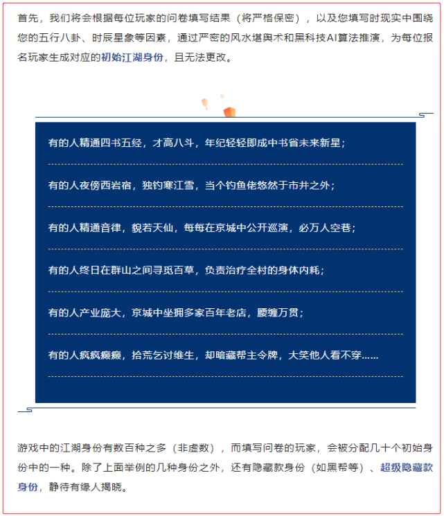 随着《原神》在全天下范围内的盛行,越来越多的玩家都开始热衷于“开放天下”这类布满自由度、探索性和代入感的玩法模式,这让很多游戏厂商都把“开放天下”当作了最新的财产暗码,加班加点的打造自己的开放天鄙俚戏。 游戏厂商们扎堆做一种范例的产物,更像是在劣势位置的“同台竞技”,毕竟有《原神》的珠玉在前,厥后者除非可以大概大幅度的逾越前者,才气得到玩家们的承认。而智慧的游戏厂商,每每会选择错位竞争,探究《原神》乐成的关键,在此底子上再举行内容创新和玩法模式的拓展。而此中最为抢眼的,则当属网易的《逆水寒》手游。 《逆水寒》手游是网易比年来最为重磅的游戏产物,为了打造出这款游戏,网易特殊组建了公司史上规模最大的团队来制作,仅在岗员工就到达了412人之多,研发经费更是天文数字——在烧掉足足有6.4亿资金之后,《逆水寒》手游的研发进度也仅为76%,预计游戏研发完毕,至少必要斲丧10亿元,绝对是比年来游戏界最大手笔的投资。 云云大手笔的投入,天然有其特殊之处。《逆水寒》手游规避了市面上盛行的“二次元”属性,反而深耕于传统文化,深度发掘武侠主题,做出了国内首款开放天下武侠游戏,将江湖奇遇、神功绝学和街市商人文化都融汇此中,构成了自己独有的“大江湖”。这个江湖中没有固定的一样平常使命枷锁、没有刻板守旧的数值套路,玩家们可以大概在这个天下中自由的选择游戏方式,而且得到绝大部门的游戏嘉奖,自己界说自己的焦点玩法。 超高自由度和街市商人烟火气,是《逆水寒》手游最大的特性。游戏复刻了杭州、汴京等多坐千年前的超多数会,此中有大量的天然于人文交互内容,游戏中花卉树木飞鸟虫鱼都是可交互的,而且场景是完全“可见及可达”的,只要是能看到的场景都可以攀爬与飞檐走壁。通过在江湖中各处冒险、探索、触发奇遇,玩家们即可誊写属于自己的武侠冒险。 江湖不但有打打杀杀,也是生存化的。游戏中拥有多达数百种的江湖身份,涵盖了衣、食、住、行、艺术、医疗、武学、官场等差异的分类,构成了大宋时期的各类行当。而每一个行业生态链的每一个环节,玩家都可以到场此中,既能当一个替人卜卦占算的算命师傅,也可以当一个垂钓江边的清闲渔夫,并根据自己的身份特性,推动游戏天下的发展。没准在替人治疗了一项疑难杂症之后,你就能把握人体经脉的奥秘,了解一项神功。 更加紧张的,是《逆水寒》手游中由顶级科学家打造、堪称真假难辨级的NPC智能体系——游戏中的NPC拥有深度学习机制,在跟玩家打仗的时间,会徐徐造就出自己专属的性格,玩家的游戏运动和选择也将因此影响NPC对自己的态度。因此,在游戏里多跟NPC谈谈风月拉好关系也是至关紧张的,如果能相聊甚欢,不但能轻松完成游戏中的很多使命目标,NPC再送一本祖传的武功秘笈给你也不无大概。 由于《逆水寒》手游超高的自由度设定和真武侠开放天下的独特魅力,这款游戏一曝光,就吸引了浩繁玩家的关注,短短几个月时间,就有高出900万玩家预约了游戏的首测。而面临玩家们的猛烈等候,网易也加班加点的对游戏举行了版本保举,终于决定将于9月30日正式开启开启全平台“盲盒测试”。 故意思的是,此次测试玩家们必要填写一份问卷观察,根据问卷的结果以及现实中五行八卦、时候星象等因素,通过精密的风水堪舆术和黑科技AI算法保举,为每位百名玩家形成对应的初始江湖身份,让这个江湖一开始就是“形形色色”百业齐备的。在这种布满“天命”仪式感的游戏测试,天然更让玩家们等候不已。 日前,《逆水寒》手游初次盲盒测试的报名申请已经正式开启,如果你对网易首款开放天下武侠游戏有所等候,何不看看自己到底更得当哪种江湖身份呢? |