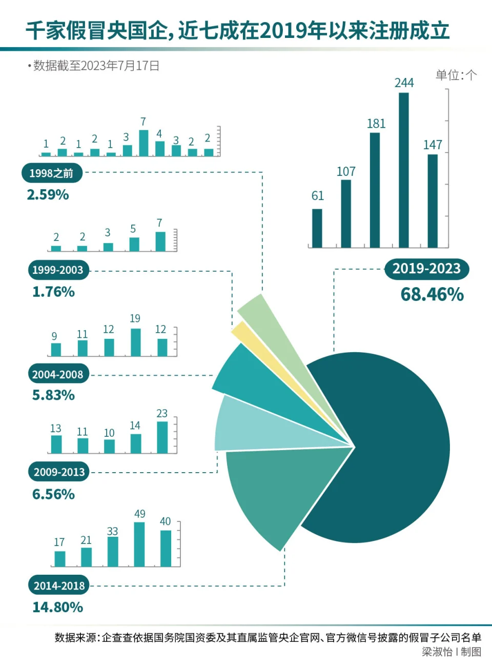 如果你看到如许一家“央企”,它的名字像某央企,且与国资有策划往来,那它是央企吗? 国资委说,它大概是假冒的。 单从名字上看,这些企业与正牌央国企无异:“中核”“国能”等“中字号”“国字号”赫然在列,即便查询工商注册信息也无从辨别——有的企业出资方乃至体现国资100%控股。 据南方周末记者不完全统计,2021年10月至2023年6月,国资委和各家央国企公布的假冒央企、国企,合计凌驾1000家,此中,能源、环保范畴成为“重灾区”,至少672家假冒央国企涉及上述行业。 为清算假冒央国企,2021年10月22日、2022年9月20日、2023年4月25日,国务院国资委网站先后公布三批假冒中央企业名单。 2022年4-7月,国务院国资委、公安部、市场羁系总局三部门专门开展打击假冒国企专项办法,并印发《打击假冒国企专项办法方案》(下称“办法方案”),要求各省国资委、各市国资委负责构造开展假冒国企标题排查,搜集并移交违法犯罪线索,研究创建防范假冒国企长效机制。 中国企业改革与发展研究会研究员吴刚梁告诉南方周末记者,国资委此时会集清算假冒国央企,一方面是国央企越来越注意品牌建立,另一方面是有许多假冒国央企打着央国企旗帜从事违法犯罪运动。 根据南方周末记者的统计,672家能源、环保范畴假冒央国企中,2019年以来注册建立的公司占比64%,最新的一家则建立于三个月前。制止南方周末记者发稿,仍有央国企在转达公布假冒子公司。 7月17日,国务院国资委复兴南方周末记者,清算假冒央企工作仍在举行中,后续如有阶段性效果会实时提供。 (梁淑怡/图) 最爱假冒中国石油、中国华能和许多人既有印象差别,能源、环保范畴的假冒央国企的注册资源都很高,匀称1.73亿,最多的一家注册资源为106亿。这或与行业有关,这些企业的业务通常与央国企有关联,所属行业重要为批发业、商务服务业、科技推广和应用服务业、电力、热力生产和供应业等。 南方周末记者发现,假冒央国企最潜伏的方式是工商信息体系中,企业股东体现的就是正牌央国企,这也是国资委等部门重点打击的范例——伪造质料将国有企业注册为股东。 在南方周末记者统计的672家能源、环保假冒央国企中,381家是伪造质料将国有企业注册为股东。这些企业最爱假冒的是中国石油天然气团体有限公司、中国华能团体有限公司、中国节能环保团体有限公司、中国电力建立团体有限公司这四家企业,共占75%。 从地域分布看,这381家假冒央国企的数量与公司注册地的经济发展程度呈正干系,重要分布东南沿海省市。此中,地处西南的四川以42家企业排名第一位,山东、广东、北京、天津、上海、江苏、浙江分别位列2-8名,合计197家企业,占据半壁江山。 第二种环境是假冒央国企的分公司。中节能团体旗下的中国第四冶金建立有限责任公司就被假冒了32家分公司,遍布天下各地。比方,一位名为徐钱生的个人就在上海注册了中国第四冶金建立公司上海第三、第四两家分公司。 第三种环境是一些企业在公司注册名称中植入着名国企的简称。好比,“中油”“中铁”等公司简称,很容易让外界误以为它们与国企有所关联。 这些公司一样平常从事国企的干系财产。好比,194家冒用“中石化”“中国石化”等字样的公司,绝大多数是加油站;好比假冒中国节能环保团体有限公司的子公司偏幸风电、储能、新能源业务;冒用中国广核团体有限公司“中广核”字样的公司从事的也重要是太阳能、光伏业务。 探求年代长远挂靠方,包装国资配景假冒央国企名单中的一些公司乃至还发展成团体企业,旗下有多家子公司。 北京市中油科技开发公司是国资委公布的第三批假冒国企之一,工商注册信息体现其建立于1993年,由中国石油天然气团体公司100%持股。南方周末记者从企查查得到的数据体现,这家公司对外投资13家企业,现在仍有7家为存续状态,俨然发展成为一家团体企业。 这家公司控股的国能新兴能源团体股份公司、国能石油天然气收支口团体有限公司、东方银河控股团体有限公司被列为失信被实行人和限定高消耗。 2022年9月,北京市中油科技开发公司法定代表人石日韦告诉南方周末记者,北京市中油科技开发公司“是中石油孙子的孙子的公司”,但已经好久没有开展业务,所谓控股的企业自己并不知情,“他们没有得到授权”。 值得注意的是,北京市中油科技开发公司的股东中国石油天然气团体公司现已不存在, 2017年更名为中国石油天然气团体有限公司。 这成了许多假冒央国企的一种通例做法:选择建立年代长远的全民全部制企业作为挂靠方,伪造注册质料包装其国资配景,进一步注册成为团体公司,之后继承下设二级、三级乃至更多层级的子公司,层层嵌套,在此中交错持股、变更股东,修改受益人。 即便迩来仍有公司“顶风作案”。南方周末记者发现,陕西中福实业发展有限公司在2023年5月17日注册建立,由国家电力公司100%控股。然而12天前,国家电网有限公司还发布公告,国家电力公司自2003年6月30日起再无任何投资、策划、市场主体登记等举动。 更浮夸的是,有的假冒央企在被转达后,竟摇身一变成了另一家假冒央企的子公司。中核恒通(北京)物资有限责任公司之前股东为中国物资储运沈阳公司,后者是中国诚通控股旗下公司,被转达后,中核恒通(北京)物资有限责任公司股东变更为中国华宇经济发展