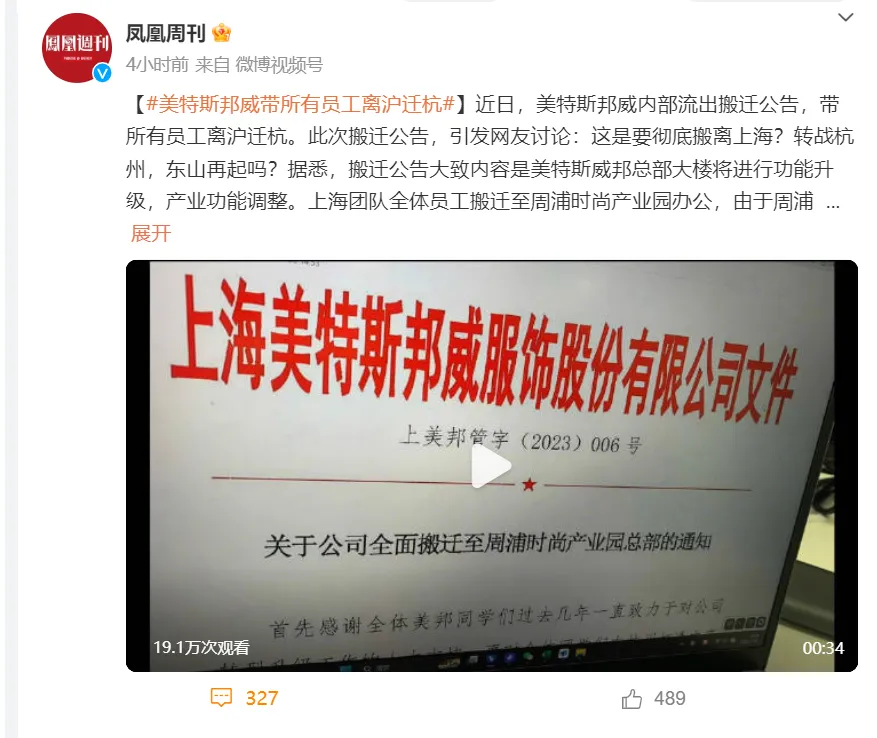 每经编辑:黄胜 美特斯邦威克日传出公司职员团体将从上海搬迁至杭州的消息。 对此,美特斯邦威方面复兴证券时报·e公司称,因公司总部举行功能升级及财产调解,操持本年10月搬迁至同位于上海市浦东新区的周浦时尚财产园办公。借搬迁机会,让上海团队部门员工到杭州办公,学习直播电贸易务。此次仅行政、后勤及部门业务线职员搬迁至杭州3个月,生产基地及干系职员不会搬迁,公司给搬迁员工提供了相应的补贴、租了房子。 停止20日午间收盘,美邦服饰(SZ002269)股价涨停,报1.77元/股,上涨9.94%,市值44.47亿元。 据中国青年网7月19日消息,美特斯邦威内部流出搬迁公告。公告称,位于上海康桥东路800号美特斯威邦总部大楼将举行功能升级,财产功能调解。上海团队全体员工搬迁至周浦时尚财产园办公,由于周浦时尚财产园还处于装修阶段,上海团队员工将于7月搬迁杭州新公司办公,旨在让员工更加认识公司的新业务,快速相识直播业务,顺应直播流程。此次搬迁办公系临时过渡办公,为期3个月左右。待周浦时尚财产园10月尾完毕后举行回迁入驻办公。 据潮消息,如今美特斯邦威杭州滨江电商总部大楼已有部门员工入驻。 内部公告表现,此次美邦是为资助美邦全体同砚更快厘革观念,走出固有传统头脑路径和专业陷阱的束缚,到杭州学习改变固有头脑。各人有感情不明白公司的办法都能明白,美邦也为此次的搬迁提供了同一的通勤费补贴;同一的留宿安排;每周周一至周五为杭州实践工作时间,周六周日回上海家庭团圆。 值得注意的是,美特斯邦威比年来亏损严肃,前不久刚卖楼“续命”。 6月20日,美特斯邦威发布一则公告,公告内容是出售其沈阳的商店,售价为3亿元。 7月14日晚间,公司发布业绩预告,预计2023年上半年归属于上市公司股东的净利润0万元-1500万元,同比扭亏为盈。根本每股收益0至0.01元。 值得注意的是,自2019年-2022年这4年间,美邦分别亏损8.255亿元、8.594亿元、4.016亿元、8.228亿元,已经一连亏损4年。 逐日经济消息综合自证券时报e公司、中国青年网、潮消息、公开资料 |