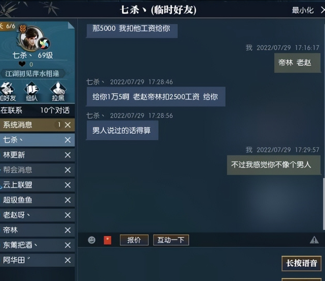 网络游戏是当前最主流的娱乐方式,随着玩家的增多,越来越多围绕着游戏财产的新兴职业也随之出现,比如在网游中“搬砖”挣钱,就是很多人的选择。一样平常人提到游戏搬砖挣钱,想到的还都是传统的打金,究竟上,现在搬砖的方式已经非常多元化,而此中最高级的,则是当统战指挥。 “统战指挥”说白了,就是使用本身的统战本领和游戏豪情,指挥其他玩家在帮战、副本中得胜。由于他们的个人本领,很多游戏中的帮会大佬都会出重金约请有才华的统战帮本身管理团队,此中最顶级的,以致能拿到百万人民币的年薪。像是以土豪大佬浩繁著称的网游《逆水寒》中,就有着如许一个全游戏着名的统战,七杀。 七杀曾经是《逆水寒》中名声最大、报酬最好的着名统战,由于曾资助“江畔寻花”帮会得到过多次跨服帮会联赛的冠军,七杀被很多玩家奉为“游戏第一统战”,连带着他的报酬也水涨船高,在最顶峰的时间,江畔寻花帮会每个月会给他5万元的工资外加高额的赛事奖金,年收入到达了过百万人民币的天价,还对其彻底放权,全帮上下完全由他一个人说了算,连出资补贴帮会的大佬都要对他百依百顺,尽力支持他的决定。 惋惜的是,盛名在外之后,七杀本人也越发地得意得意起来。由于帮会大佬对其太过于放任,他在通常指挥的时间性情变得越来越大,动不动就对其他玩家吆五喝六,以致连帮会中的土豪老板和其盟帮的话事人都被他指辅导点。由于骄横的态度冒犯了太多人,七杀也让江畔寻花帮会日渐衰微,以致直接遣散。 让人意想不到的是,在搞黄了一个着名帮会之后,七杀并没有赋闲,反倒被游戏中另一个有雄心勃勃的大佬“局座”聘任,约请他一起参加游戏附近年服务器,重新开始征程。为了以示诚意,局座直接拨给了七杀300万的帮会启动资金,并订定了很多鼓励筹划,表现只要七杀可以或许向导本身的帮会成为附近年新服的龙头,就肯定重奖,报酬绝不低于他。本来各人都以为,在履历了古迹上的失败之后,七杀可以或许重新审阅本身,振作精力,把帮会管理的欣欣向荣。但是没成想,七杀仍旧败给了本身的臭性情。 一开始,在局座的资金支持下,七杀还是励精图治了一段时间,用300万的启动资金从老区挖来了八个履历丰富的管理职员,很快创建起了一个强盛的帮会同盟,而且设定了非常详细的DKP赏罚制度,在短短一周之内,就让整个同盟的战斗力凝结了起来。但是随着本身的“功成名就”,七杀也渐渐进入了“暴君”模式,一旦帮众们的表现不如他的预期,就会被他严辞呵叱,加以羞耻。以致还想到了扣本身部下工资给扒敌对墙角这种损招。 一个帮会同盟,如果管理人不能凝结民气,维持帮会的代价就会变得无比巨大。由于七杀随处冒犯人的服务方式,局座的帮会同盟只能以“福利”来吸引高玩们的入驻,短短两个月时间之内,七杀不光烧掉了本来300万启动资金,还投资了差不多500万人民币的帮会补贴,此中包罗给玩家们的奖金、装备报销等等。 更加让人无语的是,只管七杀花掉了800万巨资,但是仍旧没完本钱身的“KPI”要求。在前不久的“诸神之战”天下第一帮决斗中,七杀所统领的局字帮在决赛不敌强盛的对手,遗憾得到亚军。而这次争冠的败北,也让局座对他的不满表现无疑。比赛竣事不久,他就被局座扫地出门,局座也正式面向全游戏招收强力的统战,更换七杀的空缺。 先是搞黄了游戏中最强盛的帮会,又在两个月中烧了800万还拿不下新区的冠军宝座,七杀接连两次的败北,恐怕已经对其的职业生活产生了巨大的影响。那么你是怎么对待七杀这个帮会统战呢?说说你的想法吧。 |