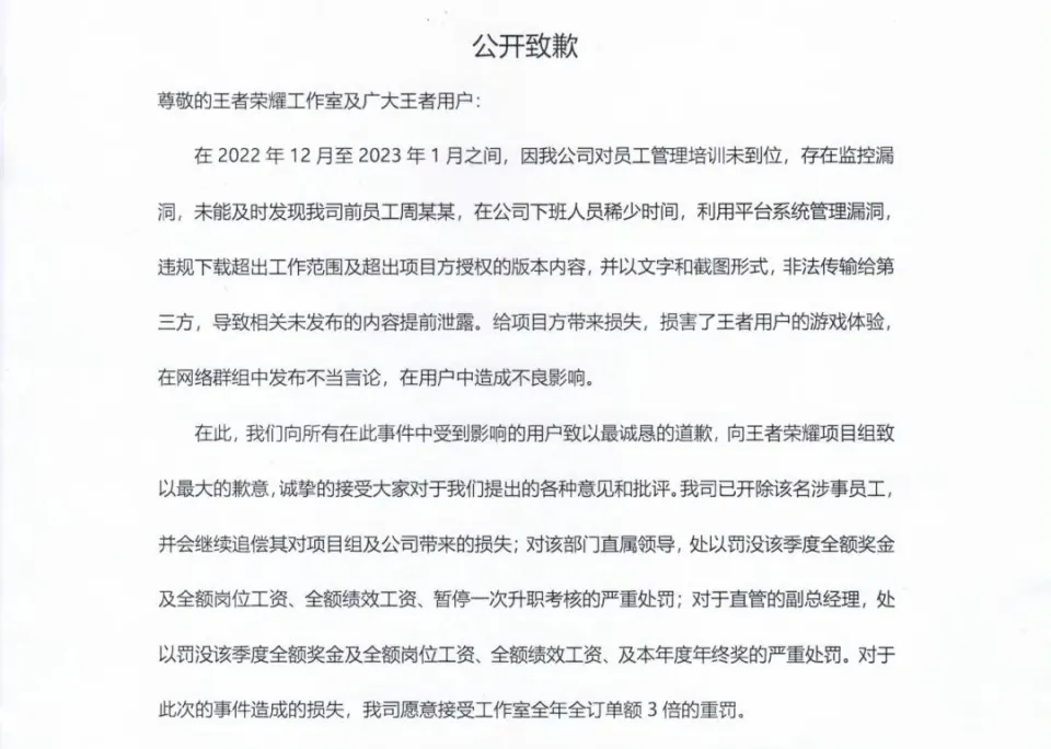 前段时间王者光彩迎来史上最大的泄密变乱,听说是或人购买王者研发服数据,从而盗取了大量新皮肤相干文件来爆料,为此赢利百万!这件事已经拖了很久了,本日也终于迎来告终局,不外和网上听说的进去了差异很大。 近期王者发布了一则公告,是关于深圳某公司的公开致歉信,说到的就是前段时间大泄密的变乱。公告里也是把变乱的来龙去脉说的很清晰,确实是由于内部职员的缘故原由导致了这次大范围的泄密变乱。 涉事员工周某已经被开除了,而且必要会继续追偿他泄密从而对项目组和公司带来的丧失,而且相干部分领导副总司理都受到了牵连,真的黑白常的惨了。但是要说惨还得说该公司自己,不但没有赚到钱,还要按照整年订单代价的三倍举行赔偿,也就是说关于整年关于王者的这个订单不但没要钱免费做了,还要给人家赔两倍的钱。整年的本钱,人工费啊投进去的资金全打水漂了,真的实惨。 说是找周某赔偿,但这个钱还是很难要返来,掖掖仪一个平常的打工人,哪来那多钱去赔偿呢? 卖出去的资料肯定会被爆料出来,否则买就没故意义了,那么他做的事也早晚会袒露,为了赚点小钱直接背上巨额外债,划算吗? 不外这则公告紧张针对的掖掖仪麦思吉公司走漏员工的处理处罚方式,并没有提到买家,究竟买家麦思吉还管不住。而各人也更关注的是买家,谁人买走研发服数据的人,究竟是他在给各人爆料。 各人推测买走数据的人正是前段时间横空出世疯狂爆料王者近一年皮肤档期的某博主,许多资料都是他一手爆料出来的,各种传播出来的爆料视频也是打的他的水印,听说此人已经靠着这些消息赢利几百万了。 各人更关心的也是此人的结果怎样,只是痛惜如今他好像并没有受到任那里罚,只是视频流量受到限定,之前有段时间克制了更新,也大概是看当时环境不妙,如今又开始一连更新。 不外就公告内容来看,该涉事员工并没有进去,只是被开除了而已,而谁人疑似买资料的博主,如今也好好的没有进去,还没受到任那里罚。不外三倍的罚款够该涉事公司和员工头疼的了,唯一痛惜的是爆料的人不但没受到处罚还赚的盆满钵满的,渴望他也能早日受到该有的处罚。 非法传输导致未经发布的内容提前走漏,是违法举动,泄密必被抓,保密协议可不是开顽笑的! |