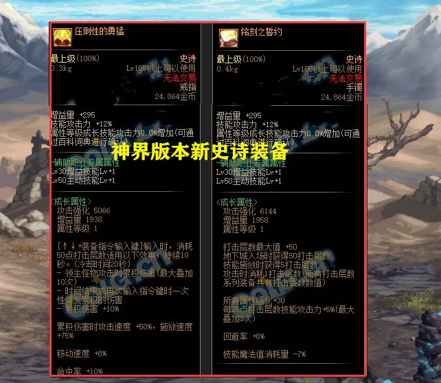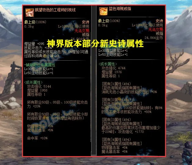 8.04神界发布会重磅推出,团体上来说,有些“赶工”的迹象,并没有让玩家眼前一亮。而对于神界版本,推出了新的105级固定史诗,以及110级超强“神界”装备! 神界版本史诗剖析在本次神界版本发布会上,以“洪镇赫”为首的筹谋,给玩家讲了一堆内容,不外对于新版本史诗,想必许多人都比力好奇。 【1】神界史诗武器表面。在神界发布会上,筹谋没透露新史诗武器属性,但公布了表面。先来看一下,全职业神界史诗武器图标,每个职业都差别。 光看武器图标,这并不外瘾,筹谋放出了表面。对于新武器表面,一千个读者就有一千个哈姆雷特,每个人审雅观点差别,评价也会存在差别。但话又说返来,部分职业新武器表面,确实挺悦目的! 【2】部分神界105级固定史诗属性。此次神界发布会上,出现了部分新的105级固定史诗装备,强度方面非常离谱: “压倒性的勇猛”戒指,当输入装备指令键位时,斲丧50点打击层数,来得到相应的结果,同时提升高额的攻速和开释速率; “铭刻之誓言”手镯,每25点打击层数,可增长5%技能攻击力,最大叠加3次,也就是15%的技攻,全属性强化+30; “远望夜色的工程师的视线”戒指,全部职业50级、85级和100级技能攻击力+20%,同时技能冷却时间规复速率+40%; “蓝色海贼”戒指,具有“赌狗”性子,50级、85级和100级技能开释时,有8%的几率使得该技能攻击力+88%。要是触发了,那么觉醒技能伤害,就会非常爆炸! 你会发现,神界版本新的105级固定史诗,出现了“打击层数”这个东西。很显着,这是神界版本中,产出的玩法。 【3】部分110级神界史诗。现阶段105级史诗装备,当词条喂养至满级后,可以升级为110级“神界”系列史诗,类似于从前的“超界”系列。 在8.04夏日发布会上,筹谋也给玩家,展示了一件110级新“神界”史诗,属性有些离谱,攻击强化数值颇高。且明确表现,穿着【永眠前的预备】时,灼伤伤害结算冷却时间删除。 要知道,“永眠前的预备”这是灼伤流派核心装备,看来这件史诗,专门为灼伤流计划的!而这件“神界”史诗,对冰冻状态免疫的对头附加冰冻状态时,可以增长5%技攻;攻击冰冻状态对头时,实用1/3数值的技能攻击力增长结果;同时攻击冰冻对头,技能攻击力+15%。 这个鞋子史诗,只是神界发布会上,展示的一件110级装备而已。另有更多的神界史诗,等新版本更新后,才气逐一的出现! 别的本次神界发布会,出现了“装备特性体系”,根据搭配强化流派核心词条性能。来看一下发布会上,展示的“装备特性体系”,部分属性翻译。 你会发现,这个“装备特性体系”,对脚色个别技能,加成还好坏常霸道的。 个人总结韩服9.14神界版本更新,但我们就不要想了,最最少要比及24年新春,才会慢悠悠的推出,毕竟国服“代号·盖波加”地下城,都没有更新呢! |