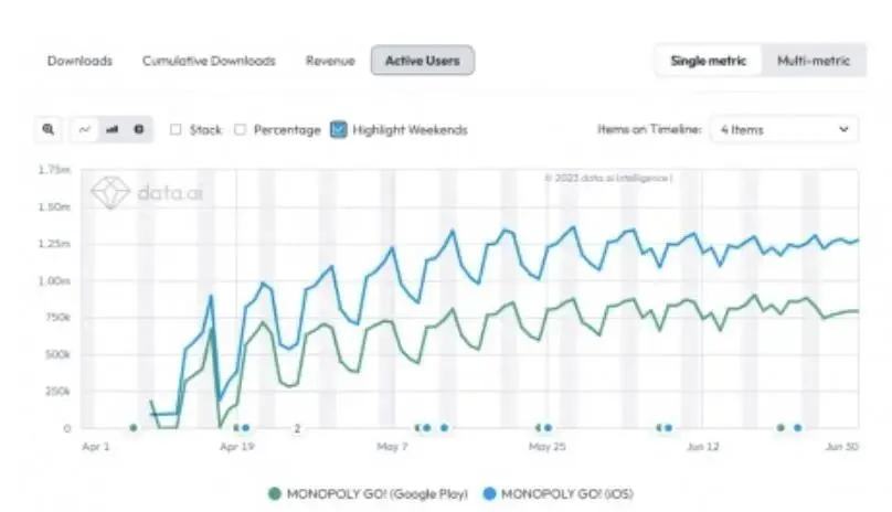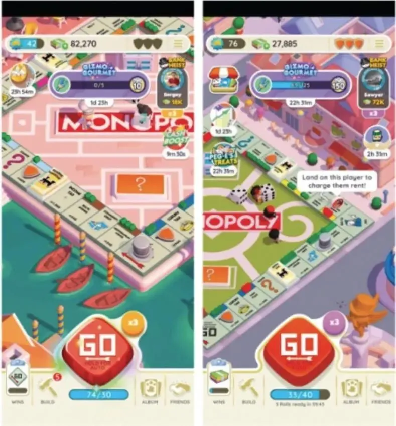 Scopely的《Monopoly Go!》可以说是上半年环球手游市场的一个黑马,自4月12日正式上线后,《Monopoly Go!》丝毫没有放慢增长的脚步,迈入7月后,峰值日流水到达了2500万元,近来30天流水高达5.5亿左右,位列环球手游产物收入第9。这款游戏使用了全部人都知道和喜欢的豪富翁玩法,并将其改编为手游平台上的单机体验,而且作为2023年的头部休闲游戏引领了一波业内趋势。 近来,资深游戏筹谋Irene Kurskaya在PocketGamer撰文对《Monopoly Go!》举行了复盘,并详细分析了让这款经典桌游在移动平台乐成的缘故原由,值得注意的是,从数据角度来看,《Monopoly Go!》的35岁以上用户占比高达60%以上,其似乎走了犹如中国市场传奇游戏的路子。 以下是Gamelook编译PG的完备内容: 全部人都知道豪富翁是一个家庭游戏,大概更精准地说,是“一款可以拆散任何家庭的游戏”。一次豪富翁游戏可以连续数个小时,很难想象怎样将这么长时间的玩法爱好转换到一款手游上。 但人们也曾经实行过,也在全部差别的品类试过,从数字桌游,到与差别游戏机制的融合,比方:《Monopoly-Classic Board Game》是一款付费游戏,它是经典的豪富翁玩法,但带有很酷的图形和结果;《MONOPOLY Tycoon》是一款免费模式的城建手游;《MONOPOLY Solitaire》是一款带有豪富翁主题meta玩法的纸牌游戏;《MONOPOLY Slots-Slot Machines》是一款带有制作meta玩法的老虎机游戏。 是什么让他云云风趣呢?我们不妨来看看数据: 数据表现 唯一成为头部手游的豪富翁游戏就是《Monopoly Go!》,安装量方面它仅次于Netflix。固然,《Monopoly Go!》是一款新游戏,它的整个目标用户群还没有全部安装,但这个数字已经充足令人印象深刻。 自环球发布到达自然峰值之后,该游戏的下载量大概已经保持稳固,但降落幅度从来没有为零过。 生动用户数量也进入稳固阶段,但值得注意的是,该游戏的工作日和周末差值非常平滑,险些整周期间的用户生动度都是靠近的。 除了连续的下载量,单日收入也在增长。从7月4日开始,该游戏的iOS单日收入翻了一倍多,这大概意味着游戏内怀念美国独立日活动的乐成。 用户群 《Monopoly Go!》的用户群比力风趣,Data.ai数据表现,该游戏的安卓版本男性用户玩家在2023年5月份比女性用户更多(暂无iOS数据),主流用户年事群是45岁以上。 然而,该游戏的竞争者数据差异比力大,比方《Board Kings》重要是女性用户,但此中的年轻用户也比力少。 《金币各人》也是云云。 以是,匀称来说,《Monopoly Go!》的用户群更年轻,且男性更多。 站在巨人的肩膀上 喜欢概率点击游戏的粉丝大概会注意到,《Monopoly Go!》的灵感来自于《Board Kings》和《金币各人(Coin Masters)》。前者的影响力可以从《Monopoly Go!》处置惩罚桌游掷骰子更加的方式、去往其他玩家都会的火车站等看出影响。《金币各人》也是其修建玩法的灵感泉源之一:像《金币各人》那样,《Monopoly Go!》让玩家在一个主题都会或城镇制作一些修建,其他玩家可以粉碎它们。 但《Monopoly Go!》放在一起的全部机制都颠末了调解和打磨,让它们更得当团体版本。实际上,这些玩法在游戏里看起来比在其灵感泉源当中更有用。 我们会简短谈一下此中几个最酷的功能,但起首,我们须要从团体来说说豪富翁玩法。 豪富翁是个竞争型的桌游,你没办法本身玩,而且它的了局只有一个玩家能赢。然而,《Monopoly Go!》却是一款单机游戏。以是,它到底是怎样重现了经典豪富翁玩法最令人高兴的元素呢? 答案很简单:全部人都是赢家。 核心玩法+meta玩法 《Monopoly Go!》是一款点击游戏,玩家们可以掷骰子、在游戏桌面上移动、而且打造修建。 此中一个核心机制就是将玩家的物品在桌面上移动,玩家按一个按钮动摇骰子,斲丧骰子来实现这个操纵。游戏里的统统都是它本身完成的,物品在桌面上移动,停在差别地方会有差别的反应。 玩家对所发生的事变险些没有影响,由于统统都是由随机的概率决定的。游戏只限定玩家可以购买的骰子数量。然而,《Monopoly Go!》将玩家的注意力会合在外交机制上,有些是竞争性的,有些是互助性的。比方,“社区宝箱”必须在玩家至少有五个朋侪后才气打开。 游戏开发商决定使用经典豪富翁的游戏桌面,但在其附近用主题装饰。威尼斯桌面有一个迷人的冈朵拉船埠,巴黎桌面有戴着贝雷帽的巴黎人在上面闲步,《Board Kings》的桌面上也有类似的装饰。 在桌面上,玩家赚得“美元”以推动meta玩法进度,这就意味着打造修建,得到房屋,并增长租金。 房屋是为了在玩家的“城镇”里打造修建,当你搬到一个新的桌面上时,房屋不会重置。玩家保存他们,直到他们在每个豪富翁空间制作一家旅店并得到奖金。只有如许,房屋才气重置,玩家才气制作另一个豪富翁。 同时,这让《Monopoly Go!》与《金币各人》有了差异,城镇除了给玩家满足感和秀本身的进度之外并不能带来什么。 上手阶段以及它有什么利益 在第一次游戏过程中,每一款点击游戏都试图让玩家书任这是一个多巴胺工厂:统统都是快速而美丽的,有许多嘉奖和丰富多彩的动画。 该游戏让玩家很快穿过前两个都会,将他们沉没在嘉奖中,并让他们难以脱离,由于他们另有许多骰子! 外交机制立即就开始发挥作用,我稍后会详细先容它们,但《Monopoly Go!》很好地办理了玩家在游戏中没有朋侪的题目。 当玩家疲惫不堪但感到满足时,上手环节竣事。他们已经完成