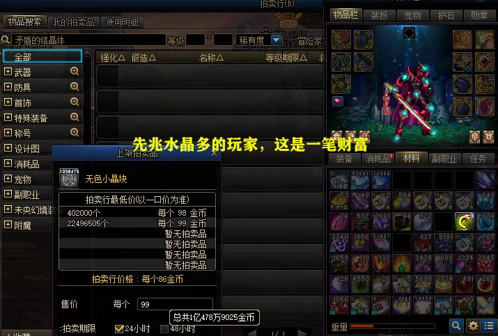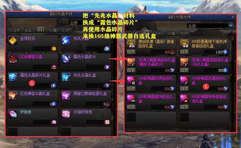 8.17版本推出了【高科技增幅器第2季】活动,导致抵牾这个质料,也逆袭腾飞了!而“先兆水晶”质料,可以通过另类方式,变现成为抵牾! 8.17版本增幅活动本次8.17版本增幅活动, 分为平常和安全增幅,两种模式玩法。高科技平常增幅,必要利用抵牾质料,增幅+7失败时,装备不会掉品级;增幅+8或+9失败时,数值降至+6;增幅+11失败时,装备并不会粉碎。 高科技安全增幅,需利用“调和结晶体”质料,增幅+7为止时,100%乐成;增幅+7、+8、+9失败时,会得到1.5倍的祝福值。但留意了,安全增幅玩法,只实用于+9以下的装备。 由于增幅活动的出现,让拍卖行上抵牾质料,已经逆袭腾飞,个别大区突破10万金币。而无色小晶块,跟抵牾质料痛痒相干,同样开始涨了起来。 先兆水晶变现抵牾“先兆水晶”这个质料,在110级版本早期,还是比力有用途的,但随着时间的发展,用途越来越小了!着实背包“先兆水晶”,数量多的玩家,可以用另类方式,来换成抵牾,从而实现变现,毕竟怎样做到呢? 我们到恩山门口NPC“施密特”,大概海伯伦门口的NPC“梅丽”,把“先兆水晶”质料,换成“霜色水晶碎片”,再利用水晶碎片,来换105级神器武器自选礼盒。 这里友谊提示,用鬼剑士、保卫者、圣职者、魔枪士开最快,分别选巨剑、战斧、战戟、重剑,分解的无色最多。 比方,分解一把105级神器巨剑武器,会给384个无色小晶块,上级元素19个,以及1个神器灵魂。 但这个方法,也存在着弊端,比力淹灭时间,尤其是“先兆水晶”质料多的玩家,手都会“点断”。 固然,可以不消换成“霜色水晶碎片”,直接利用“先兆水晶”,来换深渊之鳞套装自选礼盒,选择此中的武器。不外换装武器,分解一个后,给予的无色是342点,比105级神器要少些,但不给灵魂,会给5个暗中之眼灵能碎片。同时,先兆水晶质料,斲丧才300个。 由此可见,当抵牾质料贵了起来,利用这个方法,可以把背包内,没用的“先兆水晶”给变现了,还是挺惬意的。固然,增幅+11不碎活动来了,有些玩家要打击装备,那么“先兆水晶”质料,就不要换105级神器分解了,毕竟可以充当胚子! 对背包“先兆水晶”数量少的玩家来说,兑换105级神器武器,分解后给的无色,并不是许多。但那些“先兆水晶”多的,都换成神器武器分解,给的无色质料,就是一笔巨大的“财产”,痛惜比力贫困,要挨个的去点,有点费事啊! 个人总结【高科技增幅器第2季】活动出现,让抵牾这个质料,拍卖行涨了起来。而“先兆水晶”质料,又能通过另类的方式,变更105级神器武器,来举行分解得到无色小晶块,末了兑换成抵牾,对玩家来说,这是一种变现的方式! |