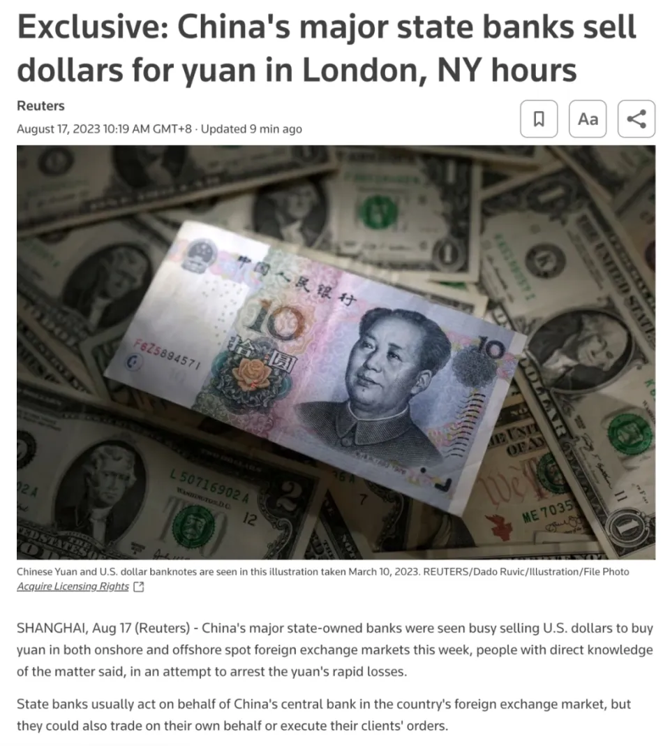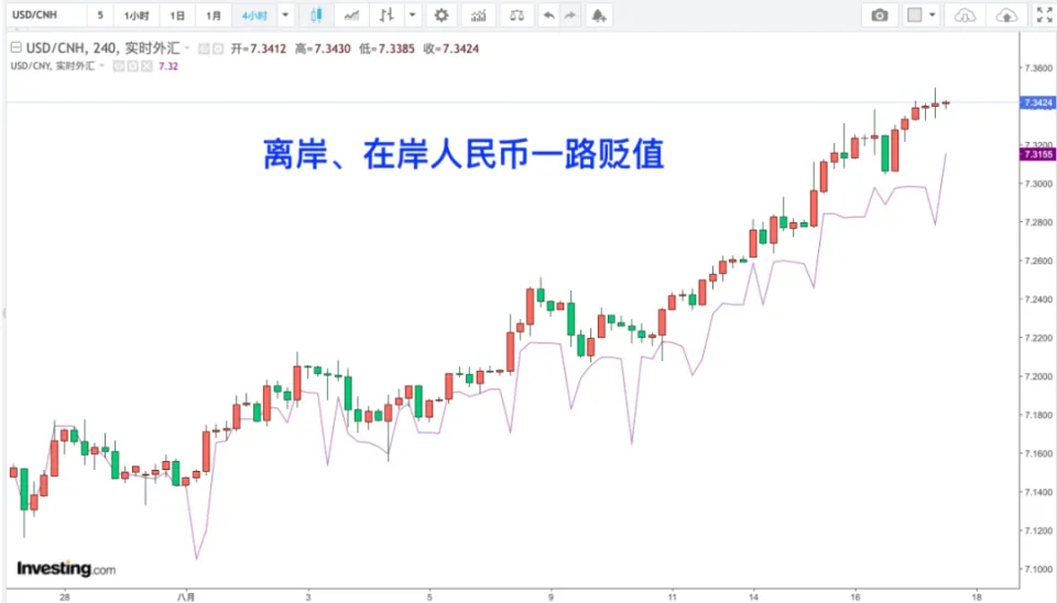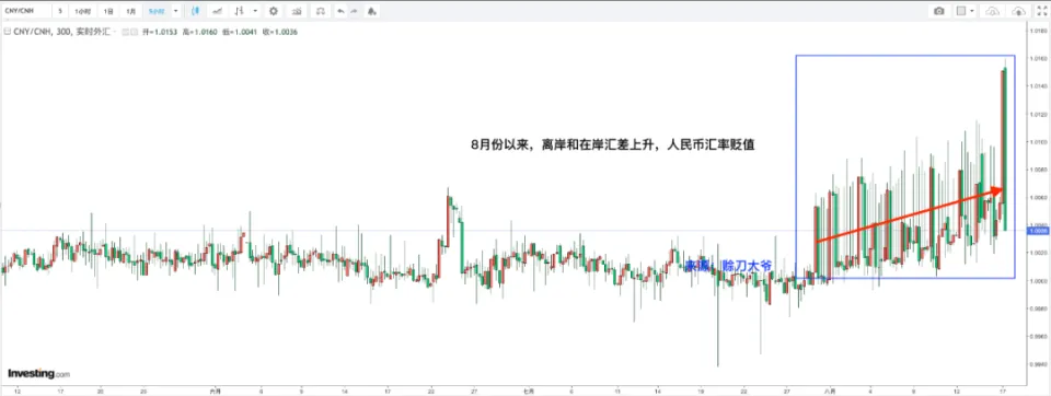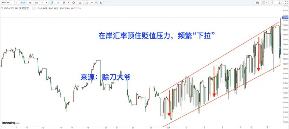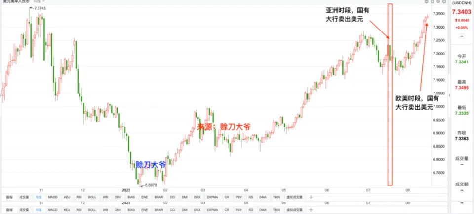 这波人民币贬值,太诡异了! 从7月尾开始,人民币汇率一起贬值,不停突破紧张关口,险些流通无阻。 离岸人民币,从7.12开始贬值,跌破前低7.2857,然后跌破7.30关口,本日直逼7.35关口。 在岸人民币汇率,从7.12开始贬值,跌破前低,然后跌破7.30关口,本日直逼7.32关口。 从市场的角度,这一轮汇率贬值,有何特性呢? 1、离岸汇率动员在岸汇率贬值。 一样寻常来说,汇率贬值,根本上都是离岸汇率先动,当离岸和在岸汇率出现肯定汇差时,在岸汇率“跟随”离岸汇率颠簸。 这一次也不例外。 从7月尾以来,先是离岸和在岸汇差,明显高于1,以及此前的匀称程度。 然后,离岸和在岸的汇差就不停上升,颠簸幅度也团体上升一个台阶。 2、这一次,离岸汇率贬值,在岸汇率“不甘心”跟随贬值。 一样寻常环境下,无论升值还是贬值,离岸和在岸汇率走势划一。 贬值的时间,在岸跟着离岸贬值,升值的时间,离岸跟着在岸升值。 但是这一次贬值,在岸汇率显着“不甘心”跟着离岸汇率贬值,生意业务时间段频仍地“下拉”汇率,试图逆转趋势。 这分析什么? 离岸汇率和在岸汇率,分歧比力大,离岸贬值压力大,而在岸顶住压力,支持汇率。 3、人民币汇率全线贬值 人民币不光单兑美元贬值,对欧元、英镑、加元、瑞郎等钱币也贬值,对一揽子钱币也贬值。 对西欧紧张国家钱币贬值幅度在1%-2%之间。 兑BIS和SDR两类钱币篮子的人民币汇率指数也分别贬值0.1%和0.3%。 这种人民币汇率全线贬值的环境,也比力稀有。 4、这一轮人民币贬值,流通无阻,羁系很少出头干预。 此前人民币汇率贬值到肯定位置,外汇局、央行等等都开始出头了发言了。 比如“增强预期引导”、“保持人民币汇率在公道平衡程度上根本稳固”等等。 至少,他们会对近期人民币汇率贬值表态,表现关注或关心等等。 但是,这一次人民币汇率贬值,没有出现这种表态。 固然,外汇局和央行也表态了。 外汇局8月15日深夜表现,7月份市场主体“逢低购汇”有所增多,属于正常的理性生意业务,紧张渠道跨境资金活动总体妥当。 央行主管媒体《金融时报》8月16日表现,短期因素引发汇率颠簸,汇率预期和跨境资金活动保持相对稳固。 他们表达同一个意思是:当下汇率没题目,跨境资金活动也没题目。 这种表态,就不是指向稳汇率。 5、一上来就直接放“大招”! 认识羁系人都知道,干预或引导人民币汇率,央行有太多政策工具箱了。 比如,喊话,也就是预期管理、开启逆周期因子、离岸市场发行央票接纳人民币、调解外汇存款预备金率、远期售汇风险预备金率、跨境融资杠杆率、境内企业境外放款宏观审慎调治系数等等。 这些都是性价比极高的工具,动一动嘴、动一动规则,就能很快取消贬值预期。 对于中国来说,可以大概不花美元直接稳住人民币汇率,永世是最优选择。 但是这些工具都没用,人民币中心价还在不绝调贬。 这一次,上来就直接放大招,直接真金白银往市场内里砸,让国有大行在离岸和在岸市场同时卖出美元。 在跟6月尾启动逆周期因子差别。 看一下本日在岸人民币的K线图,有一根长长的下引线。 也就是说,人民币汇率要么出现“乌龙指”了,要么有资金干预了。 对于人民币汇率来说,这是范例的盘中生意业务非常环境。 根本上可以确定,国有大行了局干预汇率了。 本日外媒的报道,也证明了这一点。 报道称,在欧洲时段和纽约时段,国有大行直接了局卖美元了。 目的就是,稳汇率,同时缩小离岸和在岸的汇差。 但是,从结果来看,这次干预有结果,但是结果不显着,离岸和在岸人民币汇率跌到了7.35附近。 缘故原由就是,相对于人民币空头,国有大行卖出的美元还不敷多,他们临时还不是人民币空头的对手,而且也没有影响市场预期。 再看一下7月20日,央行和外汇局团结公布,调治跨境融资宏观审慎参数。 同时,国有大行在亚洲时段卖出美元。 这种团结举措,极大地打击了人民币空头,人民币汇坦白接暴力升值600多点。 关键是,人民币汇率为何贬值? 我们在之前的文章《人民币跌破7.31,这是要搞事变啊!》中已经表明过了,紧张有四点: 1、经济数据进一步恶化,经济根本面影响汇率。 2、央行告急降息,利率平价理论影响汇率。 3、地产爆雷,信托暴雷等等,市场感情低迷。 4、医疗反腐,天雷滚滚,移民人数激增,资源国际活动影响汇率。 当下我们面临一个什么样的环境呢?也非常诡异。 先看一下现在的市场被页粳美联储加息周期靠近尾声。 美联储加息是快竣事了,但是美债利率飙升并未克制。 8月17日,在美联储重申利率将维持在高位后,10年期美债收益率飙升,盘中突破4.281%,创下2008年6月以来最高收盘收益率。 30年期国债收益率收于22年10月以来的最高程度,2年期国债收益率飙升至5.00%。 美债是全天下资产的基准利率,美债收益率上升,各类风险资产都间不容发。 这意味着什么?美元打击仍未竣事。 而且,如今的国际市场也越来越诡异。看几个变乱: 第一、评级公司反复举措,自动挑事。 先是8月1日,惠誉破天荒下调美国主权评级,从AAA下调至AA+,然后8月16日放出风声,要下调美国70家银行评级。 3月份美国银行业风暴刚已往没多久,投资者还心有余悸。 如今评级机构又要搞事变,而且在美债收益率上升的环境下,这将极大的打击市场信心。 第二、索罗斯等国际巨鳄,开始做空市场。 索罗斯第二季度排名前两位的持仓分别是,纳斯达克指数
