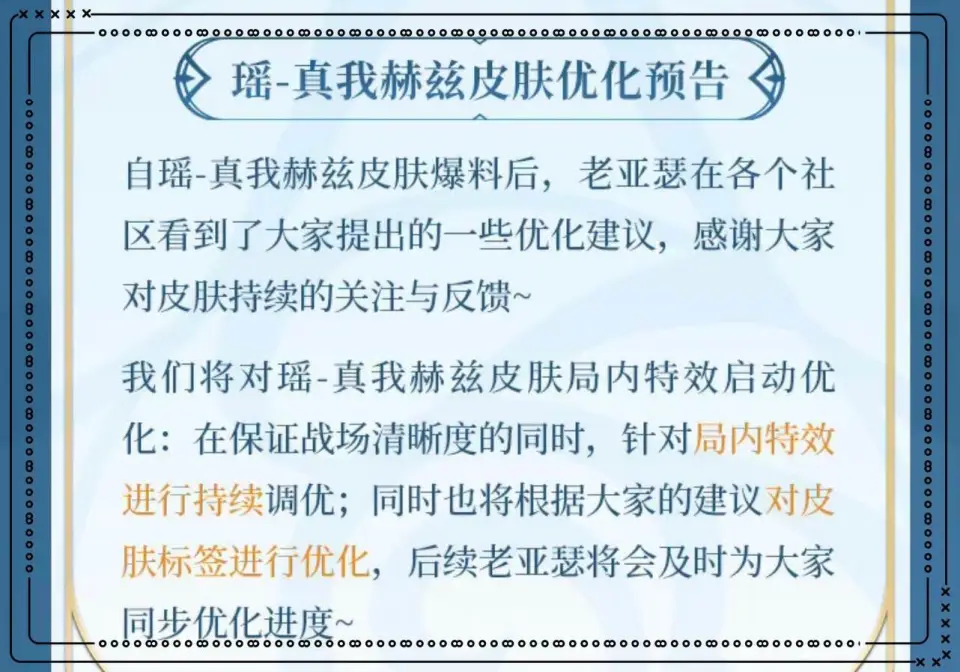 各人好,这里是阿呆的峡谷日志,将会给你带来王者光彩最新的爆料内容。 王者光彩在8月份上线了大量新皮肤,此中也返场了很多限定皮肤,本年的七夕节也安排了一套情侣皮肤,不外七夕版本还在更新并没有竣事。 近来就有小道消息透露,公孙离的蜜橘之夏将会返场,但是在官方的更新公告中并没有提到这款皮肤,不外也有大概是官方还没有发急公布。 固然没有直接公布,但是官方也已经有所暗示,由于官方优化了这款皮肤,一样寻常情况下怎么大概突然优化,既然优化那肯定也会返场。 除此之外尚有瑶瑶公主的皮肤也将会全面优化,也就是瑶瑶公主的无双限定皮肤。 与此同时,尚有一款新皮肤的爆料消息,听说孙悟空将会迎来一款连通皮肤。 好了,废话不多说,一起来相识一下王者光彩的热门爆料消息。 一、瑶妹皮肤优化 起首来相识一下关于瑶瑶公主新皮肤的优化消息,现在已经得到官方确认。 官方已经提前发布了瑶瑶公主新皮肤的优化预告,不外现在并没有给出优化之后的效果图,只是发布了一个预告。 可以确认,瑶瑶公主新皮肤,也就是无双限定皮肤的局内技能殊效将会优化,不外大概并不会太大的改变。 然后就是这款皮肤的专属标签也会举行优化,这款皮肤的标签被很多玩家以为是芈月新皮肤的标签,由于看上去和瑶瑶公主的新皮肤确实完全不搭。 除此之外,就是无双限定皮肤将会到场一个专属特性,也就是双海报,后续除了武则天的无双限定皮肤之外,其他两款也会一连到场双海报效果。 二、蜜橘之夏优化 然后再来相识一下公孙离的蜜橘之夏,效果皮肤突然被优化了,既然是优化,我信任官方肯定是有目的的。 这款皮肤的优化比力简朴,着实就是优化了建模的面部心情,然后整个脸部的细节优化了一下,美化了一下脸部,看上去比之前确实要风雅了一些。 但突然之间怎么会优化这款皮肤呢?着实之前就有小道消息透露,这款皮肤会有一款联动星元皮肤,听说小乔的缤纷独角兽和公孙离的蜜橘之夏都有同款系列的联动星元皮肤! 在官方近来的公告中,小乔的缤纷独角兽刚好迎来了扣头活动,同时这款皮肤还到场了皮肤碎片市肆,而公孙离的蜜橘之夏迎来了优化,以是很显着,这款皮肤大概率会返场,不外是抽奖返场。 三、孙悟空新皮肤 然后再来相识一下有关孙悟空的新皮肤,不外这款皮肤大概没有这么快上线。 根据现在的小道消息来看,听说孙悟空将会有一款宝莲灯的正版手游授权的联动皮肤,听说这款皮肤将会在本年的11月份上线。 孙悟空这个好汉的热度不绝以来都非常高,每次有投票活动的时间,孙悟空都能第1名,以是孙悟空的皮肤质量、皮肤风致也和其他好汉完全差别,孙悟空自己就有两款情人节限定皮肤,足以证明这个好汉的非凡。 以是听到孙悟空有新皮肤的消息,我并没有感到惊奇,由于我以为这很正常,究竟孙悟空也是官方的摇钱树之一。 总结一下重点 根据现在的爆料消息来看,孙悟空大概会有一款新皮肤,不外他的新皮肤应该没那么快上线。 别的,无双限定皮肤也将会迎来优化,双海报会成为专属特性,除此之外,瑶瑶公主的无双限定皮肤也会优化技能殊效。 与此同时,尚有公孙离的蜜橘之夏大概率也会返场,详细情况可以看后续更新,各人可以等候一下。 以上就是本期文章的全部内容,不知道各人尚有没有其他看法呢?欢迎在批评区留言,一起交换。 |