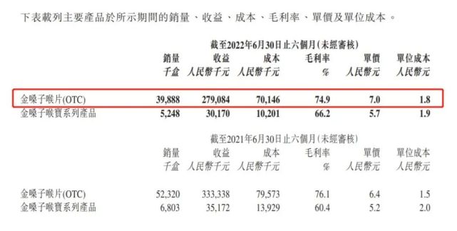 卖润喉片的金嗓子上半年业绩公布。 24日晚间,金嗓子在港披露半年报表现,期内实现收益约3.12亿元(单元下同),同比降落16.4%;公司权益持有人应占溢利5670万元,同比降落30.4%;每股红利8分。 金嗓子表现,净利的淘汰紧张是由于团体产物销量的淘汰。 金嗓子紧张产物包罗金嗓子喉片(OTC)、金嗓子喉宝系列产物(食品)及其他产物。 财报披露,金嗓子喉片为非处方药,已出口至美国、加拿大、俄罗斯、欧盟、澳洲、东南亚、中东、墨西哥、蒙古及非洲,出口已涵盖环球五大洲,期内贩卖额为2.79亿元,同比降落16.3%,约占收益总额的89.4%;金嗓子喉宝系列产物被答应为食品,期内已出口至17个国家和地区,贩卖额为0.30亿元,同比降落14.2%,约占收益总额的9.7%。 在财报中可以看到,本年上半年,金嗓子喉片销量为3988.8万盒,上年同期为5232.0万盒;毛利率为74.9%,上年同期为76.1%。 金嗓子喉宝系列产物销量为524.8万盒,毛利率为66.2%,上年同期分别为680.3万盒、60.4%。 泉源:金嗓子半年报 二级市场上,停止8月24日收盘,金嗓子跌4.86%,报价1.76港元,总市值13.01亿港元。 (文中观点仅供参考,不构成投资发起,投资有风险,入市需审慎。) 中新经纬版权全部,未经书面授权,任何单元及个人不得转载、摘编或以别的方式利用。 封面、导语图泉源金嗓子官方网站 END 作者 | 董文博 编辑 |董湘依 审校 | 贾亦夫 |