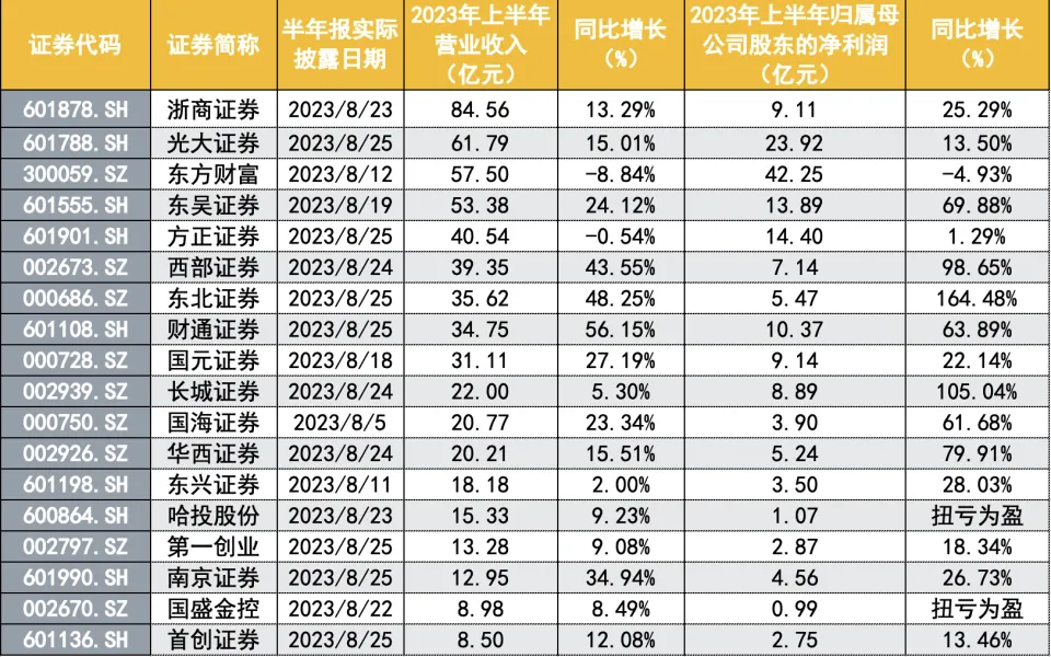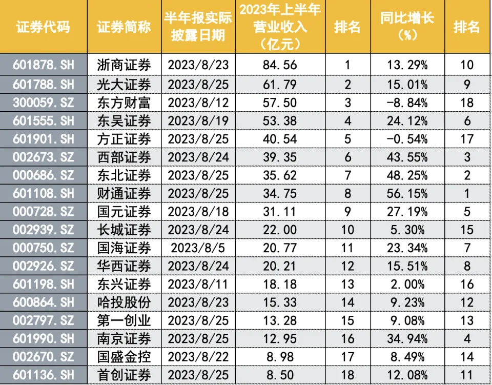 财联社8月25日讯(记者 刘超凤)现在共有18家上市券商发布了半年报。此中,浙商证券上半年实现营收84.56亿元,光大证券、东方财产、东吴证券营收业均凌驾50亿元。 这18家券商营收增长最快的是财通证券,同比增幅56.15%,东北证券、西部证券、南京证券的营收增幅均凌驾30%。券商上半年营收大幅增长的重要驱动力来自于自业务务收入,其次是投行业务。比如财通证券的自营收入同比增长3323.09%,西部证券自营收入同增105.20%。 固然浙商证券的营收排名第一,但净利润却不敷10亿。上半年净利润最高的是东方财产(42.25亿元),其次是光大证券。 净利润增长方面,哈投股份和国盛金控的净利润均实现扭亏为盈。东北证券和长城证券的净利润增幅均实现翻一番,西部证券净利润增幅靠近翻一番,重要系基数不高。东吴证券净利润同增70%,重要系投行、自业务务收入提升。 东方财产的营收和净利润均同比下滑,重要是受证券业务、基金代销拖累业绩,证券业务同比下滑8.79%;基金代销业务同比下滑8.77%。公募费率改革的当下,或将造成东方财产的尾佣收入下滑,进而低沉基金代销业务收入。 4家券商营收凌驾50亿元 停止8月24日,共有18家上市券商或券商上市主体发布了半年报。根据半年报数据,披露上半年营收凌驾五十亿的券商共有四家,分别是浙商证券(84.56亿元)、光大证券(61.79亿元)、东方财产(57.5亿元)、东吴证券(53.38亿元)。 上半年实现业务收入在20亿-40亿的券商共有8家,分别是方正证券(40.54亿元)、西部证券(39.35亿元)、东北证券(35.62亿元)、财通证券(34.75亿元)、国元证券(31.11亿元)、长城证券(22亿元)、国海证券(20.77亿元)、华西证券(20.21亿元)。 与此同时,尚有2家券商上半年收入不敷十亿,分别是国盛金控(8.98亿元)、首创证券(8.5亿元)。 营收增长方面,通证券本年营收增长最为明显,增幅高达56.15%。别的,东北证券、西部证券、南京证券的营收增幅均凌驾30%,分别为48.25%、43.55%、34.94%。 总的来看,券商上半年营收大幅增长的重要驱动力来自于自业务务收入,其次是投行业务。财通证券的业绩增幅云云高,重要是受益于自业务务增长和投行业务增长。财通证券本年上半年的证券自业务务实现收入6.06亿元,同比增长3323.09%;投资银行业务实现收入3.10亿元,同比增长72.21%。相比之下,财产管理业务实现收入7.87亿元,同比降落1.49%。 与财通证券相似的尚有西部证券。西部证券上半年自营投资板块实现业务收入11.03亿元,收入规模较其他传统板块最大,同比增长105.20%。投行业务上半年实现收入2.04亿元,同比增长90.56%。 南京证券的业绩增长重要受益于自营和资管业务的增长。南京证券上半年证券投资业务实现营收6.76亿元,同比增长49.78%;资管及投资管理业务实现收入5861万元,同比增长187.2%。南京证券的投行业务收入同比下滑。 别的,营收增幅在20%-30%的券商共有3家,分别是国元证券(27.19%)、东吴证券(24.12%)、国海证券(23.34%);收入增幅在10%-20%的券商包罗华西证券(15.51%)、光大证券(15.01%)、浙商证券(13.29%)、首创证券(12.08%)。 这18家券商中,方正证券和东方财产的收入增长为负,方正证券上半年收入同比下滑0.54%,东方财产同比下滑8.84%。 东方财产业绩下滑,重要是由于证券业务、基金代销业务收入下滑,但自业务务上半年表现较好。详细来看,证券业务实现收入36.10亿元,同比下滑8.79%;基金代销业务实现收入20.09亿元,同比下滑8.77%;自业务务收入11.47亿元,同比增长82.77%。此中自业务务业绩增长重要由于金融投资规模及投资收益率双双增长驱动。 东方财产净利润排名第一 净利润方面,浙商证券固然上半年营收凌驾80亿,但是净利润却不敷10亿,本年上半年归母净利润仅有9.11亿元,在这18家券商中排名第7位。 东方财产固然营收在这18家券商中仅排名第3位,但本年上半年实现归母净利润42.25亿元,临时排名第一。其次是光大证券,本年上半年归母净利润23.92亿元,排名第二。东方财产以轻资产业务为主,在划一收入程度下净利润规模相对领先。 这18家券商中,除了东方财产和光大证券净利润排名居前外,方正证券、东吴证券、财通证券的净利润均凌驾10亿元,本年上半年归母净利润分别为14.4亿元、13.89亿元、10.37亿元。 停止现在,本年上半年归母净利润在5亿-10亿的券商共有6家,分别是国元证券(9.14亿元)、浙商证券(9.1亿元)、长城证券(8.9亿元)、西部证券(7.14亿元)、东北证券(5.47亿元)、华西证券(5.24亿元)。 与此同时,本年上半年净利润不敷3亿的券商分别是第一创业证券、首创证券、哈投股份、国盛证券。第一创业上半年实现归母净利润为2.87亿元,首创证券、哈投股份和国盛金控分别为2.75亿元、1.07亿元、0.99亿元。 净利润增长方面,本年上半年,哈投股份和国盛金控的净利润均实现扭亏为盈。 详细来看,东北证券和长城证券的净利润增幅均实现翻一番。东北证券上半年净利润同比增长164.48%,长城证券净利润同比增长105.04%。西部证券净利润同比增长98.65%,也靠近翻一番。这三家券商净利润增幅较大,重要是净利润基数较低,均不凌驾十亿元。 上半年净利润增长在50%-80%的券商分别包罗:华西证券(79.91%)、东吴证券(69.88%)、财通证券(63.89%)、国海证券(61.68%)。 东吴证券的营收规模、净利润规模和增速都比力高。东吴证券表现,业绩大幅增长重要得益于公司投行、投资生意业务等业务贡献度提升。 东吴证券