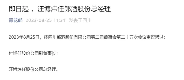 老牌酒企,奇怪血液。 作者 | 高清宇 编辑丨高岩 泉源 | 野马财经 茅台镇至二郎镇49公里的赤水河左岸,是中国顶级酱酒的焦点酿造区,这里也是郎酒庄园的地点地。公开信息表现,2023年郎酒品牌代价1436.15亿元,连续15年名列白酒行业前三名。 想要维持或寻求更高的市园职位,一个好的领导班子至关紧张。领导班子是一个企业落实上级决定摆设、推动各项工作的“指挥部”“战斗部”。 领导班子的建立关系到企业的发展,至关紧张。 8月25日,郎酒股份在微信公众号发布消息称,经公司第二届董事会第二十五次集会会议审议通过,付饶任公司副董事长,汪博炜任公司总司理。 图源:微信公众号 公开资料表现,新任总司理汪博炜毕业于清华,还曾在国外留学。在这之前,总司理一职从2016年起,由“宿将”付饶继续,付饶是2000年进入公司的“老人”,现在汪博炜从付饶手上接过总司理一职后,付饶任公司副董事长。在郎酒走出国门,钻营国际布局的当下,这位80后“掌舵者”将为企业带来什么样的厘革? 人变乱动方向:年轻化、知识化和专业化 新交班的汪博炜,不但在企业管理上有着专业的知识配景和履历,对白酒行业也有着丰富的一线履历和对市场的深刻明确。 综合郎酒官方信息表现,汪博炜2010年毕业于清华大学精密仪器与呆板学系测控技能与仪器专业,2014年又在美国马里兰大学史密斯商学院得到工商管理硕士学位。 图源:罐头图库 到场郎酒之前,汪博炜曾先后在云南北方奥雷德公司、美国金宝汤、美国第一资源金融等公司任职。高出多个行业的履历中,他到场和负责的工作涉及生产管理、产物研发、品牌管理、企业运营分析等专业范畴,以此沉淀了丰富履历。 到场郎酒之后,汪博炜从生产一线做起,先后全面到场了审计、品牌宣传、人力资源、包装计划、IT、行政、酿酒科学研究,以及数字化升级等工作。 白酒行业通常被视为传统财产,但在各行各业迈入数字化期间的本日,这个古老的行业也正面临怎样与时俱进的寻衅。汪博炜于2019年出任郎酒品格研究院理事长,将产学研相团结,推进郎酒“大生产体系”全部品格相干科研工作,助力原粱生产到酿造储存等各环节提质提效。 在科技化配景下,郎酒开始以莳植大数据、物联网等技能,赋能智慧农场;庄园制曲发酵仓、酿酒车间传感器的应用;设置庄园智能安防体系“智慧大脑”;通过升级CRM渠道数字化体系,更好落地“一商一策”,扶好商、树大商…… 汪博炜曾表现:“改变天下的是头脑,但头脑每每必要以技能为载体”。 郎酒股份总司理汪博炜 除了汪博炜,郎酒比年来的人变乱动,也都具有这一特色:年轻化、知识化和专业化人才。 本年初,郎酒将青花郎奇迹部和红花郎奇迹部分拆并举行了一轮构造调解,6月,又再次完成了十余位高管的人变乱动,涉及股份公司、贩卖公司、庄园公司的市场、技能、体验服务等板块。 此前被任命为供应链总监的马兴坤,1988年出生,是清华大学光学工程博士;被任命为呆板主动化总监的王磊,1986年出生,是中国武器科学研究院光学工程硕士;被任命为品格研究院院长的沈毅,1980年出生,是中国最年轻国家级白酒评委之一、持有“中国酿酒大家”证。 重用年轻化、知识化和专业化人才的目标,则是为了更好的为产物服务。对企业发展而言,良好的领导班子是其一,优质的产物是根基。因此,“三化”人才也成为郎酒这些年实行“三品”战略的关键着力点。 从“三化”到“三品”,郎酒加码国际化郎酒所谓“三品”战略,是指极致品格、极致品牌、极致咀嚼。 2020年郎酒举行“郎酒品格奖”表扬大会,就开始布局“品格、品牌、咀嚼”三品战略。2021年4月,举行首届郎酒庄园三品节,设置品格、品牌、咀嚼三大奖项,鼓励郎酒内、外部为郎酒三品建立做出的贡献的团体与个人。 “从郎酒的发展进程来看,三品节为郎酒品牌做了大量增补与延伸,对消耗者加强品牌归属感起到了至关紧张的作用。”白酒营销分析师蔡学飞表现。 图说:郎酒庄园夜景 “三品”战略的实行下,2023年,郎酒进一步提出三大目标: 1、在白酒行业中具有紧张职位; 2、与赤水河右岸的茅台各具特色,共同做大高端酱酒;浓酱兼香型白酒成为兼香领导者; 3、郎酒庄园成为天下级酒庄,白酒爱好者的向往之地。 郎酒庄园位于赤水河黄金河谷内,于2008年筹建,2020年3月开放,拥有天下最大自然储酒溶洞群(天宝洞),以及十里香广场、千忆回香谷、问天台、金樽堡、旅馆、两河口生态酿酒区等景点。 图说:郎酒庄园仁和洞外景 制止2022年底,郎酒庄园已有40万人次来访。包罗国际葡萄酒构造(OIV)五大首创国之一摩尔多瓦共和国前总统彼得·鲁钦斯基,“假如不是亲眼所见,我不会知道,中国白酒也能做酒庄,而且可以做到规模云云之大、体验云云之好”。 郎酒也在多个国际评比中得到大奖,如1984年,郎酒被评为国家名酒,获国产业物质量金质奖章,荣获“中国名酒”称谓;2005年,在伦敦国际评酒会上,红花郎酒获白酒类唯一的“特殊金奖”,还得到了2023年德国“iF计划奖”金奖。 年轻化、知识化和专业化人才和极致品格、极致品牌、极致咀嚼的团结下,郎酒实现逆势增长。 2020年,郎酒股份实现业务收入93.37亿元,同比增长11.85%;实现净利润25.21亿元,同比增长3.17%;2021年实现贩卖回款凌驾150亿元,贩卖酱香酒1.1万吨;2022年乐成突破200亿元大关。 别的,郎
