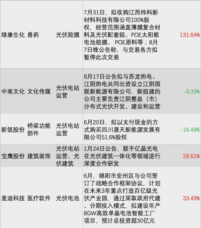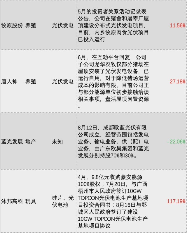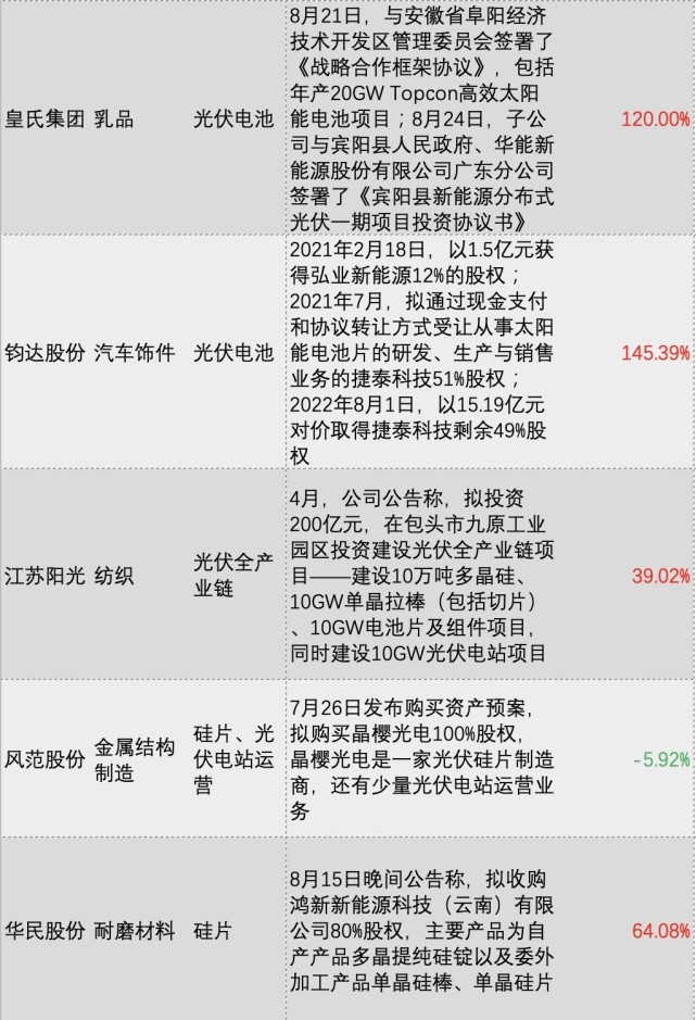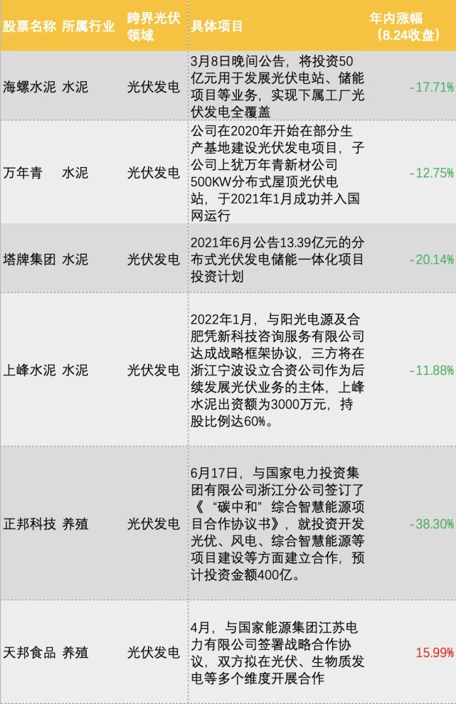 本文泉源:期间财经 作者:魏亚霖 “沾光”就涨?A股客岁锂电的高潮,正在光伏上重演。 期间财经留意到,本年以来,已经有数十家上市公司操持跨界光伏。此中既有转型乐成的“十倍股”,也有绿康生化(002868.SZ)如许公告发布不到半个月就制止的案例。 光伏财产链从上游硅料,到电池片、组件,再到卑鄙电站运营,涉及范畴广泛。不外,据期间财经梳理,现在公布转型光伏的公司,大多对准的是光伏电池片和分布式电站。 五花八门的公告,动辄几十亿上百亿的项目,它们转型光伏的逻辑是什么,含金量毕竟怎样?【文末附跨界光伏股票不完全整理一览】 图片泉源:pixabay 有地就能做光伏? 假如建立分布式光伏项目,就算是跨界,有地皮的公司都能轻松实现“光伏转型”,比如水泥、养殖、地产等行业。 期间财经留意到,布局光伏发电已经成为水泥行业的共识,但现在的发电量还不敷自家用。 本年3月8日晚间,行业龙头海螺水泥(600585.SH)发布公告称,本年将投资50亿元用于发展光伏电站、储能项目等业务,实现部属工厂光伏发电全覆盖;预计到2022年底,光伏发电装机容量可达1吉瓦,年发电本领10亿度。 8月24日,海螺水泥证券部工作职员对期间财经表现,公司光伏发电以自用为主,现在占公司能源总需求的比例还很小,但详细数字不方便透露。 同日,万年轻(000789.SZ)证券部工作职员也告诉期间财经,公司现在能源斲丧光伏发电的比例不大,后续大概会收购一些小型水电站、光伏电站等。 期间财经留意到,万年轻是水泥行业中较早布局光伏发电的企业:公司在2020年便已开始在部弟子产基地建立光伏发电项目,子公司上犹万年轻新材公司500KW分布式屋顶光伏电站,已于2021年1月乐成并入国网运行。 别的,塔牌团体(002233.SZ)于2021年6月抛出了13.39亿元的分布式光伏发电储能一体化项目投资筹划。 上峰水泥(000672.SZ)也在2022年1月,与阳光电源(300274.SZ)及合肥凭新科技咨询服务有限公司告竣战略框架协议,三方将在浙江宁波设立合资公司作为后续发展光伏业务的主体。上峰水泥出资额为3000万元,持股比例达60%。 8月24日,上峰水泥证券部工作职员告诉期间财经,“现在光伏发电以自用为主,后期有富余的话将向周边财产园售电,盼望形成第二增长曲线。” 既然水泥企业有厂房屋顶可用,那么养殖企业也可以给大棚装太阳能板。 天邦食品(002124.SZ)、牧原股份(002714.SZ)、唐人神(002567.SZ)等公司,都有在差别场所透露,会在部属屠宰场屋顶、养猪场屋顶、荒地等建立光伏发电。 但真正把“猪企发电”作为一个财产故事来报告的照旧正邦科技(002157.SZ)。6月17日,正邦科技与国家电力投资团体有限公司浙江分公司签订了《“碳中和”综合智慧能源项目相助协议书》,就投资开发光伏、风电、综合智慧能源等项目建立等方面创建相助,预计投资金额400亿。 6月22日晚,正邦科技在复兴函中进一步表明确相助模式:项现在期投入全部由国电投付出,正邦科技“不涉及资金流出”,反而通过将部属猪场的屋顶资源出租可以得到租金;至于后期,“双方将渐渐探索股权相助等其他模式,构建资源共享、上风互补、互利共赢的可一连相助搭档关系。” 老牌房企蓝光发展(600466.SH)的光伏跨界,大概也有着相似的逻辑。8月12日,成都欧蓝光伏有限公司(下称“欧蓝光伏”)创建,策划范围包罗发电业务、输电业务、供(配)电业务,由广东欧昊团体和蓝光发展分别持股70%和30%。 沾着光伏的“光”,8月15日至17日,蓝光发展劳绩三连板后发布提示称,对于欧蓝光伏“现在尚没有资金实缴注册资金,干系资源及技能职员尚未配备,尚无相助项目,后续存在着不确定性,预计不会对公司当期业绩造成较大影响”。 蓝光发展的相助搭档广东欧昊团体是金刚玻璃(300093.SZ)的控股股东,后者从客岁至今启动了多个HJT电池新增产能。 地产公司怎样切入光伏?8月25日,期间财经多次致电蓝光发展证券部,对方电话始终无人接听。 跨界股偏幸N型电池 随着PERC型单晶电池已经靠近其服从的天花板,行业正在渐渐转向N型电池,此中又分HJT电池与TOPCon电池两个差别方向。 前“中国乐高”玩具大厂沐邦高科(603398.SH)客岁搬到江西后,就想转型光伏。本年6月2日,沐邦高科与安义县人民政府就8GW TOPCon光伏电池生产项目事件签订了《投资战略相助框架协议》,但8月16日晚即公布制止。 制止上述协议的当晚,沐邦高科又与鄂城区人民政府签订了建立10GW TOPCon光伏电池生产基地项目的《战略相助框架协议》,项目规模48亿元。 别的,7月20日,沐邦高科还与广西梧州市人民政府签订《10GW TOPCon光伏电池生产基地项目投资条约书》,总金额52亿元。 此前,沐邦高科证券部工作职员曾对期间财经表现,“近期披露的TOPCon光伏电池项目,公司正在准备人才队伍。” 8月20日,沐邦高科复兴买卖业务所问询函称,“公司除人才引进、项目准备外,尚未对光伏电池项目举行实质研发投入。”别的,该复兴函中还提示了风险,“公司如未按项目投资建立进度筹划的约定内容推行装备采购与安装任务,且延期超3个月,梧州市人民政府大概会停息投资,情节严峻的清除条约。” 屡见不鲜,水牛奶龙头皇氏团体(002329.SZ)也看中了TOPCon赛道。 8月21日,皇氏团体与安徽省阜阳经济技能开发区管理委员会签订了《战略相助框架协议》,包罗了项目总投资100亿元的年产20GW TOPCon高效太阳能电池项目。此前8月16日,皇