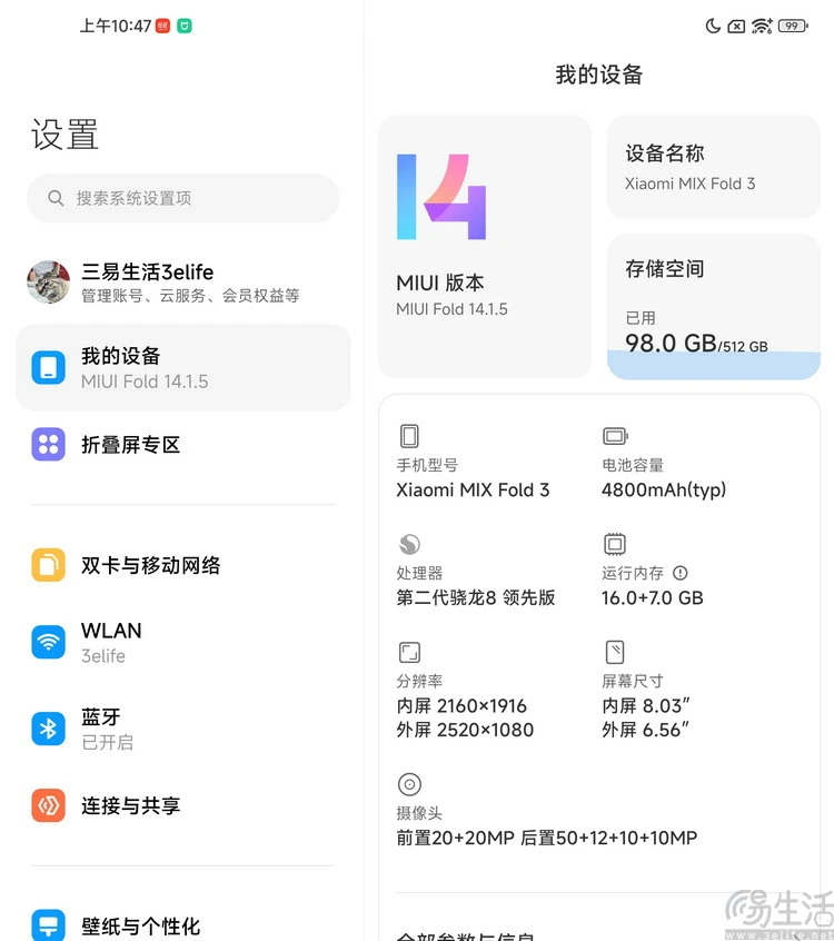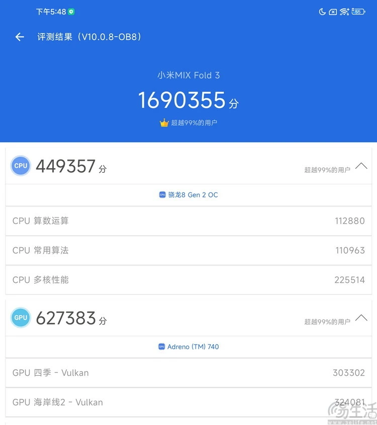 【【【媒介:“大折叠”的门路之争,或已迎来闭幕】】】 假云云前有看过过三易生存的干系内容,你大概还记得,我们对“折叠屏”干系技能以及产物关注得相称早。早在2018年年底,也就是业内最早的第一批量产折叠屏手机登场前,我们就曾在干系文章中表达了对于折叠屏手机的渴望以及担心。 在我们看来,折叠屏只管从质料学意义上来说有很大的创新,但站在斲丧者的角度,它只不外是“全面屏”理念的延伸。即在有限的机身材积内、塞进尽大概大的表现面积,从而进步观看的视觉打击力以及利用服从。 正由于是基于如许的理念,比年来我们也会对市面上的各类折叠屏机型提出品评。特殊是对于前段时间盛行、“大折叠”为了寻求浮滑化,不吝断送性能、影像、表现效果的种种做法,我们更是以为大概“走错了路”。 幸亏当时间来到2023年下半年,这件事也迎来了一些转机。好比在不久前刚刚发布的小米MIX Fold3,就大概是当前少少数从产物理念和客观硬件设置上,都尽大概去寻求“满配”的旗舰折叠屏机型。 【【【外貌:龙鳞纤维很特殊,细节计划致敬初代】】】 此次我们三易生存拿到的是小米MIX Fold3的16GB+512GB“龙鳞纤维”版本,看过此前发布会的朋侪大概知道,这是MIX Fold3最特殊、同时也最有代表性的版本。 它特殊在那里呢?简单来说,所谓“龙鳞纤维”,是小米方面率先接纳的一种将陶瓷纤维+芳纶纤维(也就是俗称的凯芙拉、防弹布)复合编织、叠加而成,一种高弹性、高强度的新质料。 从视觉及触感来说,“龙鳞纤维”乍看之下固然很像是芳纶纤维大概碳纤维布的纹理,但摸起来则显着要更“硬”一点。 从现实的工程意义来说,“龙鳞纤维”的最大作用,在于它可以提供比其他厂商“微晶陶瓷玻璃”还要高36倍的抗打击强度,同时还可以让机壳重量比常见的玻璃或塑料材质更轻、更薄。 举一个很现实的例子,MIX Fold3的龙鳞纤维板与它的素皮版本相比,机身重量从259g低沉到了255g,同时厚度也从10.96mm将至10.86mm。如许的差值完全出自后盖材质的区别,而这便是“龙鳞纤维”高强度、低重量的直接体现了。 除此之外,MIX Fold3的“龙鳞纤维”版在外貌上尚有一个特殊细节的计划,那就是它的中轴外壳上一条细细的金线涂装。熟悉小米折叠屏手机的朋侪大概已经看出来了,这很显着是致敬了初代MIX Fold陶瓷版的特殊计划,也算是MIX Fold3在定位上作为初代MIX Fold(大而全)、而非MIX Fold2(浮滑化)后继产物的一个间接证明了。 【【【设置:徕卡变焦四摄,尚有两块旗舰屏幕】】】 大概有的朋侪会说,255g的重量放到现在的大折叠机型中,好像也算不上特殊轻。 简直云云,但正如我们在本文开头就讲到的那样,MIX Fold3本就不是一款为了极致浮滑,而去断送大量设置的机型。相反,它选择了起首将设置“堆满、堆好”,然后再靠工艺、质料上的尖端计划去尽大概减轻重量和厚度。 好比说它的后摄模组,就接纳了徕卡认证镜头的真·四摄设置。此中包罗一枚5000万像素的IMX800大底主摄、一枚1000万像素的75mm(3.3倍)人像长焦、一枚1000万像素的115mm(5倍)潜望式长焦,以及一枚1200万像素的15mm焦距超广角,再加上一颗独立的色温传感器和一颗独立的Flicker(闪耀)传感器,来作为照相时环境光的辅助丈量机制。 这也就意味着,MIX Fold3成为了当前在售的同类“大折叠”中,仅有的具备完备四摄接力变焦计划的机型。它的变焦设置以致已经高出了绝大多数的高端直板影像旗舰,即便不思量到折叠屏机型用上大底、潜望式长焦的难度,如许的设置也依然黑白常少见的。 其次在屏幕设置上,MIX Fold3这次配备的6.56英寸、2520*1080分辨率外屏和8.03英寸、2160*1916分辨率内屏,均支持最高120Hz革新率,并均拥有当前折叠屏手机里最高的2600nit峰值亮度,还同样兼容杜比视界HDR尺度。 固然,MIX Fold3的表里屏也都适配了来自小米电视的“AI大家画质引擎”。 也就是说,无论是从面板自己的硬素质,照旧从对于HDR片源的兼容性,以致是从现实回放视频时的额外画质增强算法上,MIX Fold3大概是当下折叠屏手机里表现效果最为极致的产物。 而且各人大概已经注意到了,差异于此前的小米MIX Fold2,MIX Fold3这次重新支持了机身的折叠悬停结构。这是由于它利用了自研的全新“龙骨转轴”,与此前的水滴转轴相比,“龙骨转轴”在屏幕中央的两侧地区拥有更广的可动支架延伸范围,以是可以大概更好吸取碰撞时的打击力,使得其更加耐摔。 而且从终极的效果来看,“龙骨转轴”确实将屏幕中央的折痕深度,以及弯折地区两侧的屏幕平整度都控制得相称良好。 末了,在机身的上下两侧,则可以看到MIX Fold3也提供了一组独立的、支持杜比全景声的双扬声器开孔,同时就连红外遥控的功能也得到了保存。对于它睁开后仅有5.26mm的机身厚度来说,云云堆料着实也在业内非常稀有了。 【【【性能:搭载第二代骁龙8领先版,同类产物中性能称王】】】 说到“堆料”,天然不能不提小米MIX Fold3的性能设置。 正如各人所见,它此次搭载的是现在已经发布的智能手机SoC里,规格直接拉到顶的第二代骁龙8领先版移动平台。其基于4nm制程打造、有着最高3.36GHz的CPU主频,而且照旧当前少少数可以大概支持硬件光线追踪的移动SoC方案之一。 安兔兔评测V10 闪存测速效果 与之搭配的则是12GB+256GB起步,最高16GB+1TB的存储组合。而且值得一提的是,在MIX Fold3全部