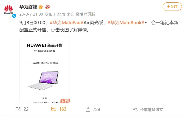 没有一丝丝防备,华为突然深夜奇袭,再发两款新品! 昨晚21:00点,华为终端官方微博突然官宣:将于9月8日破晓00:00,正式开售华为MatePad Air柔光版、华为MateBook E 2023二合一条记本新设置版。 好家伙,没有丁点儿预报。华为这是爱上了突然打击,给各人惊喜的感觉吗? 电脑 实在这两款电脑新品,充其量只能说版本更新,半个新品。 华为MatePad Air,一直主打“浮滑”,重量508g,厚度6.4mm,11.5英寸的2.8K全面屏,屏幕革新率为144Hz。 这款平板,设置上中规中矩,代价上略微小贵了点,12+256G的柔光版要卖3499元,比平凡版还要贵上200元。 黑马以为它更得当门生一样平常利用,大概刚进职场不久的打工人,由于它更适配轻办公,不适适用在深度办公上。 华为MateBook E 2023条记本电脑这次增长了一款设置,“i5+16G+1T”是本日推出的新设置版本,售价6799元。 重要变革不大,只是说这个版本比此前卖7899元的“i7+16G+1T”版本,优惠了靠近1千元,想来为了给各人更多选择,方便多出货。 华为Mate 60 Pro+ 也就是黑马写个稿子的功夫,华为Mate 60 Pro+和华为Mate X5,在今早10点左右,闪现官网,冲上热搜,比黑马预料的时间,还提早了2个小时。 黑马本马OS:写不赢,根本写不赢…… 华为Mate 60 Pro+将于今晚的18:08开通下订金的通道,正式开卖! 家人们,又到了拼手速的时间了! 外貌方面,Mate 60 Pro+变革不大,后盖还是的双色拼接,材质为素皮拼接金属。镜头模组还是的采取星环计划,越看越顺眼了。 只不外,额外增长了宣白和砚黑的“熊猫配色”。 芯片方面,暂未得知,不外据网络爆料,大概是麒麟9100。这大概是得留在发布会上发表的牵挂。对了,同样不知道的是它的售价,现在订金是1000元。 作为超大杯,肯定有不少升级后的亮点。 起首,是华为引以为傲的卫星通讯,Mate 60 Pro+采取天通卫星通话,北斗卫星消息,给手机的卫星通讯上了双重保障。 其次,Mate 60 Pro+在影像方面,除了和Mate 60的这颗4800万像素超微距长焦摄像头是同款,其他两颗摄像头都有所升级。 这两颗分别是4800万像素超聚光摄像头(F1.4-F4.0光圈,OIS光学防抖)和4000万像素超聚光摄像头,但实际照相变革,还得等黑马对比过后才气知道。 对了,Mate 60 Pro+采取的等深四曲屏,看起来倒是挺圆润,貌似不割手了。 华为Mate X5 值得一提的是,华为的折叠屏Mate X5也同步发售了。 只不外,没过多久,它开启预订的时间从10:08改成了18:08,看起来是两款手机想会合火力,一起帮华为冲一把了。 跳过X4,直接发X5,看来华为有了不为人知的新操持。黑马推测,大概,这一款手机也能蹲守一波5G,由于之前的X3就是4G的手机。 固然,在这款手机的芯片曝光之前,齐备都说禁绝。不外可以预料,X5如果还接着用4G芯片,大概销量会比力惨淡。 它同样升级了双卫星通讯,以及玄武钢化玻璃,并搭载了灵犀通讯。但是相比于上一代X3,团体外貌以及影像设置上,实在差别不大,只有看末了定价了。 不外,这款手机的用户定位,也不是主打性价比群体。 末端 不得不说,华为迩来的动作,相当出色。固然OPPO也挺惨的,又被背刺了。 要不是小搭档在群里提了一嘴,谁还记得本日的OPPO N3 Flip也开售了?! OPPO这款折叠机是真“受伤”,发布遇上华为Mate 60 Pro开售,开售遇上华为Mate 60 Pro+开售。这运气,这缘分,被华为搞突然打击,OPPO心态先炸。 末了,黑马真的很想问一句:华为,咱新品发布会还开吗?另有啥“看家货”? 现在华为Mate 60系列的各种信息,根本上已经被各人扒了个底朝天。初代Mate 60 Pro更是履历了被水泡、被冰箱冻、被暴力拆解等,该测试的都测试了。 图片截自抖音用户@凌志手机连锁 超大杯Mate 60 Pro+、Mate X5、华为MatePad Air柔光版、华为MateBook E 2023条记本也已经提前开售。按华为以往通例的发布会来看,亮点曝光了一半。 难道……接下来……华为下周在对擂苹果,上演一年一度的传统节目——“科技春晚”的时间,还憋着什么超等无敌大招?准备给各人一点小小的震撼? 黑马先来刀一个预言家,华为如果真有本领,把光刻机搬上发布会(bushi)。 越来越等待下周了!咱们一起看看,华为和苹果,又会碰撞出什么样的火花? |