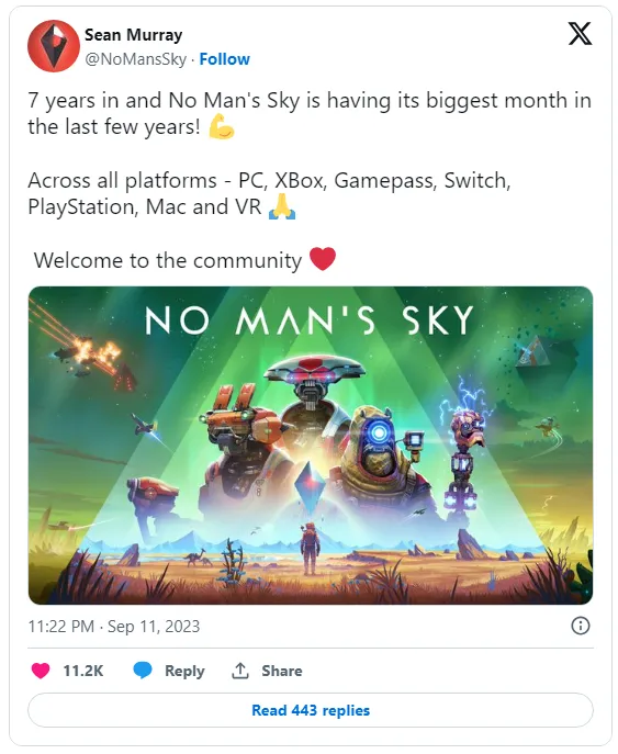 IT之家 9 月 12 日消息,Hello Games 工作室首创人肖恩默里(Sean Murray)克日在 X(推特)平台上发布推文,表现《无人深空》游戏本月人气飙升,革新了这款太空生存游戏比年来的单月规模记载。 推文中仅仅只是表明“Biggest month”,并未明确详细是指什么,大概率是指生动玩家数量。 《无人深空》是由 Hello Games 工作室开辟和发行的一款科幻题材游戏,须要玩家在一个按步调天生的无穷宇宙中探索和生存。 《无人深空》是一款闻名的“知耻而后勇”的游戏,游戏在 2016 年推出时由于“前期营销过大”但“实际质量不敷”而暴雷,不外游戏开辟商 Hello Games 并没有跑路,而是岑寂更新游戏至今,从而挽回了游戏玩家中的荣誉。 IT之家查询 Steam 页面,这款游戏累计收到 210563 条玩家批评,综合评价为“多半好评”。近期收到了 3861 条评价,综合评价为“特殊好评”。 默里并未表明《无人深空》本月人气飙升的缘故起因,不外此中一个紧张因素就是近期发行的《星空》游戏,一些玩家给出了诸如“你才是真正的星空”、“看了星空的直播之后,我决定给无人深空一个好评。”的正面评价。 |