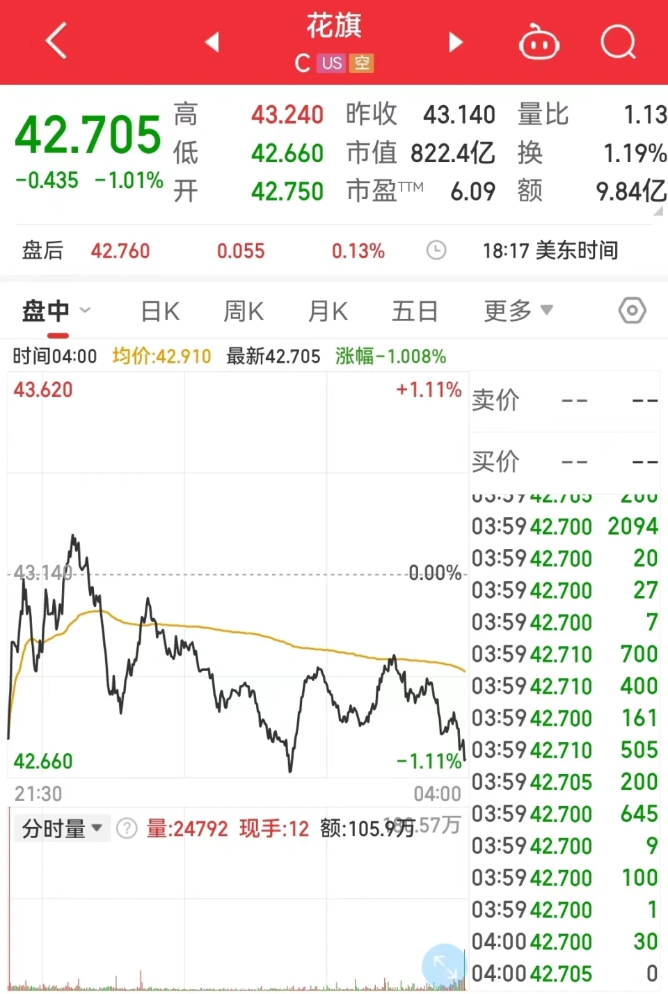 每经编辑:杜宇 当地时间9月15日,美股三大指数团体收跌,道指下跌288.87点,跌幅0.83%,纳指跌1.56%,标普500指数跌1.22%。 芯片股跌幅较深。费城半导体指数跌3%,失守3500点至附近最低。英特尔跌2%至一周半最低,周二曾创客岁7月来最高;AMD跌近5%至四个月最低。 费城半导体指数跌3%,失守3500点至附近最低 英伟达报439美元,跌幅3.69%,市值1.1万亿美元。其市值一夜蒸发415亿美元(约人民币3019亿元)。 热门中概股多数下跌 唯品会跌超1%热门中概股多数下跌,纳斯达克中国金龙指数跌0.65%,本周累涨0.80%。唯品会、阿里巴巴、百度跌超1%,哔哩哔哩、富途控股、京东、爱奇艺、微博、网易、理想汽车、小鹏汽车小幅下跌。满帮涨超1%、拼多多、蔚来、腾讯音乐小幅上涨。 美国花旗团体将举行近20年来最大规模业务重组 据央视财经,美国华尔街大型投行再陷“痛楚裁人”风波。据多家外媒报道,美国花旗团体13日公布,将对团体举行业务重组,以扭转恒久以来的股价低迷状态。据相识,这将是花旗团体近20年来规模最大的一次内部重组。 美国花旗团体首席实行官范洁恩当天在声明中说,花旗将不再由三名地区负责人来管理环球约160个国家和地区的业务。她筹划将团体业务分拆为五大模块,相干模块的负责人将直接向她陈诉。同时,范洁恩还表现未来有大概会裁人,但她没有透露裁各人数。 图片泉源:央视财经 不但是花旗团体,美国其他大型金融机构也在举行裁人或业务重组。本月初,有知情人士称,高盛正筹划在10月尾开启新一轮裁人,涉及多个部分。而本年以来,高盛已裁人数千人。随着美联储客岁启动加息进程,并购运动开始放缓,华尔街对本年投行业务利润的预期有大概会落空。金融信息服务提供商路孚特公司的数据表现,本年以来,环球投行业务收入已镌汰约莫16%至437亿美元。 制止当地时间9月15日收盘,花旗报42.705美元,跌幅1.01%。市值822.4亿美元。 逐日经济消息综合央视财经、市场公开资料 |