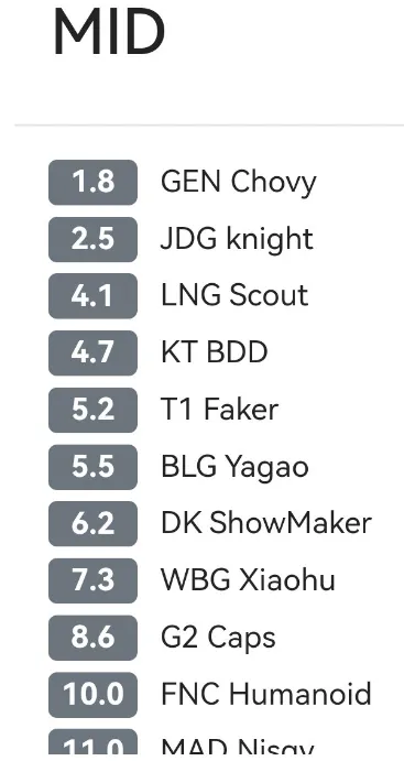 2023举世总决赛将于10月10日正式开赛!克日韩网票选了天下赛各个位置的选手排名,咱们就来先容一下上榜选手。 上单 前两名都是LPL的国产上单,369和Bin,第三名才是T1的上单Zeus,看来韩国人对他们的上单位置不自负。这也是正常的,毕竟在MSI上,369和Bin都打得很好,Bin更是向导BLG以6:1接连克服LCK前两名的队伍GEN和T1,韩国人不平不可。 汗青第一上单TheShy仅排第七,我以为这个排名低了。自从WBG夏日赛在Daeny接办后,TheShy就越打越好,找回了曾经对线王的感觉,而且中后期也不会送。信任本年天下赛TheShy能重回顶峰,给韩国人一点小小的史一上震撼。 打野 JDG的Kanavi力压GEN的Peanut排名第一。固然Peanut回到LCK后重回顶峰,但韩网观众照旧信任Kanavi更强,由于韩国国家队选人,打野位都选了Kanavi而不是Peanut,如果投票不把Kanavi投到第一,不就显得不专业了吗?前几日的亚运会热身赛,Kanavi也像小代一样向导韩国队赢了越南队和中国台北队。 WBG的打野Weiwei也上了榜,Weiwei固然只是赛季中途才到场WBG,但表现突出,一跃成为WBG战术真核,是WBG进入天下赛的最大功臣。韩国人知道把Weiwei投上去,阐明他们照旧看了LPL的比赛,不是云。 中单 中单位排名题目就大了,Knight竟然低于Chovy,只排名第二。从上半年的表现看,Knight是当之无愧的世一中,春季赛冠军(FMVP被黑),MSI冠军+FMVP,夏日赛冠军+FMVP。不外既然是韩国人投票,方向Chovy就不希奇了,Chovy不停是韩国人的宝。从客岁夏日赛到本年夏日赛,Chovy也完成了LCK联赛三连冠。 Scout仅掉队左右手排名第三没有题目,LPL夏决独C向导LNG和银河战舰JDG鏖战5局惜败。比力令人惊奇的是,天下冠军Showmaker仅排名第七。Showmaker在中国很有人气,但在韩国民气目中远不如Chovy。 下路 Ruler排第一没有题目,如果JDG如愿拿到天下赛冠军,Ruler以致可以竞争史一射的位置。Peyz排第二也差不多,Peyz就像JKL那样,是新一代电竞男主,家庭条件优渥,为了资助他成为职业选手,父母以致找了LOL家教。Peyz正式进入职业赛场后,也确实打着花样,第一年就资助GEN拿到春夏日赛冠军,并拿到春季赛的FMVP。 Gumayusi和Light排名较低,分别是LCK和LPL的末了一名,也比力客观。Gumayusi曾说AD就像泡面里的鸡蛋,可有可无。这个比喻形容他自己可以,Carry本领确实差一些。但是像Ruler和Elk如许的顶尖AD,均有着以一己之力改变整场比赛的本领,是既能解馋又能解饿的大鸡腿。 辅助 Keria排名第一,显然又是韩国观众根据自身喜好水平的不客观排名,就和中路的Chovy一样。李哥不在那段时间,T1险些就没赢过,Keria怎么能排第一呢?Missing和Delight分别是LPL和LCK俩赛区效果最好的辅助选手,排名高一点没题目。 KT的Lehends是本年LCK夏日赛的通例赛MVP。本来韩国人公认他是韩国第一辅助,但KT季后赛打得太差,被T1和GEN轮着干翻,Lehends排名便跌到第五,以致不如BLG的On。 通过这个排名,各人对本年天下赛有哪些强力的选手,想必有一个大概的印象了。你最等待哪位选手的表现呢?我最想看到Knight和Yagao这两位萍乡中单再次在决赛相遇,丞相会不会八擒孟获? |