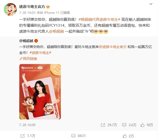 提及游戏界的明星代言,各人肯定不会感到生疏。但明星代言差异产物的情况下大概有一些细节被各人忽视,本盘货将以明星为单元来梳理某位明星代言游戏产物的团体情况,旨在理清差异代言之间的异同。 本次盘货对象是杨逾越,起首我们简朴先容一下杨逾越的配景故事。 2018年,杨逾越参加《创造101》并以第三名出道实现逆袭。但据传,在参加《创造101》之前,她曾在社会底层履历过风风雨雨,做过餐厅服务员,也做过缝纫厂女工。 在《创造101》节目中,她曾提过自己看到女团招募的传单,上面写着包吃包住两千元工资,于是她就参加了文澜文化。 从《创造101》走红后,杨逾越不但给粉丝发红包、还连续做公益运动,大概是从打工妹到新生代偶像这段历程的费力,让杨逾越保持着所谓的“人间清醒”,她在综艺运动、直播运动中所出现出的品行魅力不绝为粉丝所称道。 接下来看看杨逾越都代言了哪些游戏产物吧。 从表格中可以看到,杨逾越共代言6款产物,此中不乏腾讯网易等大厂产物,此中部分代言是在游戏上线前官宣的,包罗《圣境之塔》与《光明勇士》。 下面就看看她的每一次游戏代言都是怎样的情势吧。 1杨逾越×昆仑万维《圣境之塔》 起首来说说近来发生的《圣境之塔》代言运动。 2023年9月11日,《圣境之塔》发布机密代言人预报,并在9月14日正式官宣代言人为杨逾越。 本次代言运动表现情势较为丰富,杨逾越不但拍摄了代言海报,还出镜了代言宣传片并为其配音。 而在游戏内,《圣境之塔》官网也为本次代言运动开启了专属服务器【为爱逾越】、同步上线杨逾越专属语音包以及专属应援运动。 值得一提的是,《圣境之塔》的iOS端图标也被变动为杨逾越代言版本。 2杨逾越×途游游戏《途游斗田主》 别的,《途游斗田主》也在2023年7月26日预热机密代言人,于7月28日官宣杨逾越为游戏代言人。 在本次代言运动中,涉及代言干系的运动仅有代言海报以及游戏内专属语音包。 值得一提的是,微博@途游斗田主官方账号自创建以来,仅发布5条微博,这5条微博均与杨逾越有关。 3杨逾越×巨人网络《球球大作战》 2022年12月31日,《球球大作战》官宣杨逾越为品牌代言人,并公布后续一系列代言操持。 在本次代言的一系列运动中,能看出《球球大作战》对此非常器重。 起首,杨逾越此次代言《球球大作战》的一系列运动节点在2023年春节,而且赶上了《球球大作战》年度资料片的发布,本次代言运动在时间节点上较为特别。 其次,杨逾越此次代言拍摄了多张宣传海报、包罗一样寻常、敦煌风格以及新东风格,而且新东风格海报在后续也作为微信红包送出,别的也拍摄了游戏年度资料片的主题宣传片,该宣传片分为上下两部先后放出, 而在游戏内,《球球大作战》为本次代言推出了专属皮肤以及专属关键词,关键词可视为《球球大作战》里的称谓体系。 别的,本次代言运动还包罗了杨逾越快手直播首秀。 4杨逾越×腾讯游戏《平静精英》 2020年11月2日,《平静精英》正式官宣杨逾越成为品牌代言人。而在此前,杨逾越已有多次参加《平静精英》干系运动的纪录,最早可追溯到2019年杨逾越仍在火箭少女101团体之时。 根据游戏日报整理,杨逾越与《平静精英》的代言运动多为品牌宣传以及作为干系赛事高朋登场,在游戏内险些没有代言表现。 游戏日报还发现,自《平静精英》官宣杨逾越为代言人以来,克制2022年2月5日,杨逾越与《平静精英》不绝有干系代言动态,但在2022年2月5日以后,在《平静精英》官方微博中便没有杨逾越的身影。 5杨逾越×网易游戏《谎话西游》手游 2019年5月19日,《谎话西游》手游正式官宣杨逾越为“惊喜小龙女”代言人。 在本次代言中,《谎话西游》手游不但为其拍摄了宣传照、宣传片还开启了2个专属服务器【为爱逾越】以及【超古越今】。 而且,还在游戏表里开启了大型应援运动,玩家在游戏内攒应援积分,为现实天下中的代言人杨逾越解锁干系资源,包罗线上、户外广告资源、粉丝线下见面会等内容,而且到场游戏内应援运动的玩家也可得到游戏专属称谓“为爱逾越”。 6杨逾越×谨慎游戏《光明勇士》 2018年11月1日,现盛趣游戏、彼时的谨慎游戏官宣杨逾越成为其“超萌代言人”。 本次关于与《圣境之塔》相似,是游戏尚未正式上线的代言运动。 本次代言中,《光明勇士》围绕杨逾越开展了游戏集结运动,约请玩家到场游戏预约以解锁杨逾越专属代言心情包,而在该集结运动发布越日,便已有66万预约人数。 别的,杨逾越还献唱了《光明勇士》游戏主题曲《冲鸭冲鸭》,而且拍摄了主题曲MV。 本期明星游戏代言盘货就到这里,接待各位在品评区留言想看到的下一位明星 |