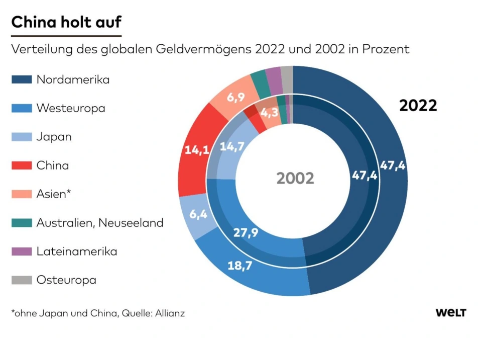 “中国正在奋起直追”,德国《天下报》27日报道,最新的“2023年安联环球产业陈诉”表现,已往20年,天下产业中来自西欧的比例越来越小。而中国的份额则大增百分之十。北美地域的份额保持稳固。 报道指出,天下产业版图在已往20年中发生了变革。印象尤为深刻的是中国令人难以置信的崛起。中国私人家庭的金融资产总额估计到达 32万亿欧元,占环球金融资产总额的14.1%,排名环球第二。这一数字远远高于2002年的不到 4%。 中国家庭的私人金融资产中,存款占31%,证券占43.7%,保险和养老金占20.7%。近来20年,中国人的金融资产匀称以两位数百分比增长,纵然在客岁环球金融产业增长糟糕的一年,也比其他大多数国家增长要快。 “中国的金融资产的崛起不但改变了亚洲内部的排名,也改变了环球排名:亚洲取代了欧洲。”陈诉指出,亚洲的份额从2002年的 23% 增长到2022年的 27.4%。此中,亚洲其他国家(不包罗中日)从4.3%增长到6.9%。 另一方面,环球产业版图也有两个大“输家”:日本和西欧。 在本世纪初,这两个地域的产业仍占天下产业的近 42.6%,但如今仅占四分之一。日本从2002年的14.7%降落到2022年6.9%。日本私人家庭持有为16万亿欧元。 与之对应的是西欧(27国)降落了从2002年27.9%降至2022年的 18.7%。其他两个新兴地域东欧和拉丁美洲的增长固然不那么引人注目,但也在稳步增长。澳大利亚和新西兰环境雷同。 与此形成光显对比的是,北美地域(美国和加拿大)将权重维持在47.4%。 美国的霸主职位还表如今人均金融资产上。最告急的是,美国人在已往几十年中通过股票市场积累的产业比很多国家更多。 美国股市已往几十年表现精良,通过复利效应显着促进了产业创造。这也再次凸显了美国在金融界发挥的特别作用。 在人均金融净资产上,美国以25.3万欧元排名第一。不外,美国的贫富差距巨大,特斯拉首创人马斯克等超等富翁掌控着大规模的产业。瑞士23.9万欧元紧随厥后,和丹麦16.4万欧元排名第三。新加坡以15.1万欧元排名第四。中国以1.6万欧元排名第34名。德国为 6.4万欧元,排名第19位。 对此,《天下报》反思,德国人均金融资产降落,告急缘故起因:缺乏财商教导。与国际标准相比,德国人的金融资产相称有限。金融净资产包罗保险、股票、债券、基金和银行存款。 负债也从该金融资产总额中扣除。 简直,此次研究的负责专家也指出,美国、中国等国家的金融资产不停提升告急靠两大途径:节省积极和增长代价。储备活动是产业更高增长的关键。同时要通过投资金融产物来快速得到资产。 金融教导发挥很大作用。研究者称:“值得注意的是,缺乏金融教导的观察参加者最常选择现金作为投资。” 金融知识越多,持有股票和投资基金的份额通常就越高,收益就会较高。比方,美国人的证券投资比例较高。 值得一提的是,此次排名告急聚焦金融资产,并不包罗房地产,假如加上房地产,中国的产业排名名次还将大幅提升。 |