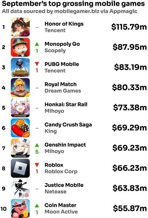文 / 手游那点事 泽塔(编译) 克日,移动应用市场研究机构Appmagic公布了9月环球手游收入榜。 在这份新榜单中,腾讯旗下脱销手游《王者光彩》继续雄踞榜首,《Monopoly Go》的排名升至第二,而《PUBG Mobile》(归并《平静精英》收入)则位列第三。上个月,这三款手游产物的环球营收分别为约莫1.158亿、8795万和8319万美元。 土耳其厂商Dream Games推出的三消手游《Royal Match》上个月收入约为8033万美元,在榜单中排名第四。履历一段时间的疯狂增长后,《Royal Match》的月收入似乎已经稳固在8000万美元左右。不外,自从7月份创造单月收入记载(8430万美元)以来,该作已经连续两个月营收小幅下滑,单月新增下载量也出现了降落。 在上个月的榜单中,《崩坏:星穹铁道》仍旧位居第5,但营收环比淘汰了约800万美元。米哈游另一部作品《原神》9月份收入环比增长1000万美元,排名升至第7。 Appmagic的数据表现,老牌三消手游《糖果传奇》位列9月环球手游收入榜第6,营收为6930万美元。现在,《糖果传奇》已经连续6个月营收下滑,6930万美元也是该作自2022年2月以来的单月营收最差数据。不外值得一提的是,开发商King在前不久的一次媒体采访中透露,《糖果传奇》的全平台累计收入已经突破200亿美元。 在9月环球手游收入榜中,《Roblox》、《逆水寒手游》和《金币大家》(Coin Masters)分别排名第8、第9和第10。 Appmagic还公布了9月份环球收入排名第11~20的手游榜单,详情如下: 13.《龙珠Z:爆裂鏖战》(万代南梦宫):4120万美元 14.《闪灼!优俊少女》(Cygames):3851万美元 15.《智龙迷城》(GungHo):3409万美元 16.《寒霜启示录》(Whiteout Survival,点点互动):3320万美元 20.《怪物弹珠》(Xflag):3164万美元 外媒Mobilegamer.biz还提到了几款尚未进入环球月收入榜前20名,但市场体现值得关注的其他手游产物,包罗《全明星街球派对》和《怪物猎人Now》。根据Appmagic的统计,自从8月尾正式发布(仅登岸中国市场)以来,网易研发的《全明星街球派对》上个月收入到达了1950万美元,稍稍高于由Niantic和卡普空相助开发、9月14日推出的《怪物猎人Now》(1910万美元)。 |