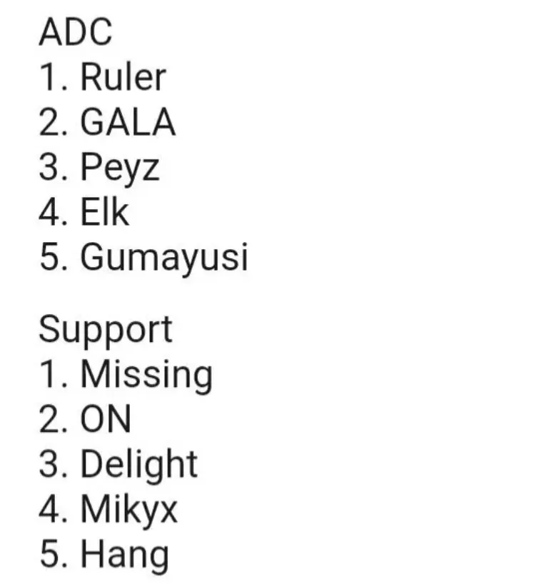 随着S13天下赛日期的靠近,迩来对于天下赛选手和战队的关注度也越来越高。这几天前FNC锻练Yamato就发布了自己对于这次S13天下赛各位置选手气力的评级,一起来看看末了的效果是什么吧! 详细排名如下,上单位置第一给到了JDG的369,第二名是BLG的bin,第三名是T1的Zeus,第四名是LNG的Zika,第五名是KT的kiin。比力遗憾的是Theshy没有排进前5,而不测的是Zika得到了认可。 打野位置第一是JDG的kanavi,第二名是GEN的Peanut,第三名是LNG的Tarzan,第四名是WBG的weiwei,第五名是BLG的xun。打野榜单也挺不测的,重要是没想到weiwei会入选,由于在本届S13天下赛的各种榜单中,weiwei都是常常被无视的那一个,他第一次打天下赛,之前也没有什么名气,许多人都不相识他,没想到Yamato把weiwei排进了前五,而且比xun的名次还高,看来是有认真看WBG角逐了。 中单这边榜单更加不测,第一名是LNG中单scout,第二名是JDG中单knight,第三名是GEN中单chovy,第四名是BLG中单牙膏,第五名是WBG中单xiaohu。 起首可以肯定yamato真的很认可LPL选手,这次前五名中单里,有4个都是LPL的中单,只不外不测的是knight仅排第二,Scout排第一,chovy排第三,这个排名应该是第一次见到,Yamato作为锻练应该是有他自己的明白。 下路排名是ADC位置Ruler第一,Gala第二,Peyz第三,ELK第四,Gumayusi第五。辅助位置missing第一,ON第二,Delight第三,Mikyx第四,hang第五。WBG的下路双人组没有任何人入选,而除了JDG下路之外,可以看得出来,Yamato好坏常认可LNG下路双人组的气力,而且他对于LNG的队员都很认可,看来他很看好这次LNG在天下赛上的表现。 那么,对于这份Yamato锻练的排名,你们有什么想说的吗?接待在品评区留言探究。 |