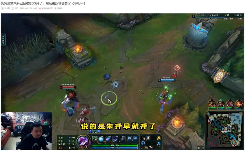 光速切割?爆料朱开锻练早被EDG开除,没官宣因不想影响亚运会