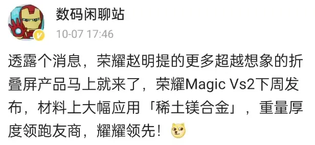 iPhone 15 Pro 破发 根据最新报价,全新国行 iPhone 15 Pro 蓝色 1TB 版本第三方售价为 11499 元,比官方售价低 1500 元。 值得注意的是,如今仅是 iPhone 15 Pro 蓝色 1TB 版“破发”程度比力严肃。其他容量的版本破发价在 300~500 元之间,而蓝色 128GB 版乃至另有 100 元左右的溢价。 iPhone 15、15 Plus 代价团体还是比力稳固,差异容量版本破发价在 100~900 元之间。而 iPhone 15 Pro Max 则是有肯定溢价,此中白色 1TB 版本溢价更是到达 1550 元左右。(泉源:锋潮科技) 魅族 21 系列手机新爆料 本日博主 @数码闲聊站 曝光了魅族 21 系列手机的新信息。 据该博主称,魅族 21 系列如今国行版存案有 M461Q / M481Q 两款机型,新机的超窄直屏将迎来换代升级,而且首批搭载骁龙 8 Gen 3 处置惩罚器。外貌则依然接纳简约向的操持,而且尺度版电池容量增长到 4800mAh±,相比魅族 20 的 4700mAh 小幅提拔。(泉源:IT之家) 光彩折叠屏新机 Magic Vs2 爆料 这次 @数码闲聊站 一句话爆料中的主角,是光彩 CEO 赵明号称“更多逾越想象的折叠屏产物”—— 光彩 Magic Vs2。该机预计在下周(10 月 9 日-10 月 15 日)发布。 详细来看,光彩 Magic Vs2 将大量接纳稀土镁合金,且在重量、厚度等方面“领跑友商”。@数码闲聊站 在品评区复兴称,光彩的计谋就是拿下折叠屏机型份额的第一名。别的,他还透露称即将到来的 Magic OS8 体系将会对折叠屏举行大幅改善。(泉源:IT之家) 努比亚 Z50S Pro 新增 24GB 内存版本 努比亚 Z50S Pro 新增了一款 24GB+1T 版本。该机现已上架京东商城并开启预约,将于 10 月 11 日 10 点正式发售,商品页面体现为 4699 元,比 16GB + 1TB 版本贵了 300 元。(泉源:IT之家) vivo X100 系列发布时间 消息称,vivo X100 系列将于 11 月发布,该机将首发联发科天玑 9300 旗舰芯片。同时,该消息也得到了数码博主 @肥威 简直认。 根据如今已知信息,vivo X100 系列首批仅 X100 和 X100 Pro 两款机型,首发联发科天玑 9300 移动处置惩罚平台;而 X100 Pro+ 定于春节后发布,搭载高通骁龙 8 Gen 3 平台。(泉源:IT之家) vivo X Fold 3 Pro 折叠屏手机现身 vivo X Fold 3 Pro 已经出如今了 GSMA IMEI 数据库中,型号体现为 V2337A。根据之前的爆料,vivo X100 Pro+ 将于春节后发布,而这款 vivo X Fold 3 Pro 的国行版本预计也是春节后发布。 固然,既然有 vivo X Fold 3 Pro,信赖也会有 vivo X Fold 3 尺度版,但如今我们还不清楚两者的详细信息。(泉源:IT之家) 下个月新机真不少 |